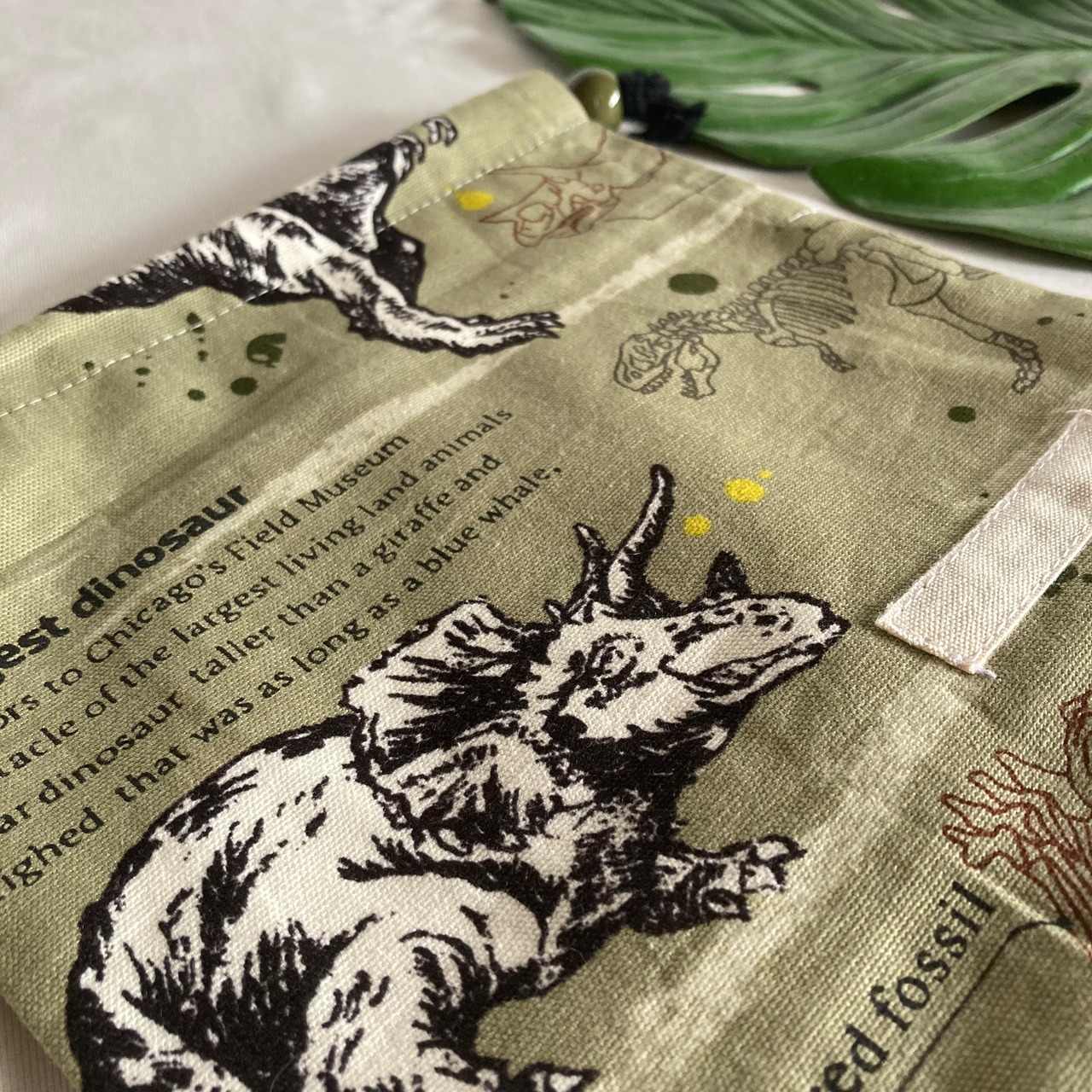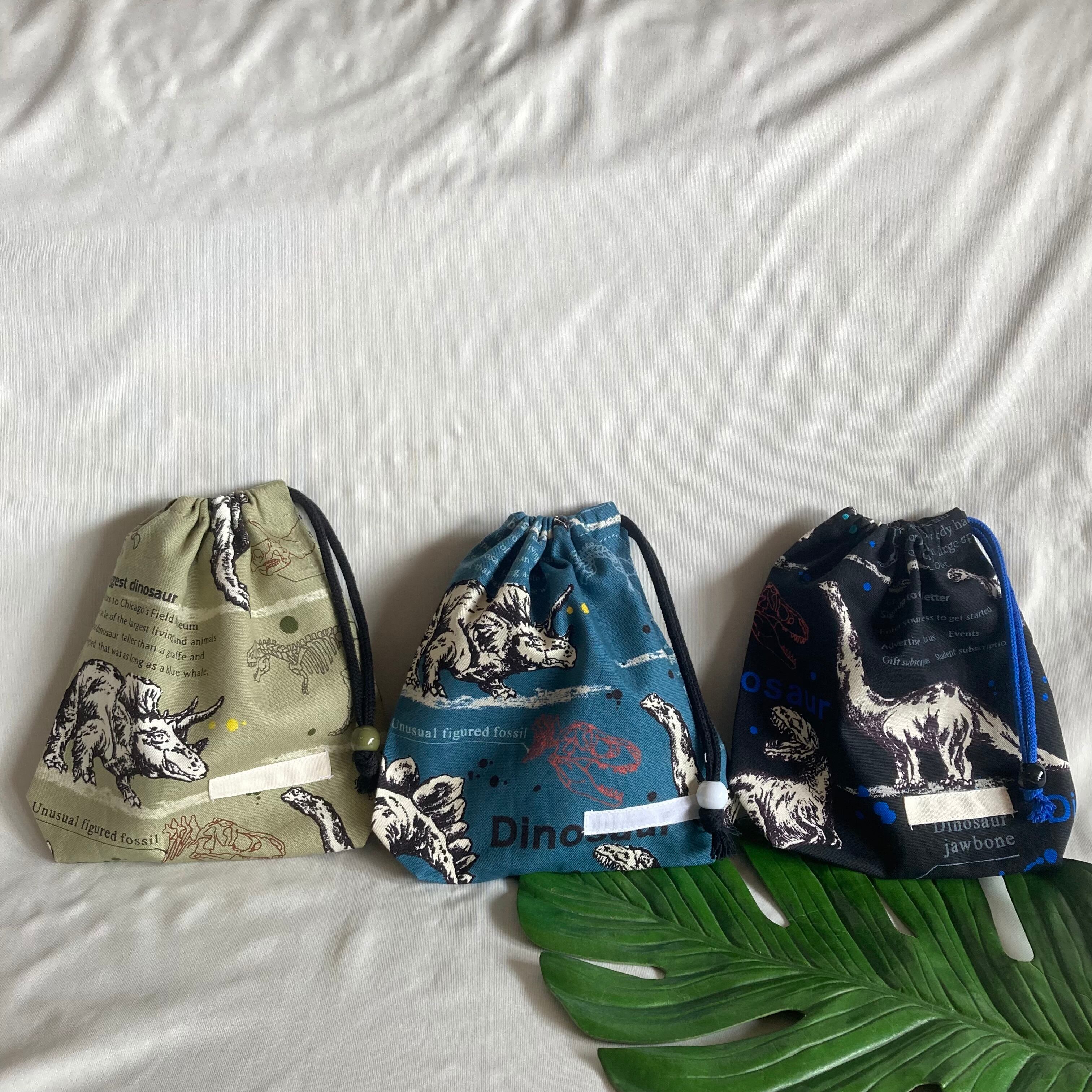 【オーダーOK】入園入学給食袋コップ入れ巾着44迫力の恐竜化石ティラノサウルストリケラトプスアロサウルス★縫い付けお名前小学校マチ★ラッピングプレゼント誕生日クリスマス男の子