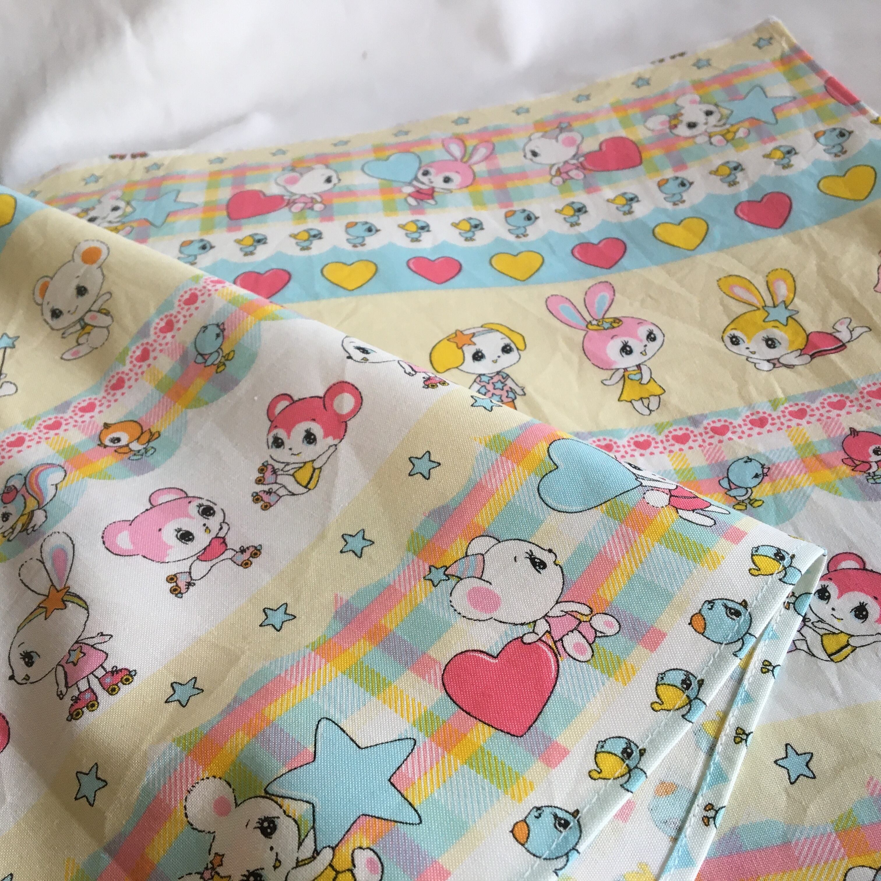 【オーダーOK】入園入学大きいランチョンマット60×40★ハニーチューンララボーダー★給食ナフキンお弁当小学校机40×60昭和レトロ動物アニマルうさぎくまアヒルひよこ