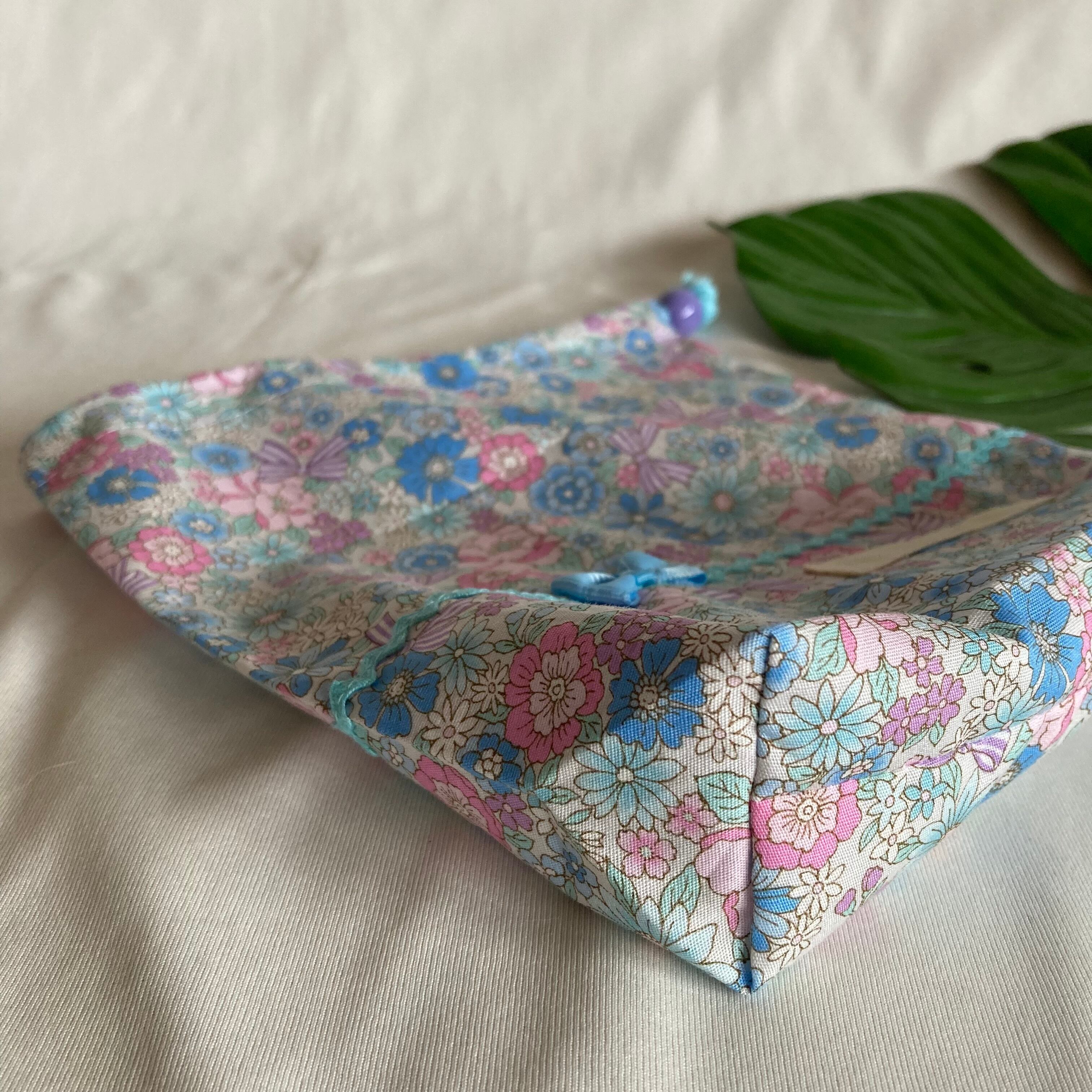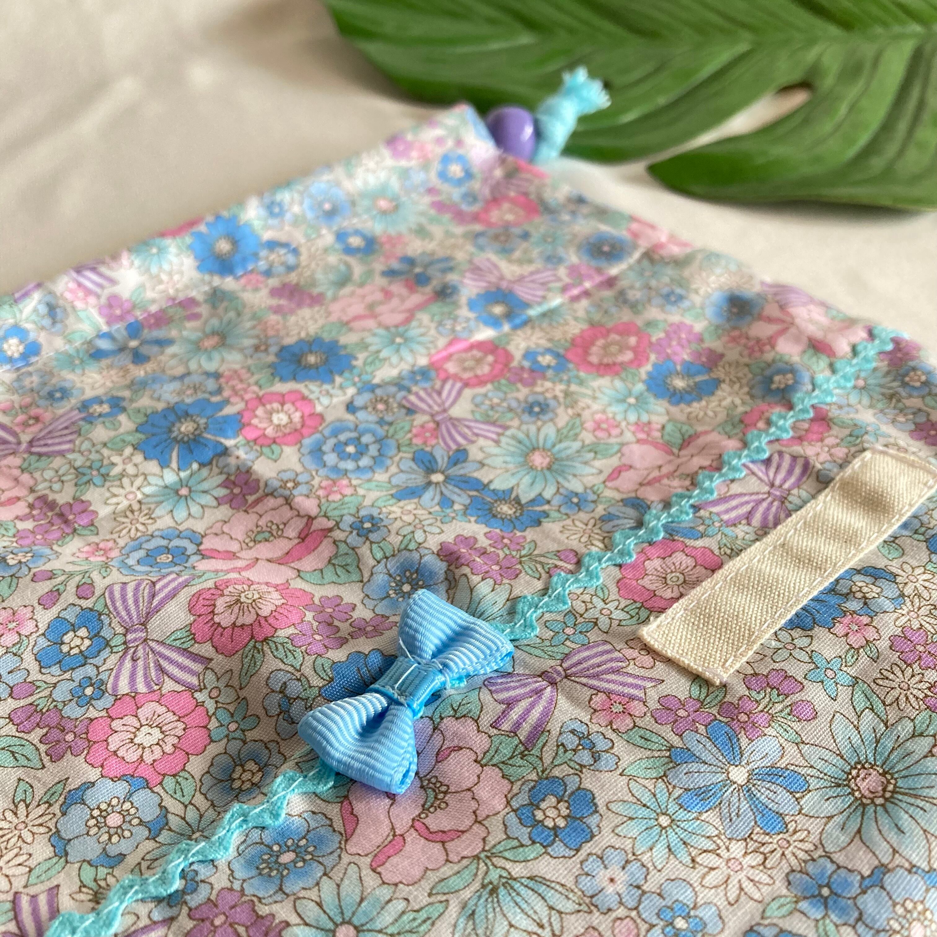 【オーダーOK】入園入学給食袋コップ入れ巾着★45お花とリボン★縫い付けお名前小学校マチ★ラッピングプレゼント誕生日クリスマスリボンレースくすみニュアンス