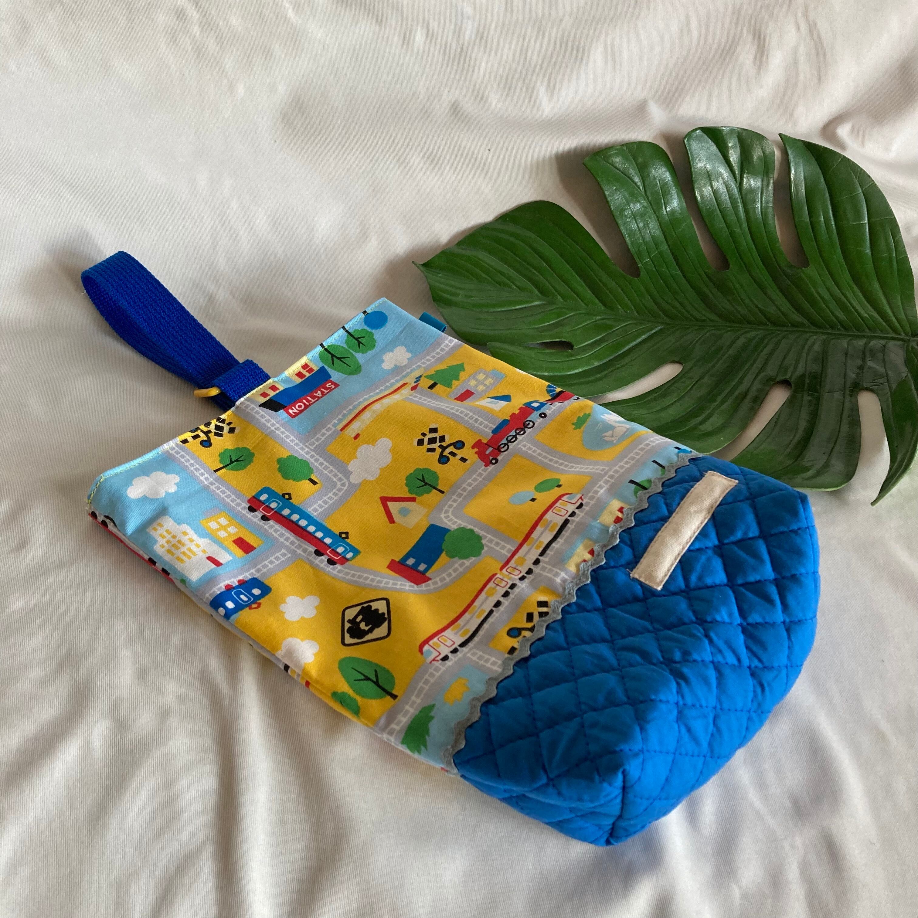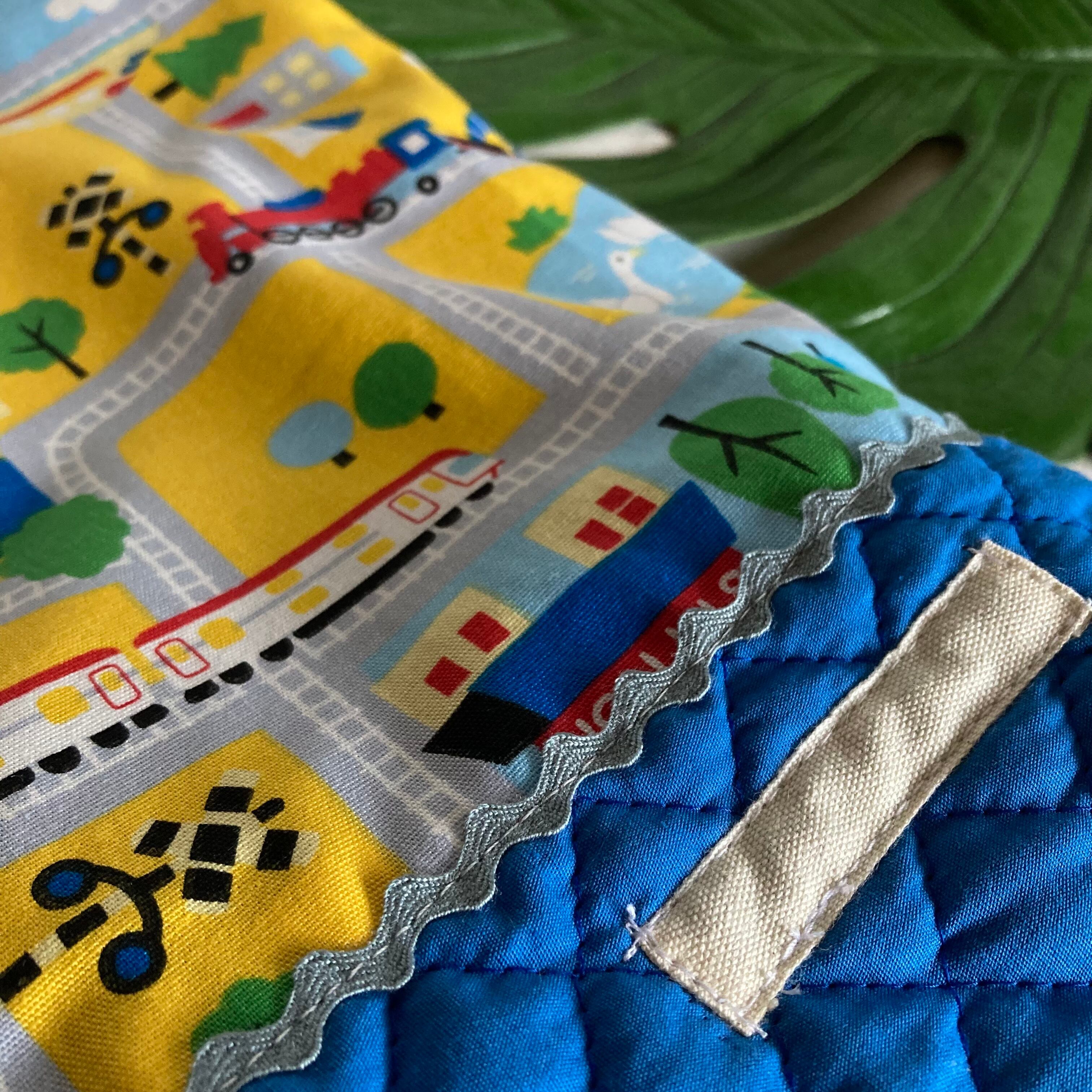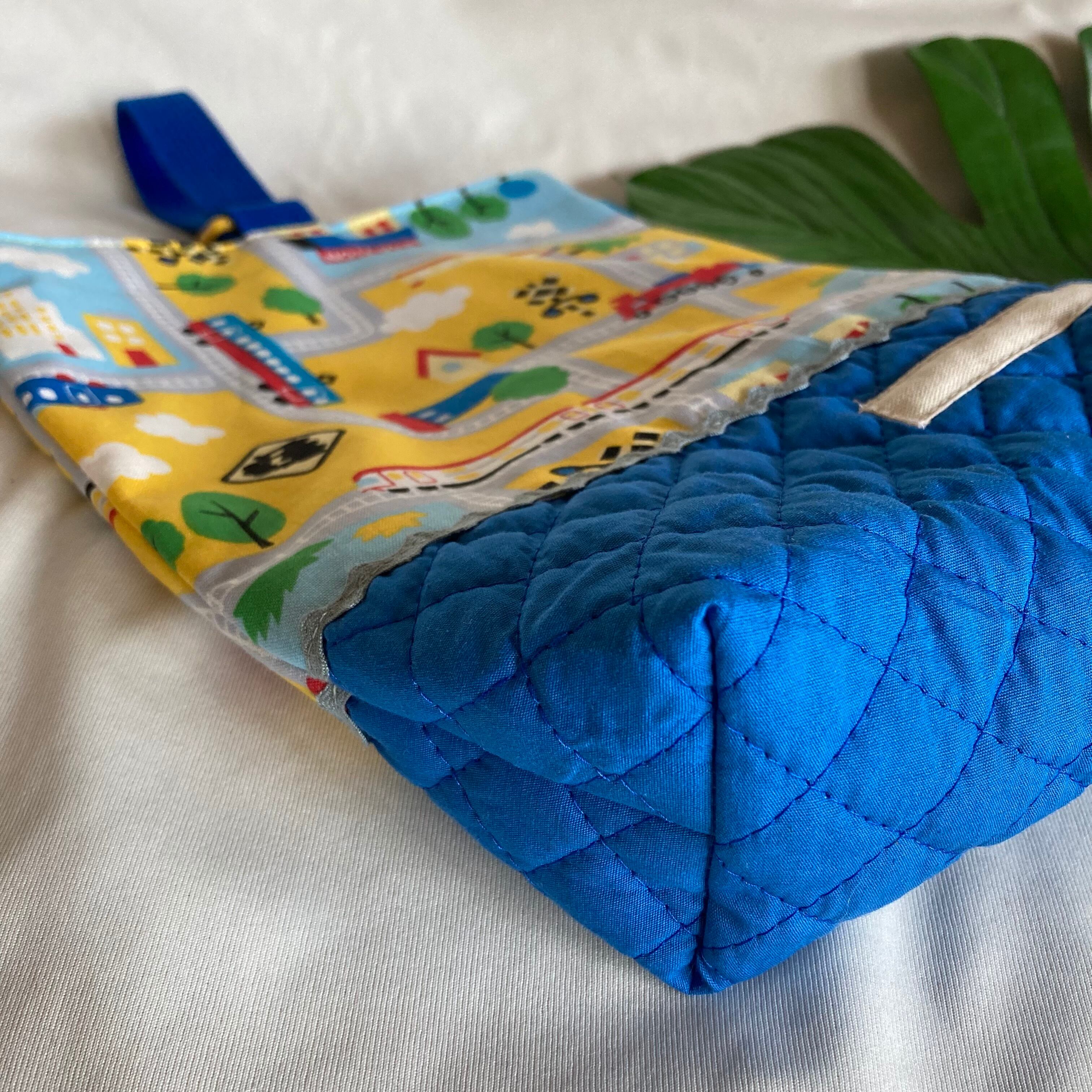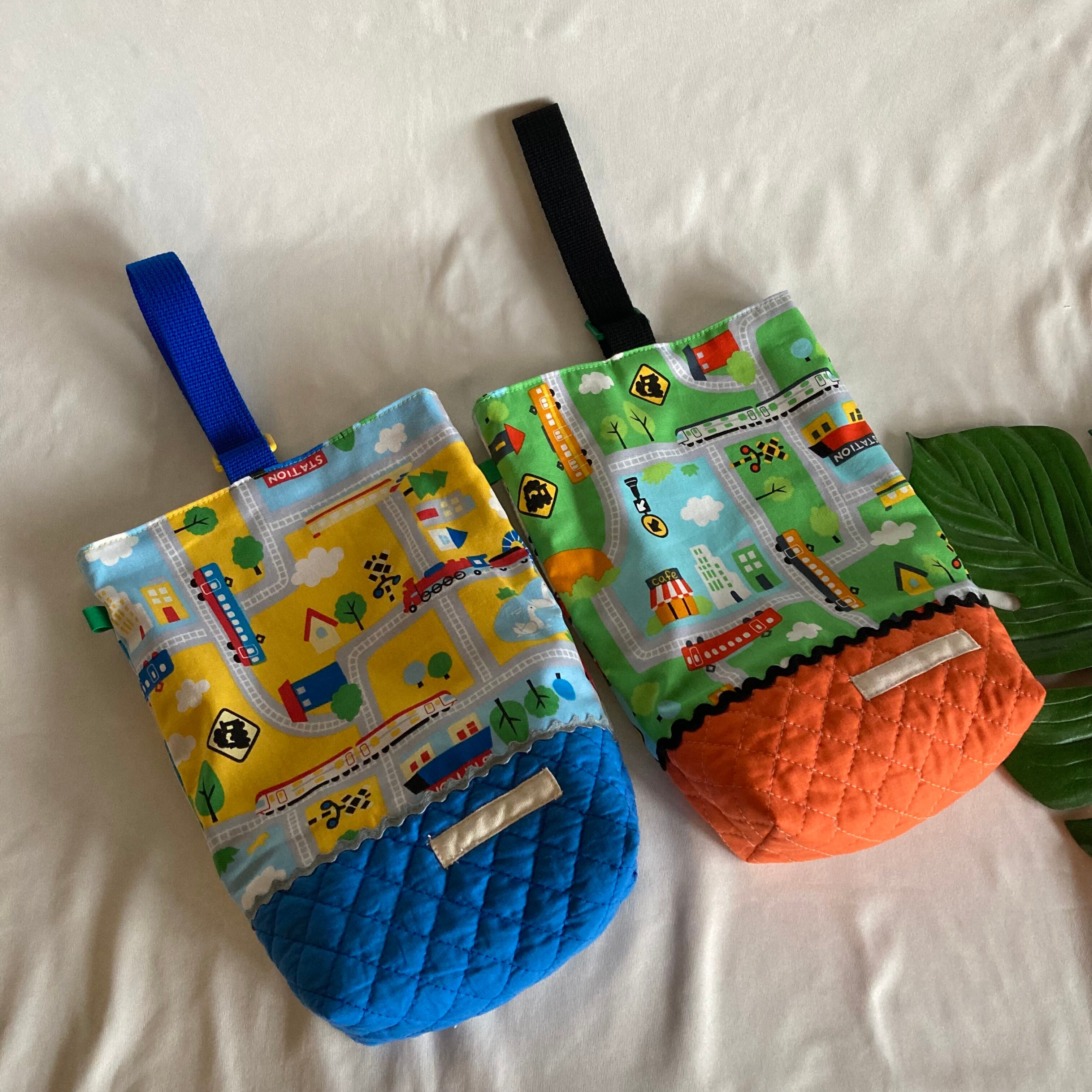 【オーダーOK】入園入学シューズケース上履き袋リバーシブル持ち手63電車汽車が走る町線路キルティングDカン星柄特急交通標識ドクターイエロー