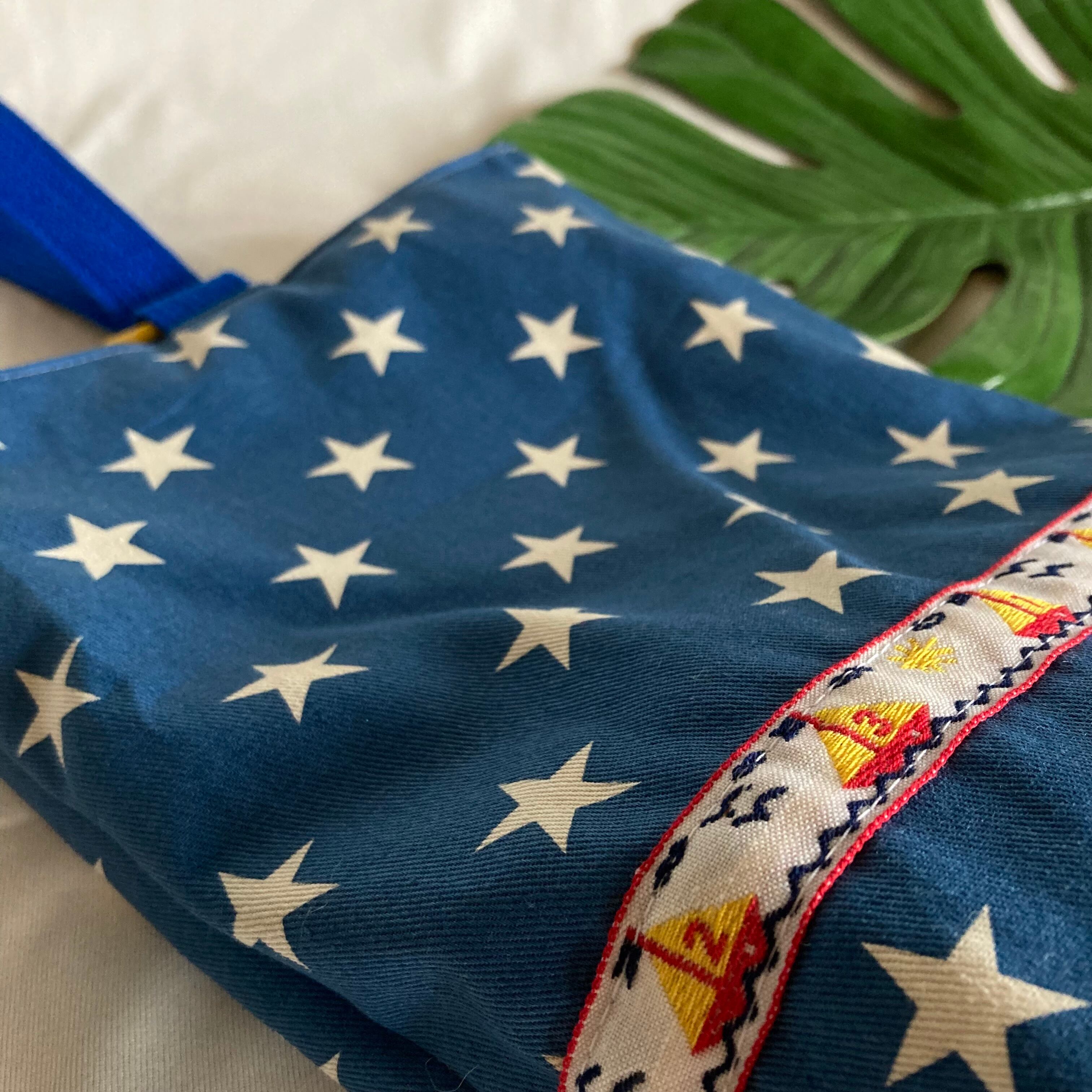 ●イエロー×ブルー系→ 電車PT、星柄ブルー、キルティングブルー、ブレードで飾りました
