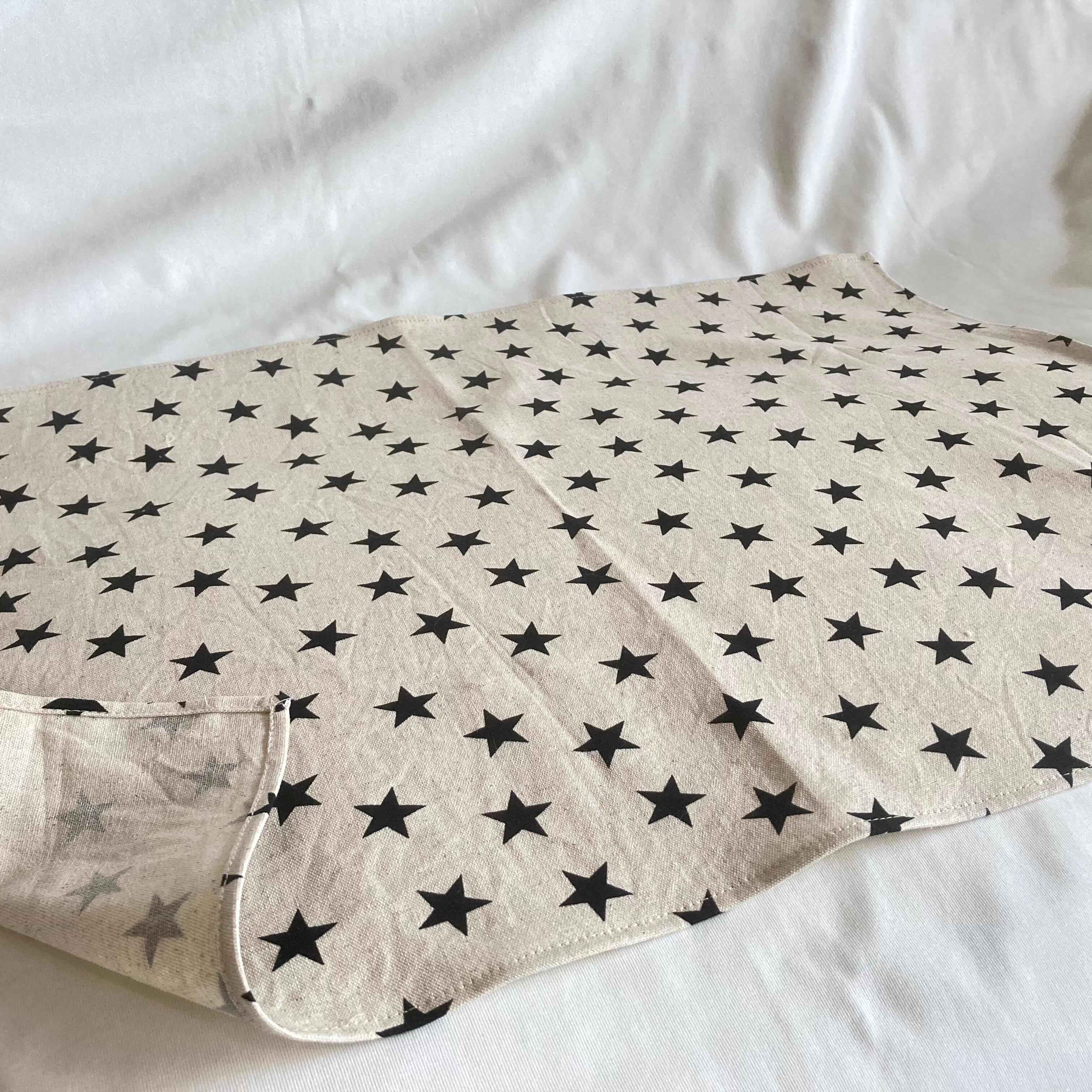 【オーダーOK】入園入学大きいランチョンマット★ナチュラル×黒星★給食ナフキンお弁当