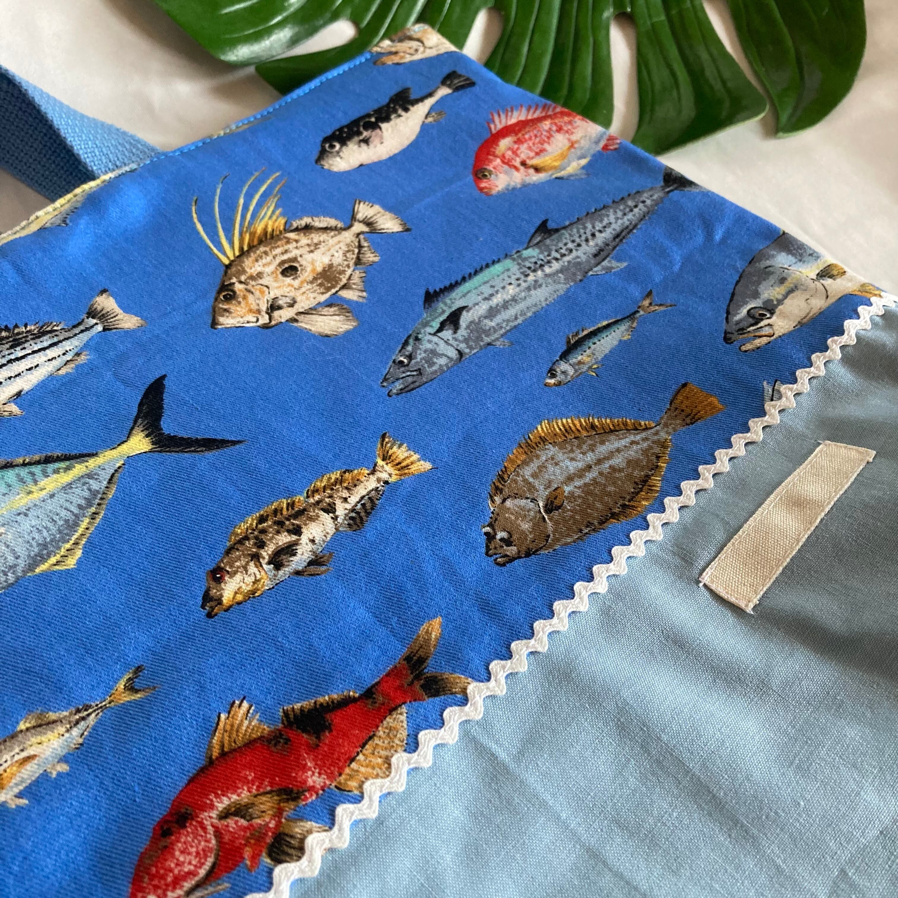 床につかない!!入園入学レッスンバッグ手提げ絵本袋リバーシブル★30お魚図鑑海の生き物水族館★縫い付けお名前小学校キルティングマチリボンポケット★ラッピングプレゼント誕生日クリスマス
