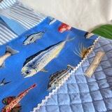 【素材】魚PT、ストライプ水色、キルティングアクア、ブレードなどで飾りました