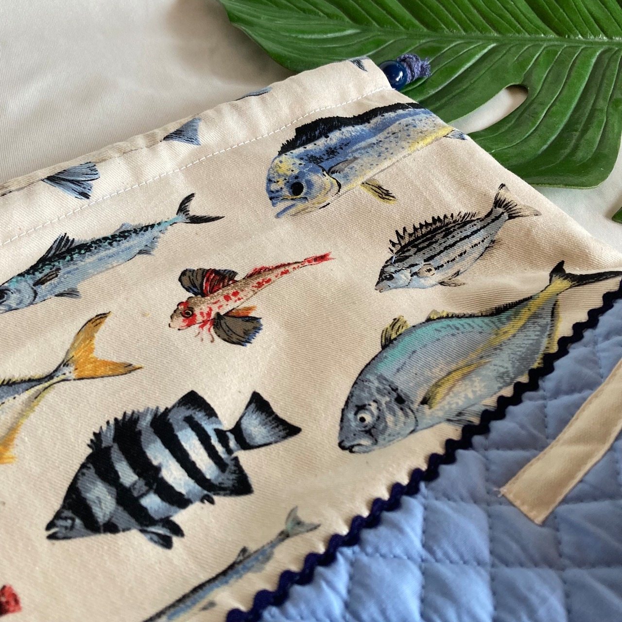 【オーダーOK】入園入学ランチバッグお弁当入れ巾着★30お魚図鑑海の生き物水族館★縫い付けお名前小学校キルティングマチ★ラッピングプレゼント誕生日クリスマス