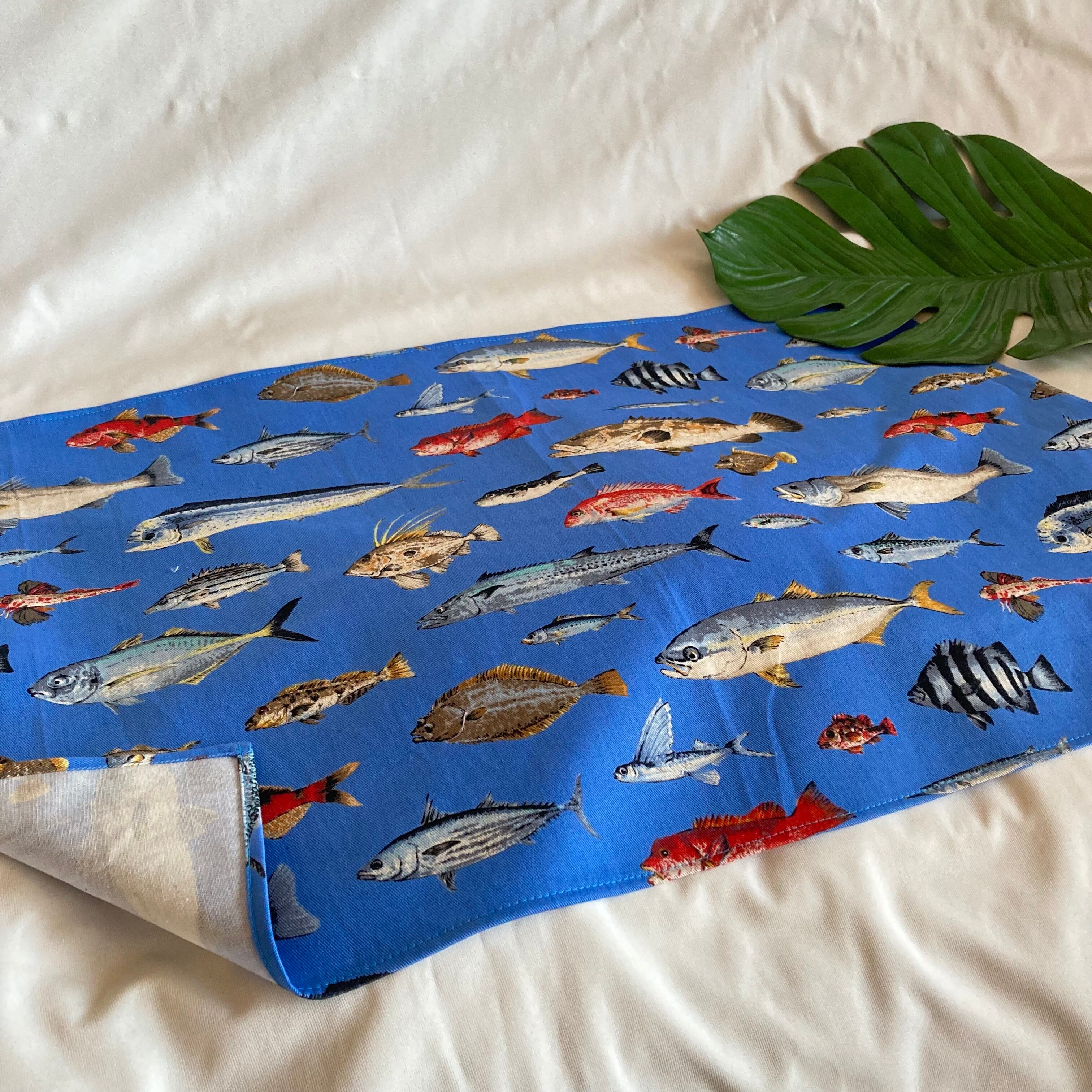 【オーダーOK】入園入学大きいランチョンマット60×40★30お魚図鑑海の生き物水族館★給食ナフキンお弁当縫い付けお名前小学校机40×60㎝