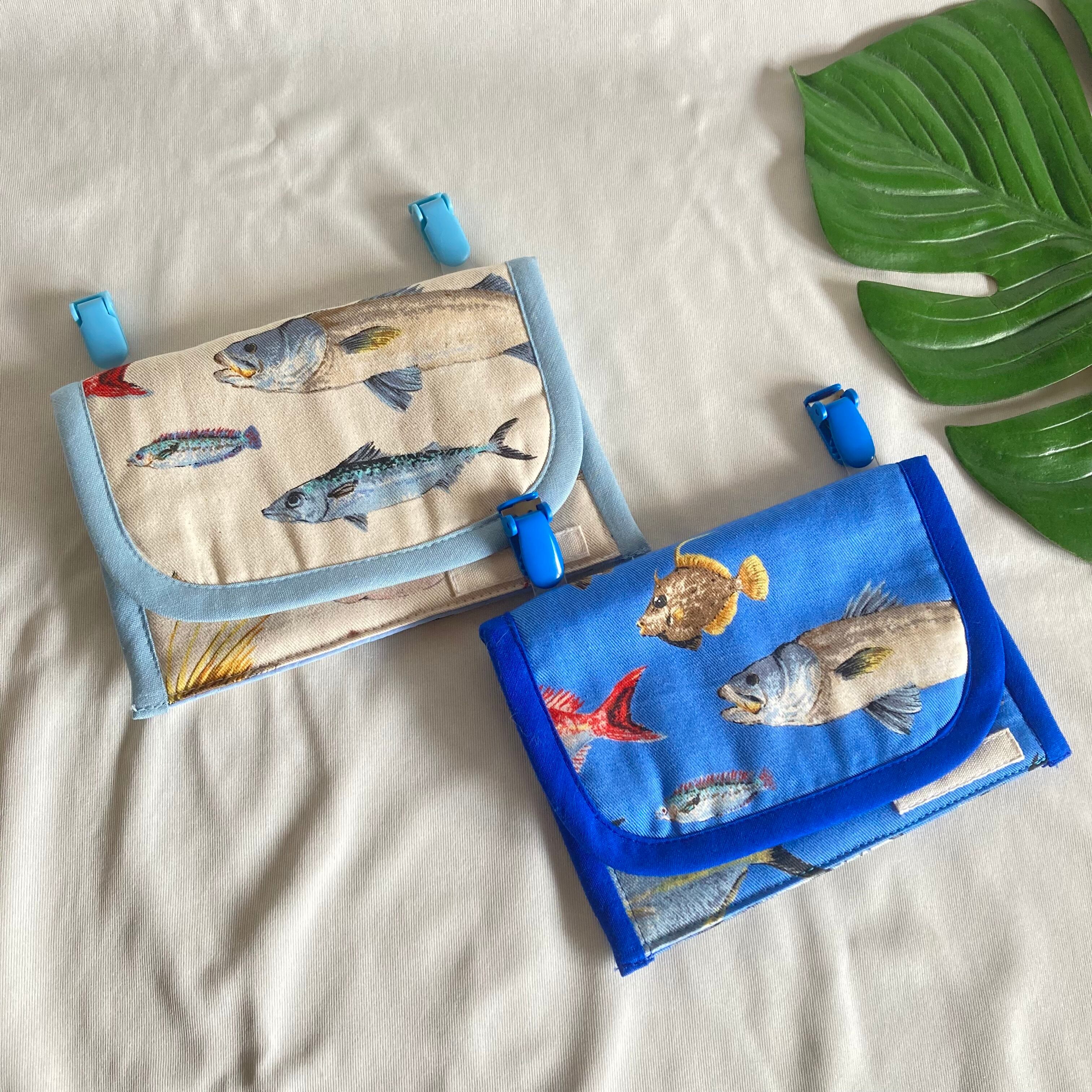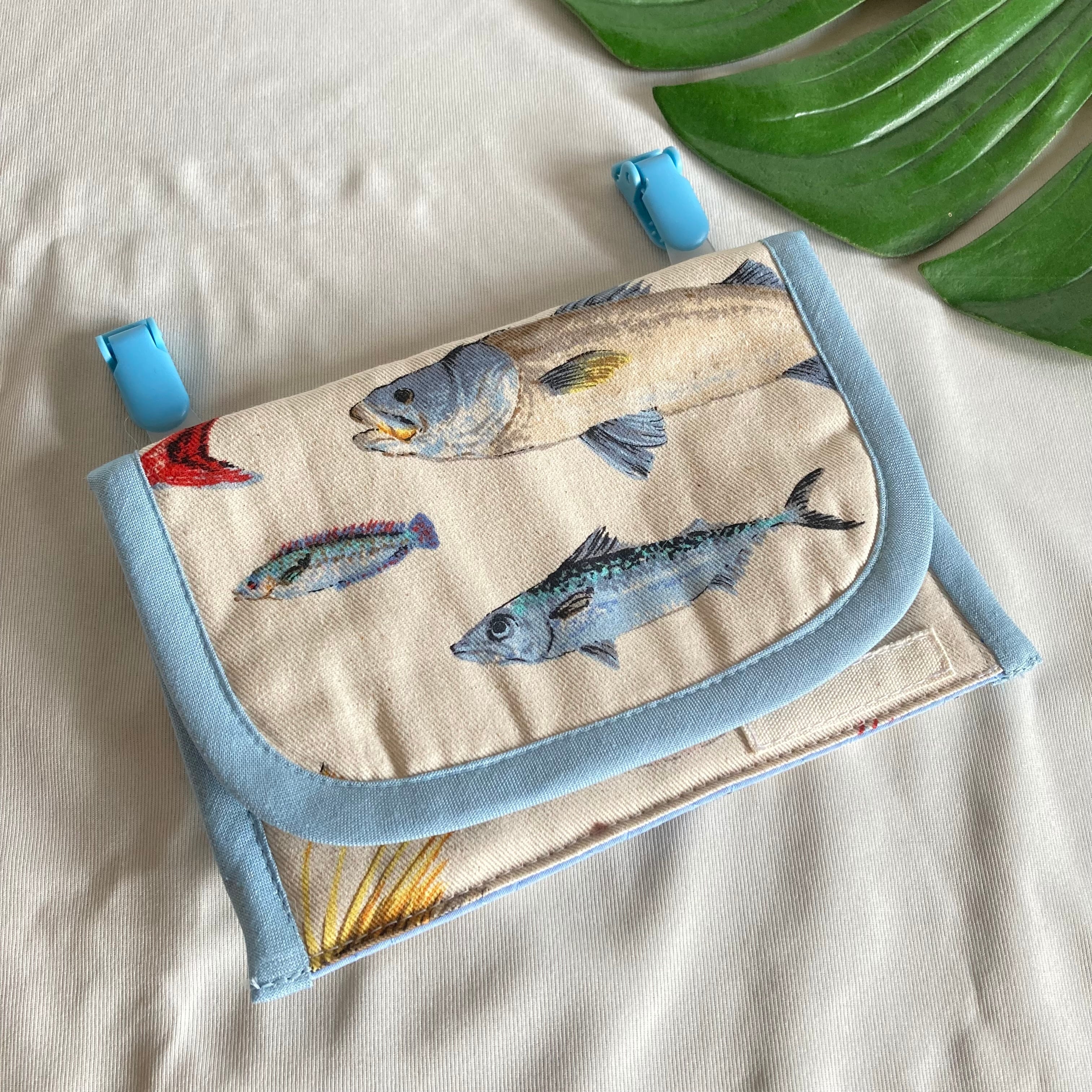 【オーダーOK】裏キルティング移動ポケット30お魚図鑑海の生き物水族館★マスクケース入園入学ハンカチティッシュマルチポケットお出かけポーチふぐ