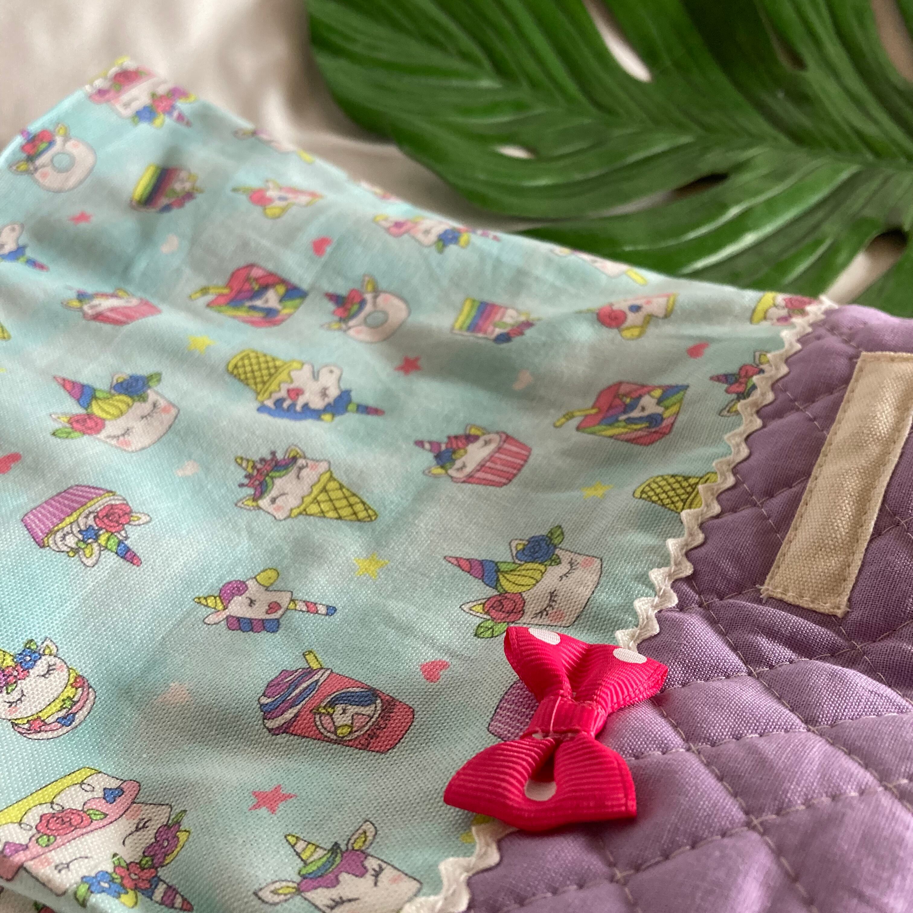 【素材】ユニコーンPT、ドットラベンダー、キルティングラベンダー、ブレード・リボンで仕上げました★