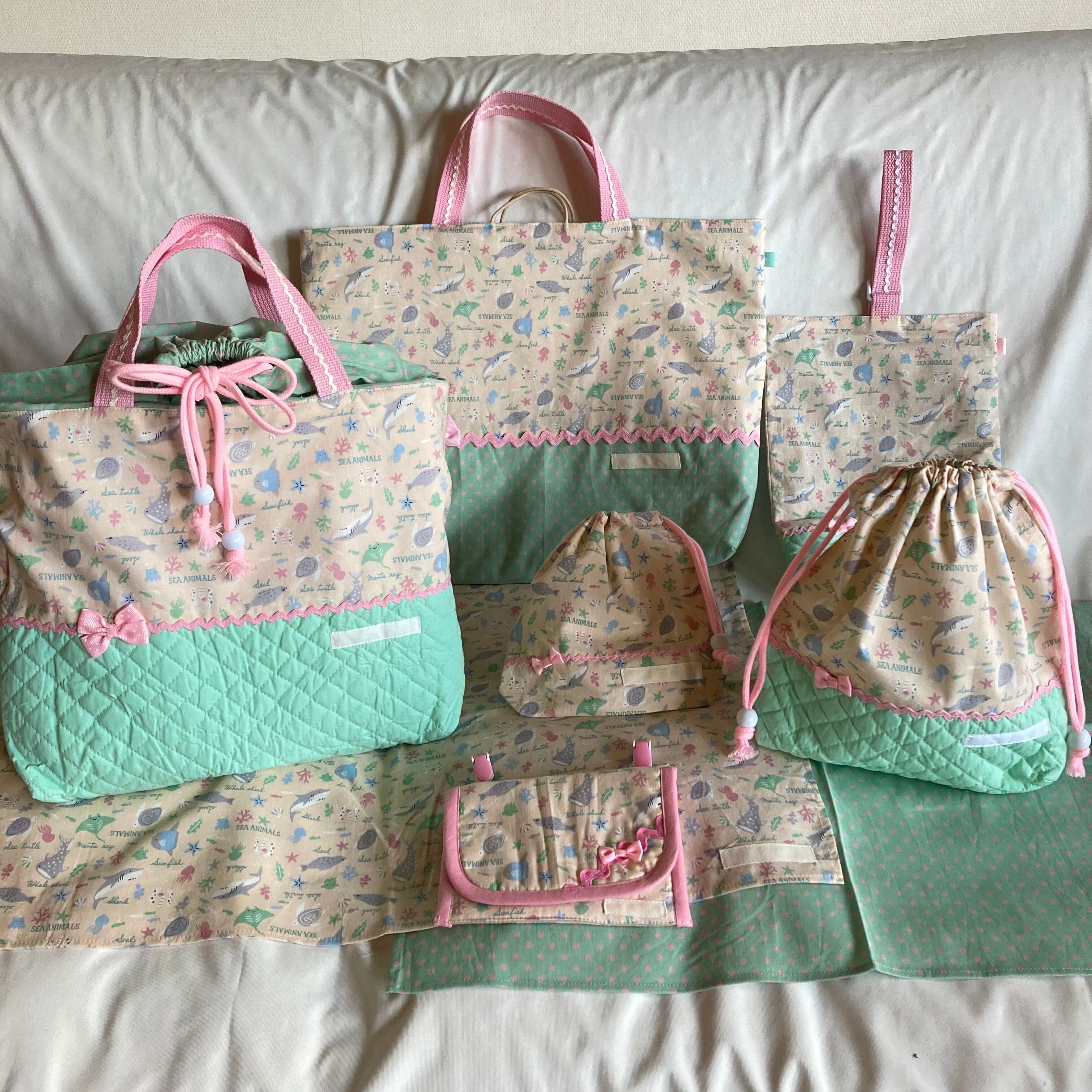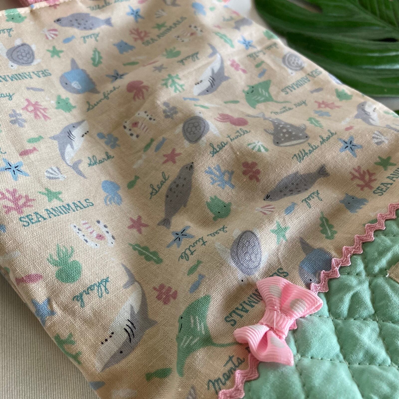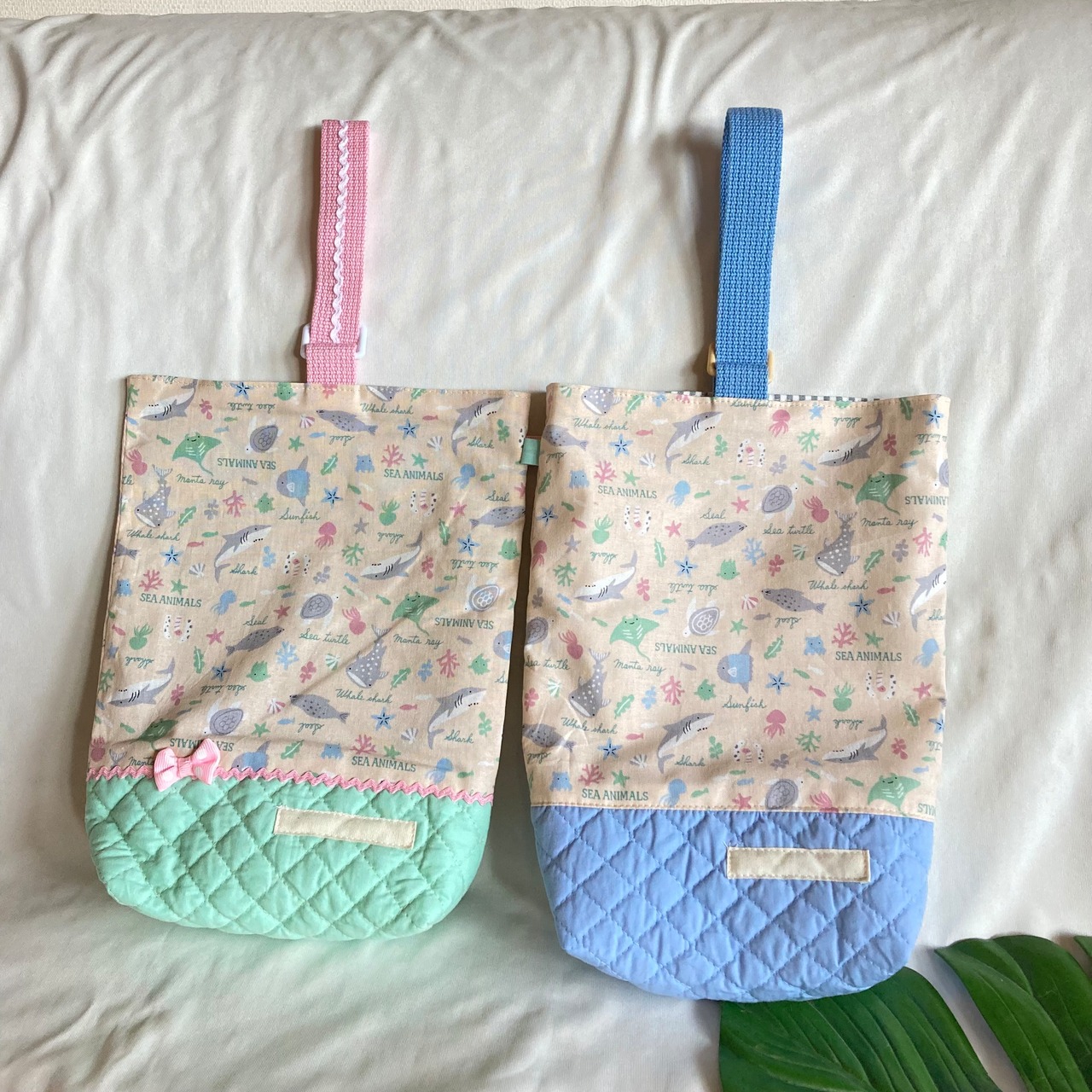 【オーダーOK】入園入学シューズケース上履き袋リバーシブル上靴39くすみニュアンパステル水族館くすみニュアンスイルカ魚カメエイマンタクジラサメ★縫い付けお名前小学校キルティングマチ★ラッピングプレゼン