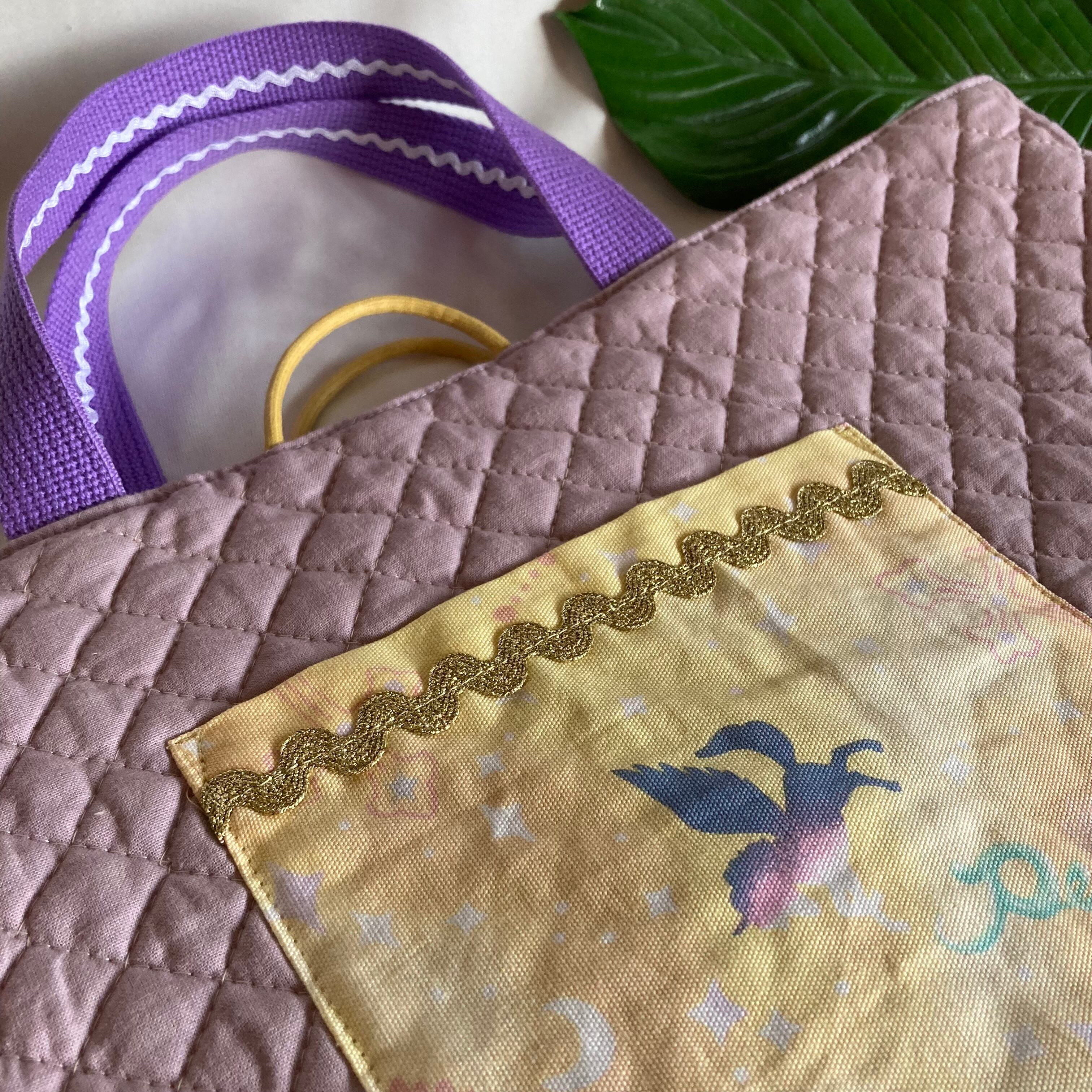 【床につかない!!】入園入学レッスンバッグ手提げ絵本袋リバーシブル73ユニコーン星座メリーゴーランドくすみニュアンスパステル女の子リボンレース縫い付けお名前小学校キルティングポケットお出かけ習い事