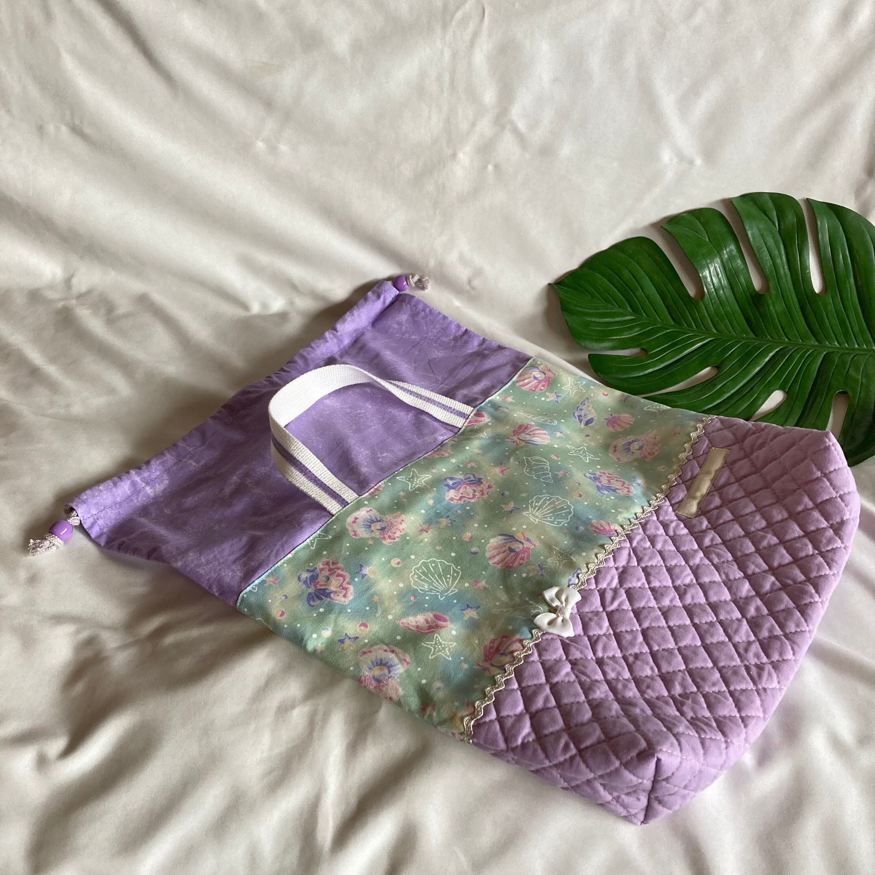 【オーダーOK】入園入学体操着お着替え袋持ち手内袋巾着56貝シェルきらきらパール