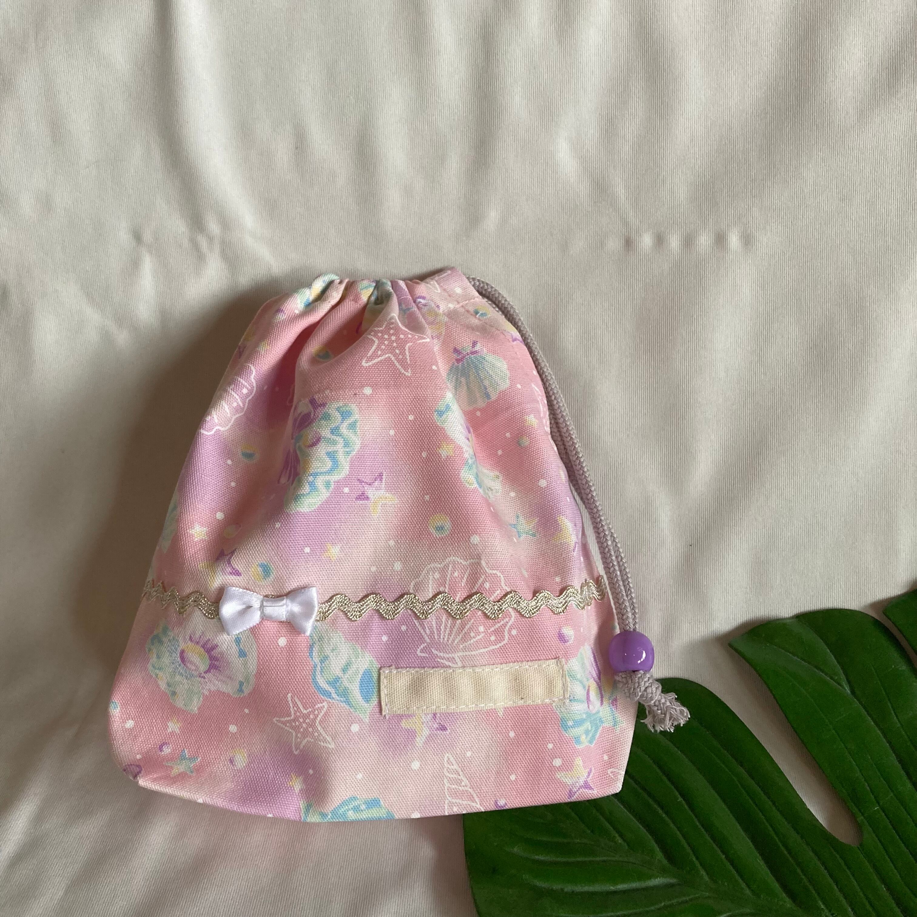 【オーダーOK】入園入学給食袋コップ入れ巾着56貝シェルきらきらパールくすみニュアンスパステルリボンレースクラシカルモダン