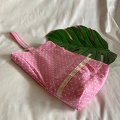 【素材】バレエPT、ドットピンク(綿かス残し仕上げ:黒っぽい点々は天然の綿の葉や茎などが入り込んだもので、 天然素材の風合いを楽しむために、漂白せずにあえて残してあるものです。カビ等ではございません)、キルティングピンク、ブレード・バレリーナちゃんはリボンで飾りました★