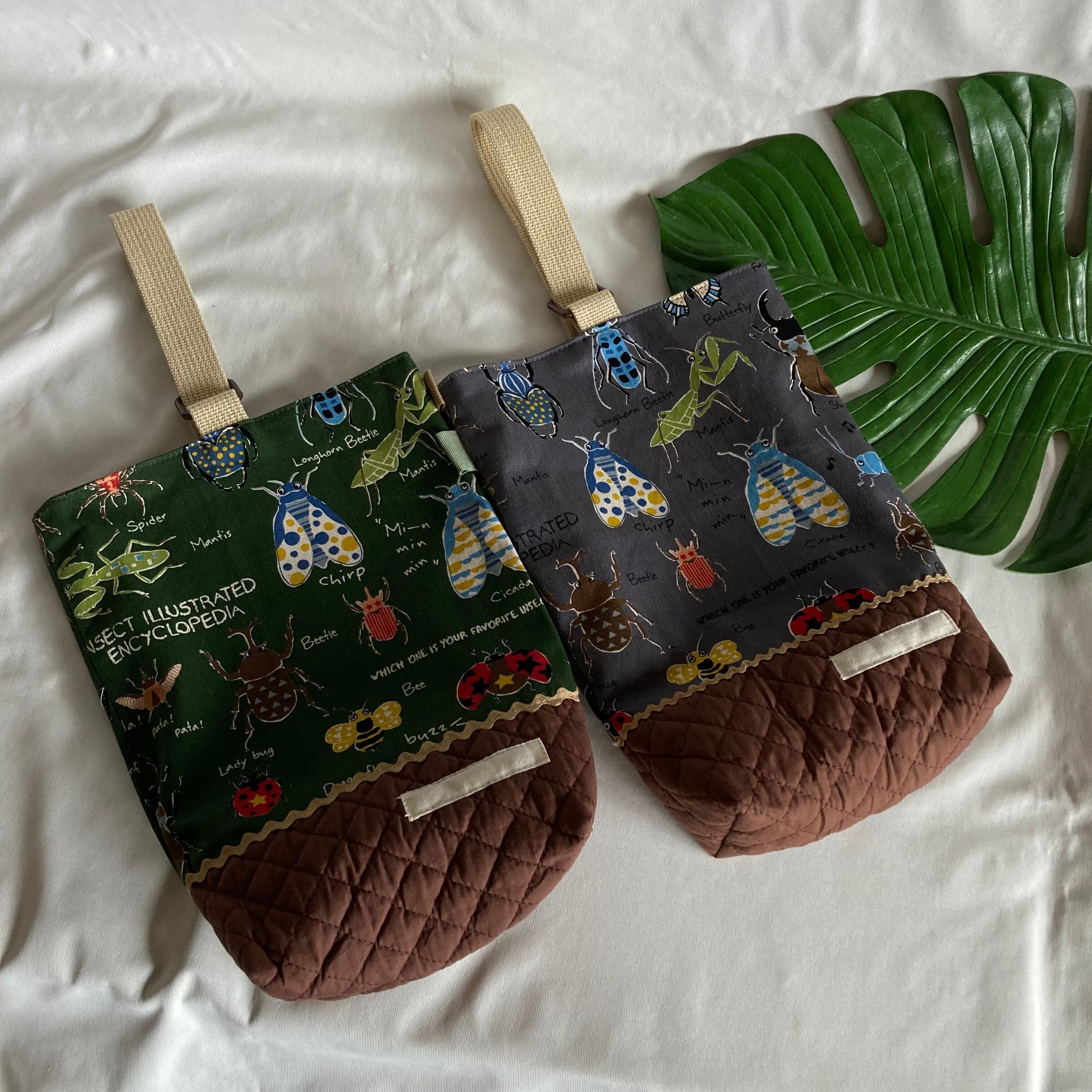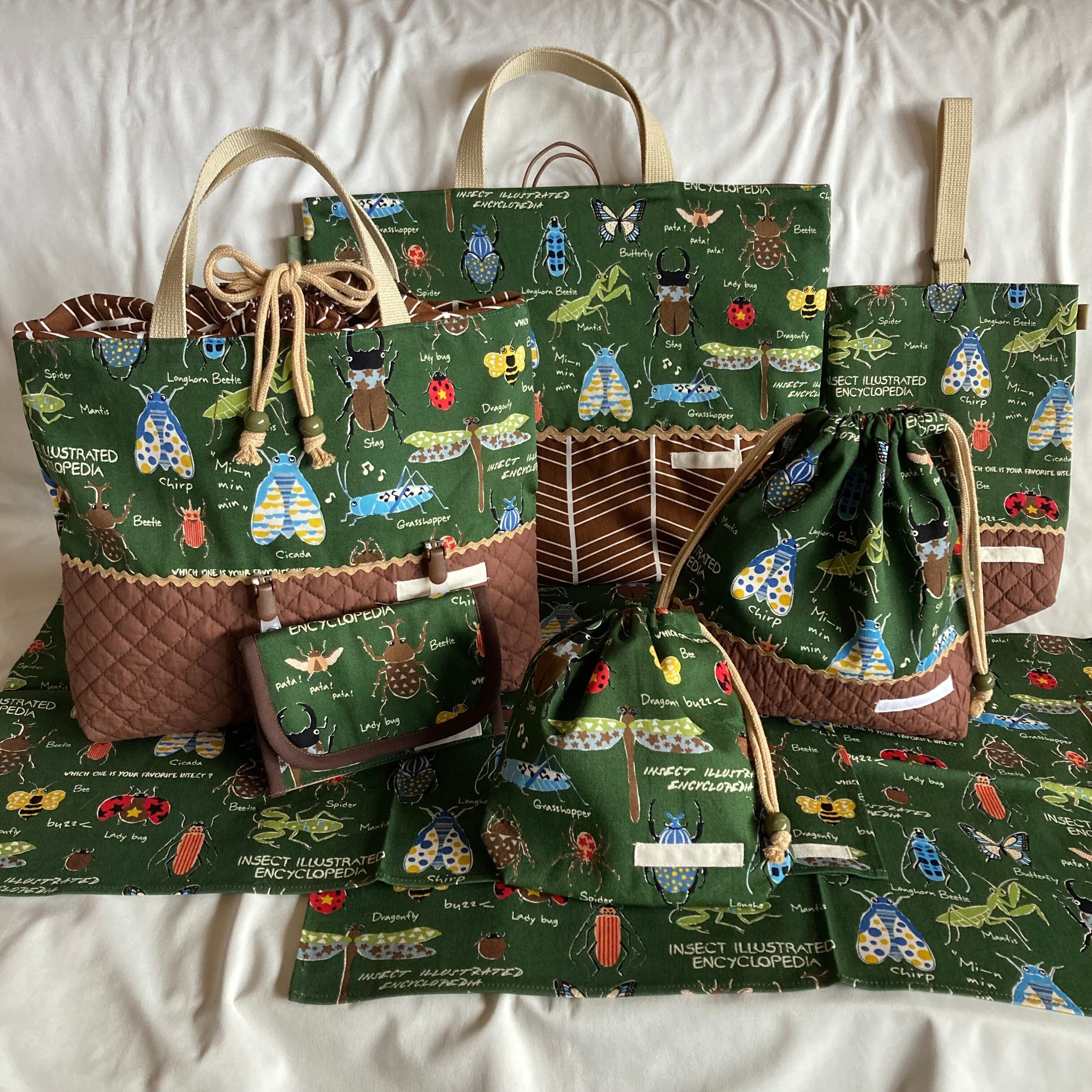 【オーダーOK】入園入学シューズケース上履き袋リバーシブル57昆虫図鑑かぶと虫クワガタてんとう虫トンボ蝶マチキルティング持ち手ハチくもセミ