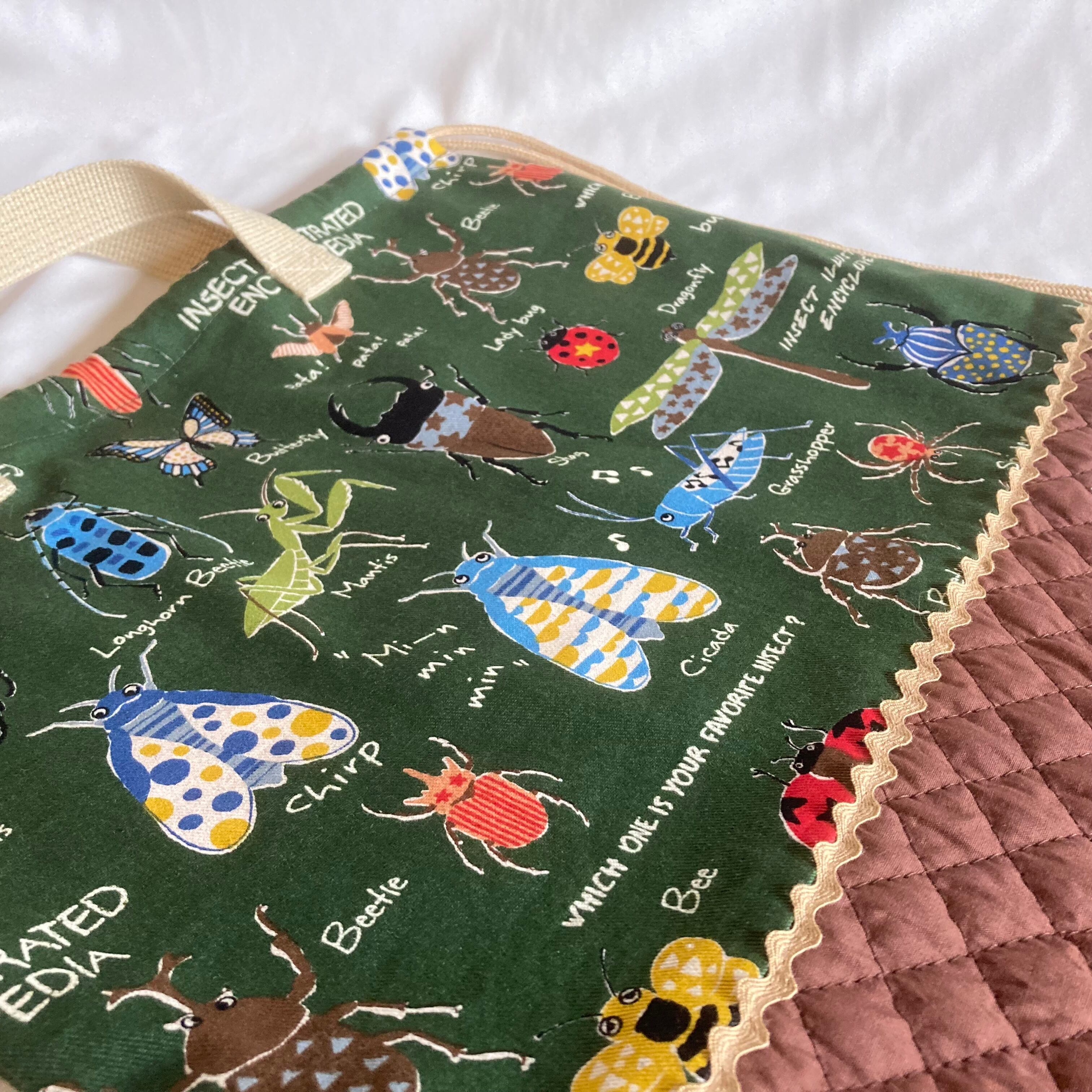 ランドセルの上から背負える!ナップサックナップザック持ち手つき巾着★57昆虫図鑑Gかぶと虫★入園入学クワガタてんとう虫トンボ蝶々クモハチキルティング