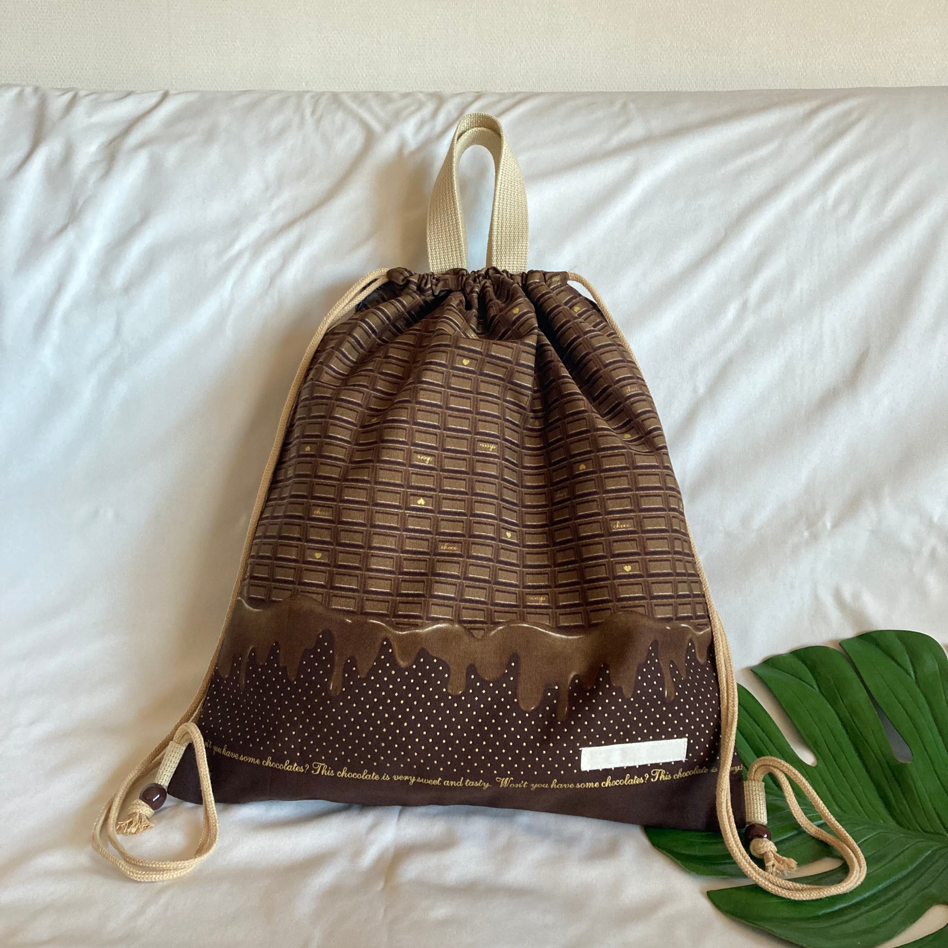 ランドセルの上から背負える!ナップサックナップザック持ち手つき巾着★34とろける板チョコレートスイートバレンタイン★入園入学スイーツ名前