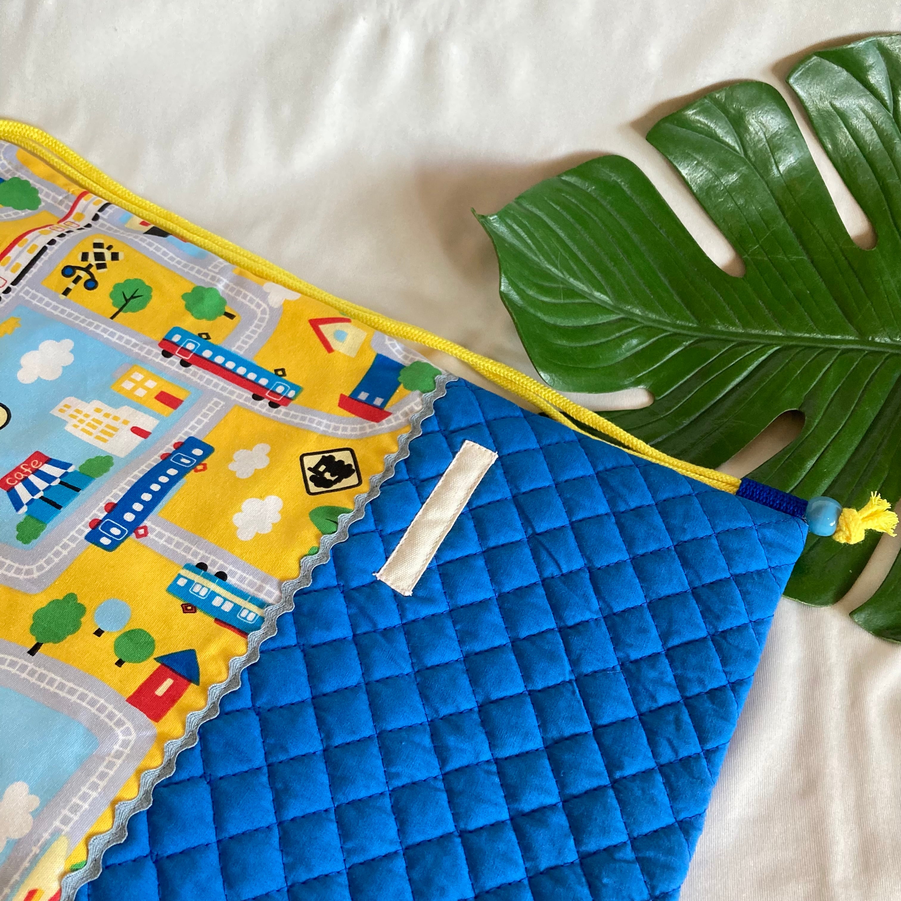 ●イエロー×ブルー系→ 電車PT、キルティングブルー、ブレードで飾りました