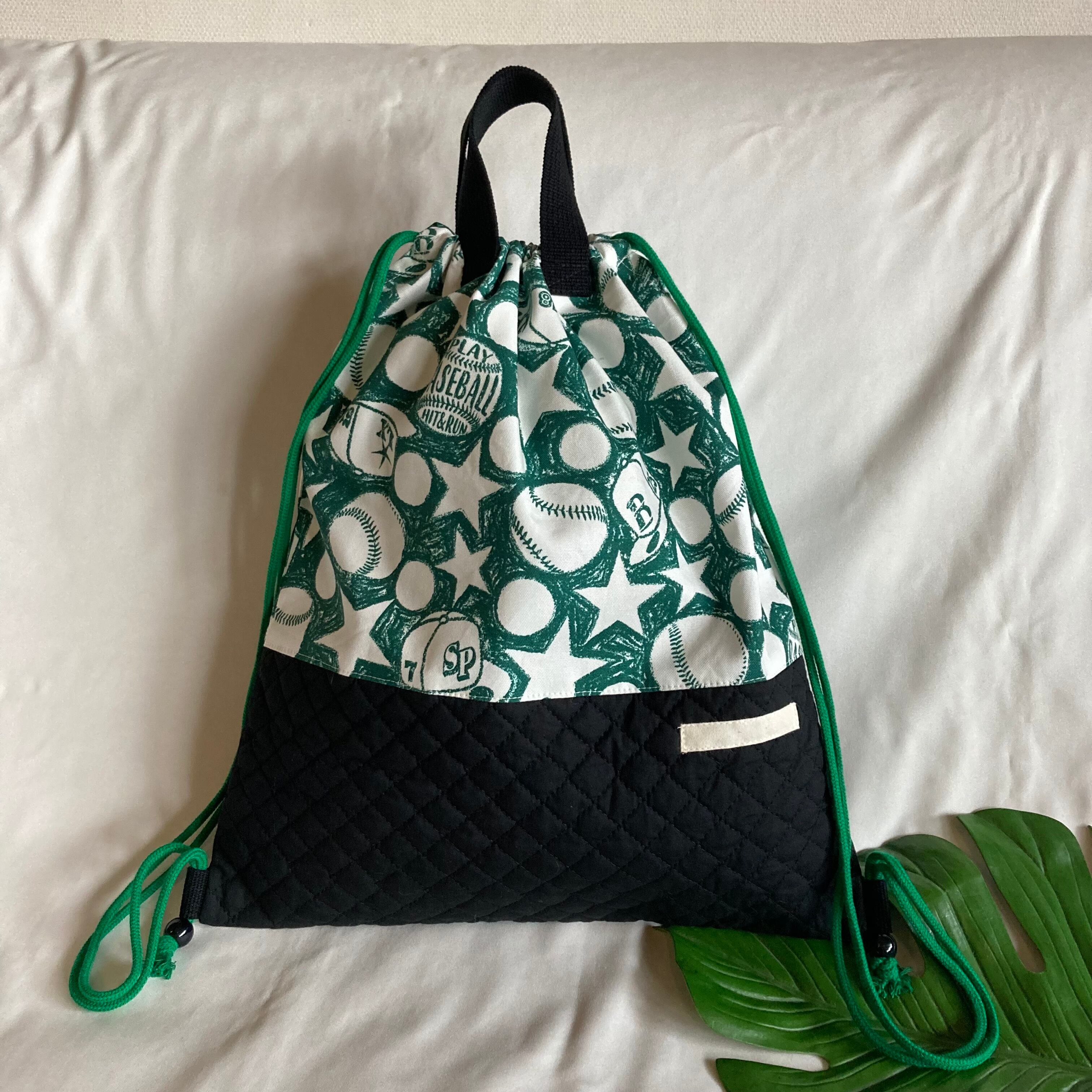 ランドセルの上から背負える!ナップサックナップザック持ち手つき巾着★38野球ベースボールスポーツ★入園入学男の子キルティング切り替えくすみニュアンスパステル