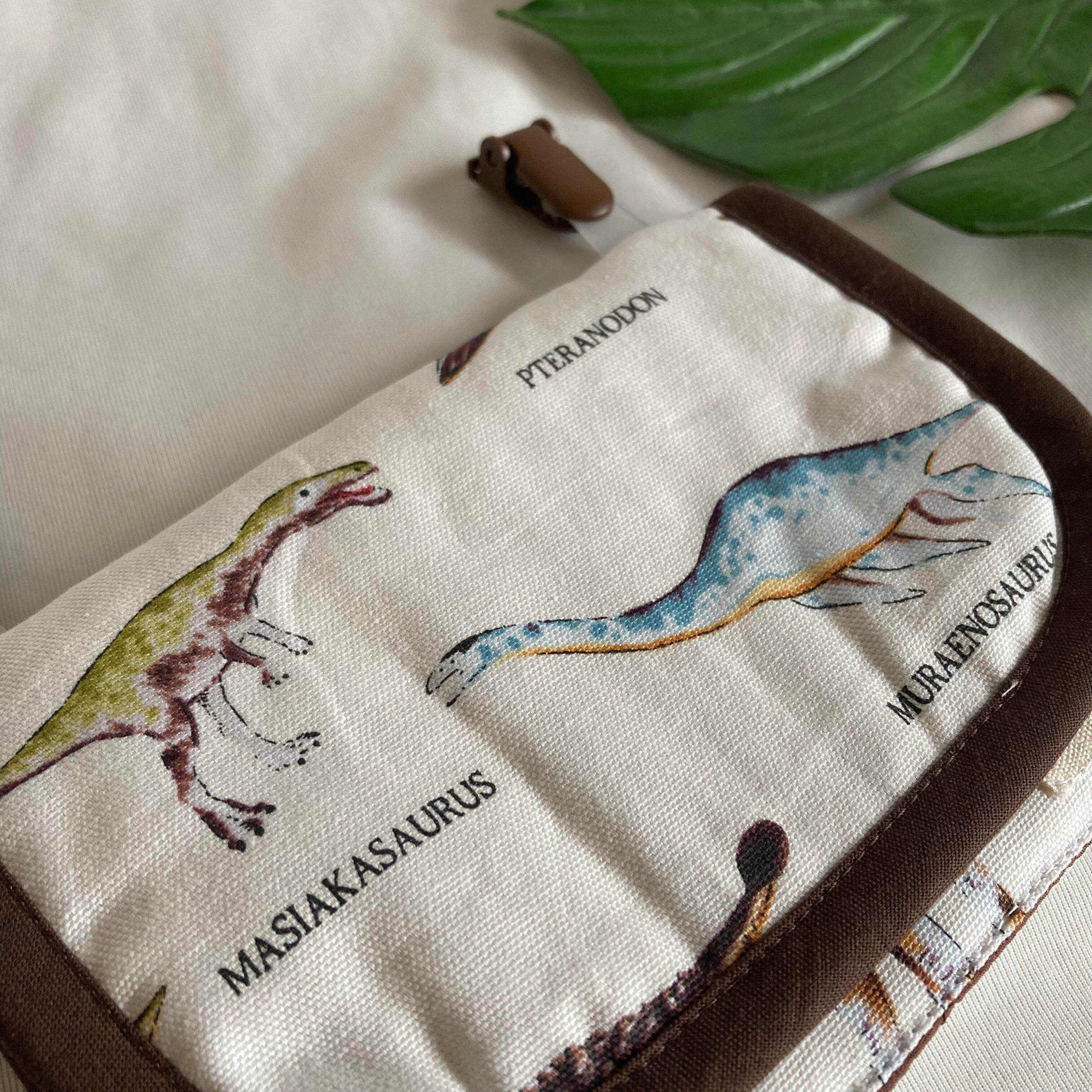 【オーダーOK】裏キルティング移動ポケット03恐竜図鑑Bアロサウルススピノサウルス★マスクケース入園入学ハンカチティッシュマルチポケット縫い付けお名前小学校