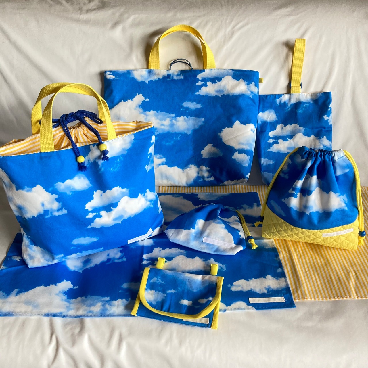 【オーダーOK】入園入学給食袋コップ入れマチつき巾着★50青空スカイ雲B