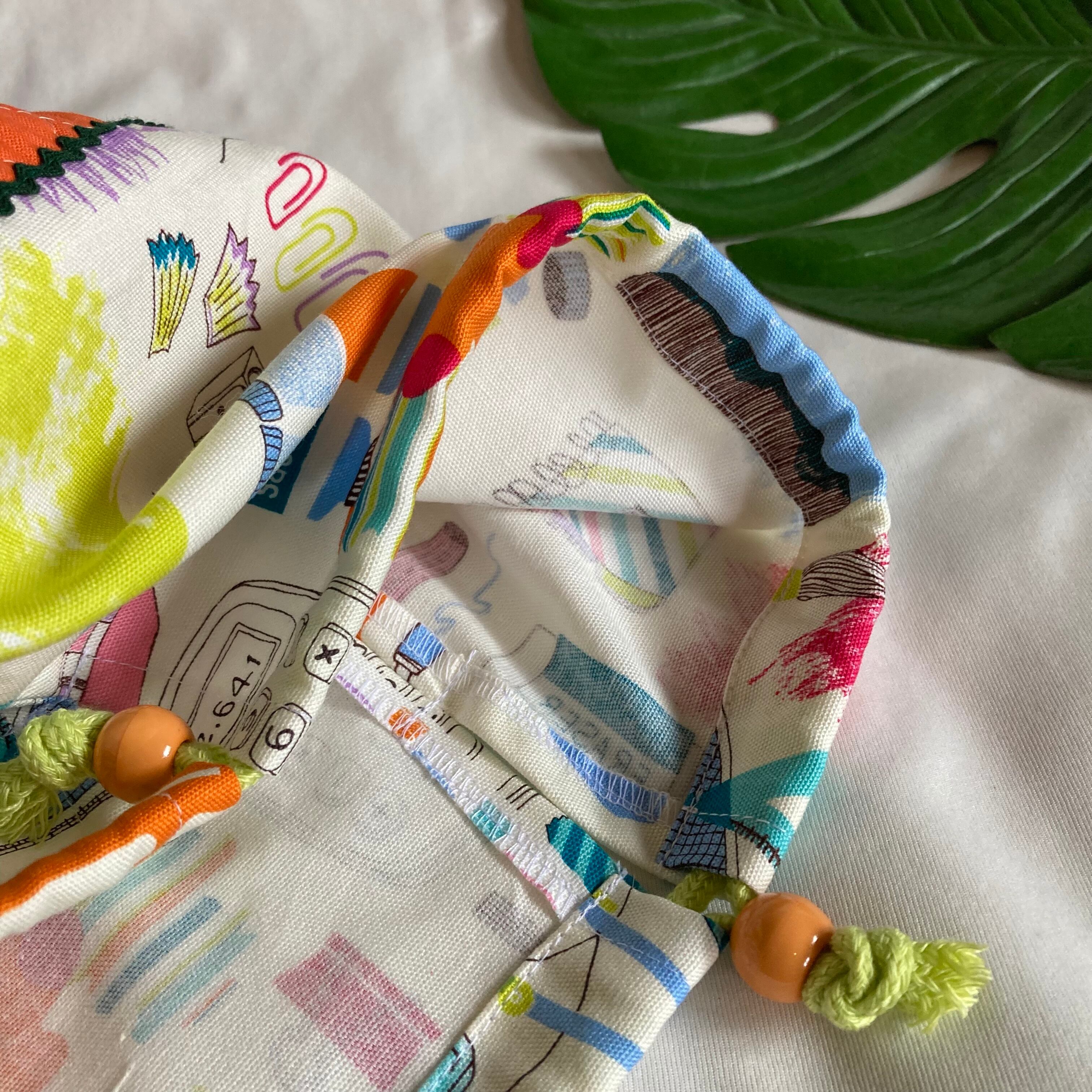 【オーダーOK】入園入学ランチバッグお弁当入れマチつき巾着04カラフル文房具★縫い付けお名前小学校キルティングマチ★ラッピングプレゼント誕生日クリスマス