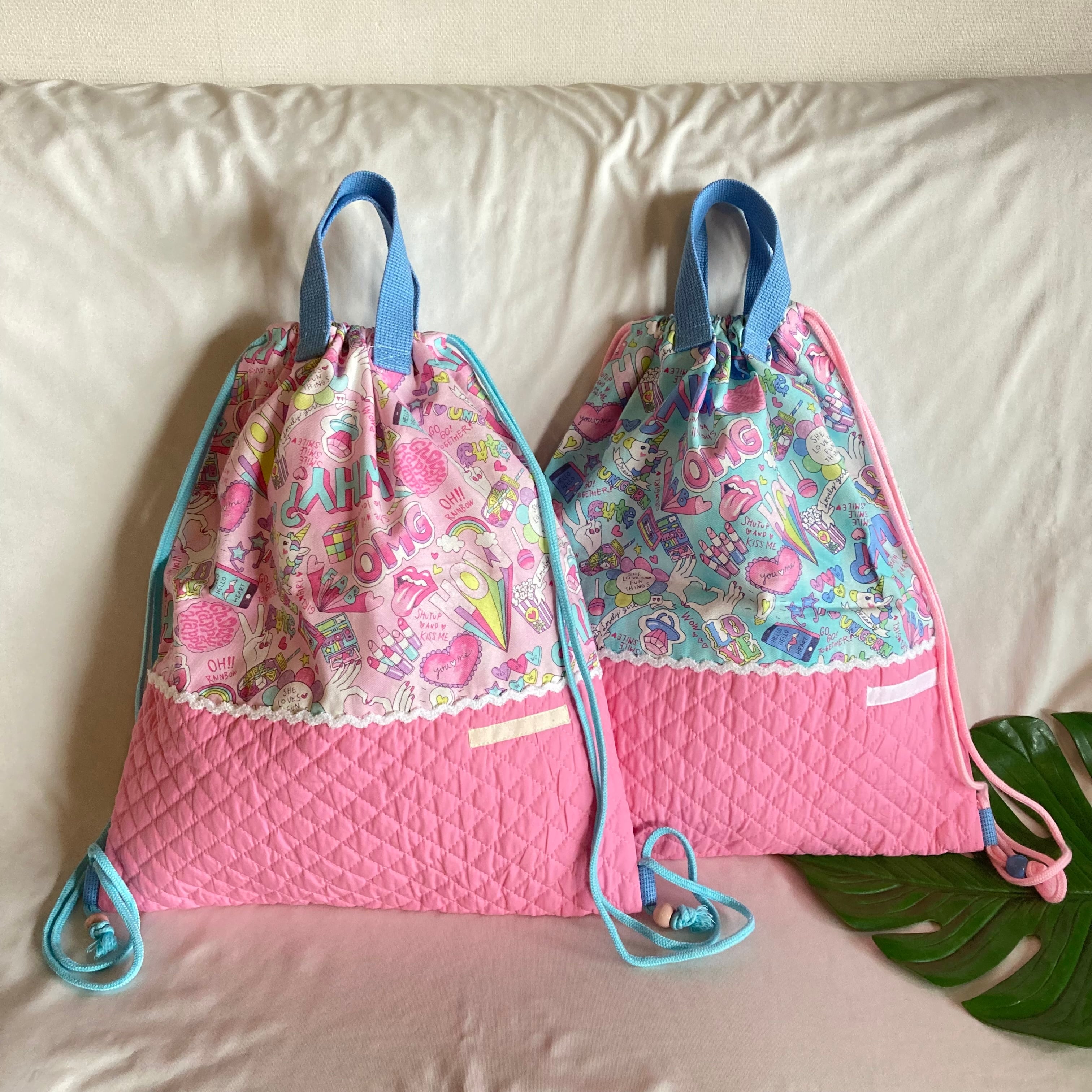 【オーダーOK】入園入学セット15ポップロゴユニコーン★手提げレッスンバッグシューズ体操着コップ上履き給食お着替え巾着ランチョンマット移動ポケットナップサック