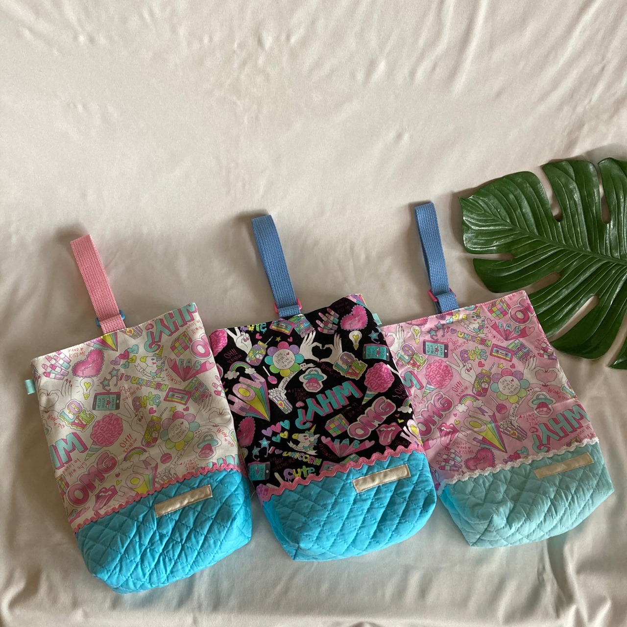 【素材】ユニコーンPT、ストライプ・ドットなどのシンプル生地、キルティング無地、ブレードで飾りました★