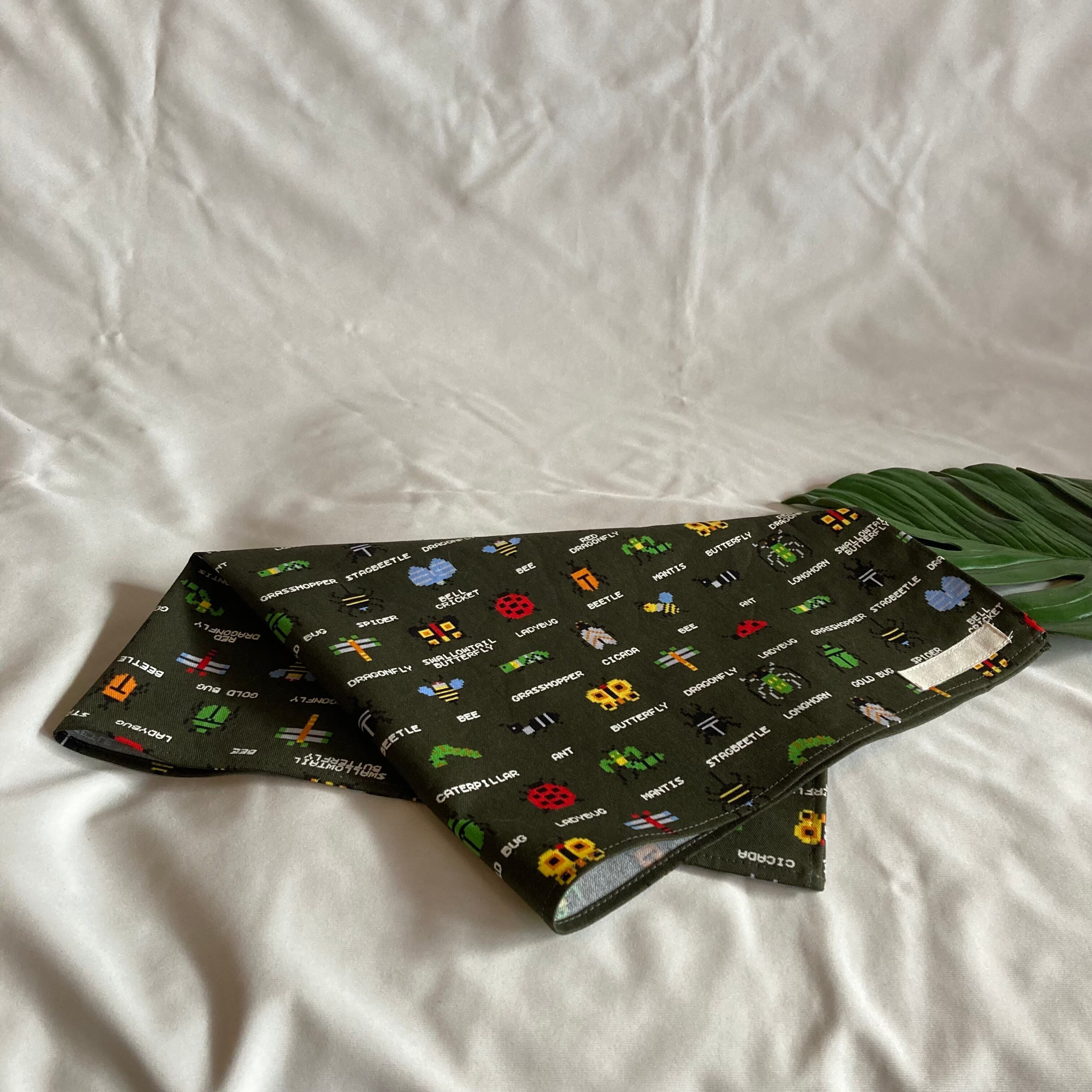 【オーダーOK】入園入学大きいランチョンマット60×40★29ブロック昆虫図鑑英語ピクセルプログラミングかぶと虫クワガタ蝶々クモはち★給食ナフキンお弁当