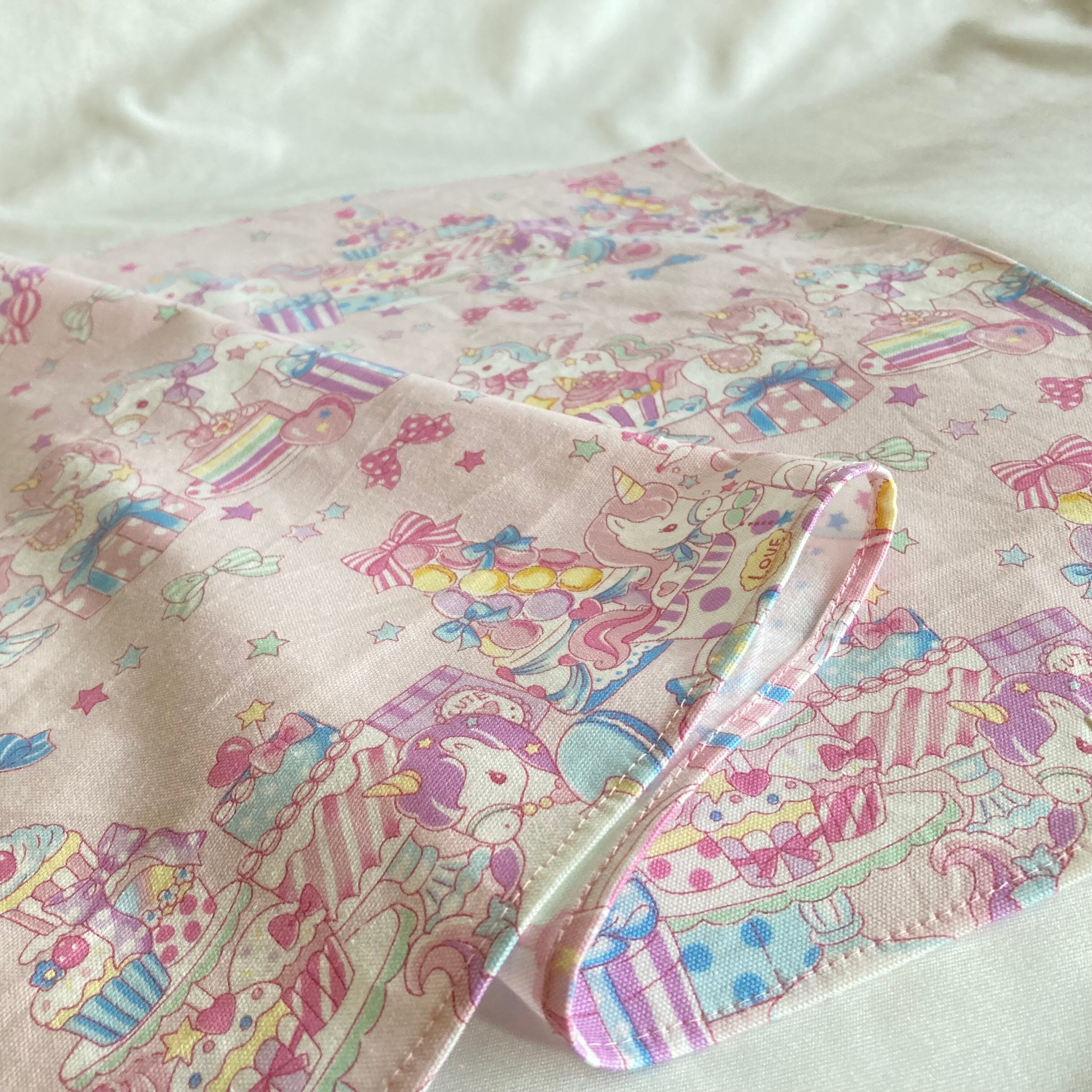 【素材】ユニコーンPT、キルティングピンク、ストライプパステル、ぼん天ブレードで飾りました★