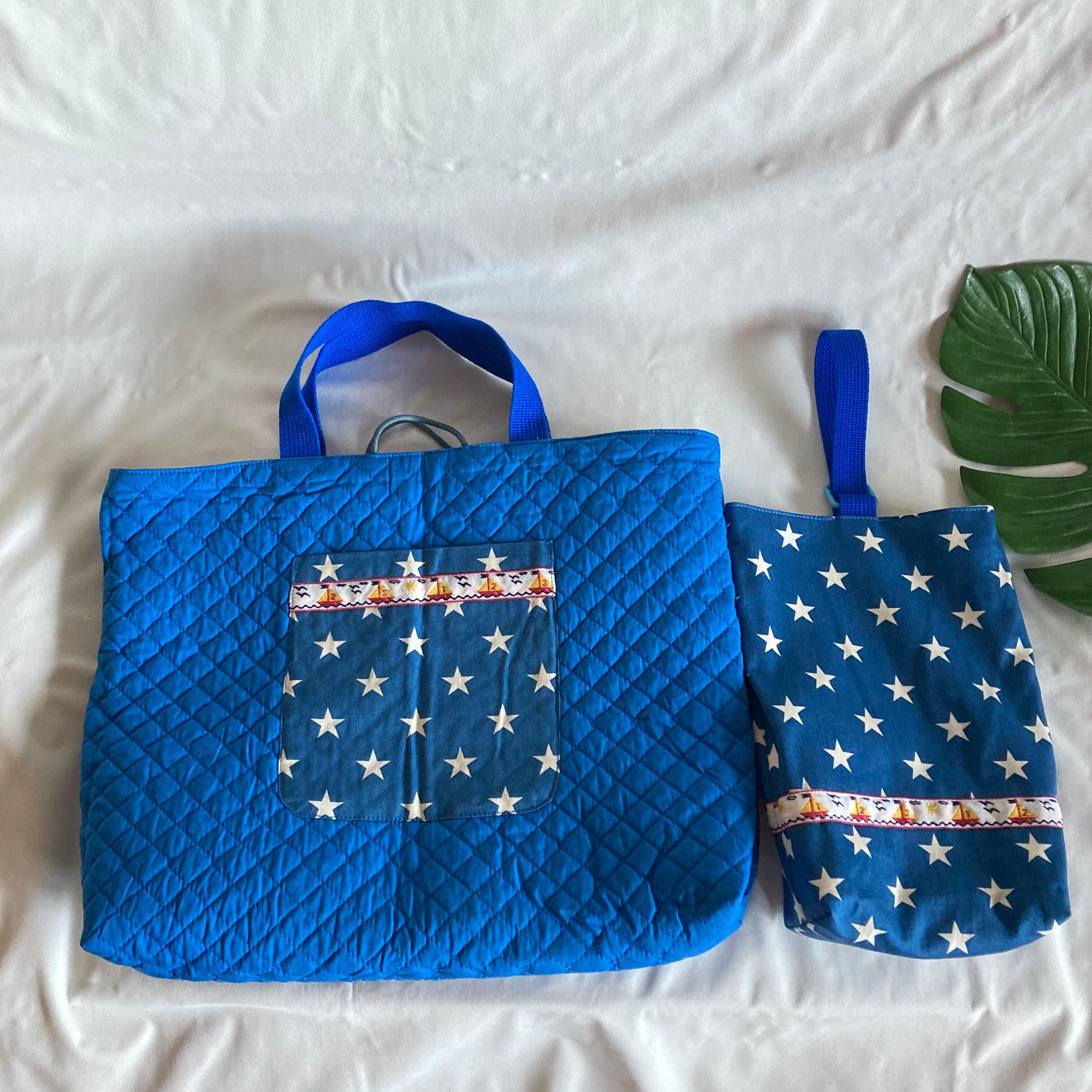 【素材】電車PT、キルティングブルー、星柄ブルー★