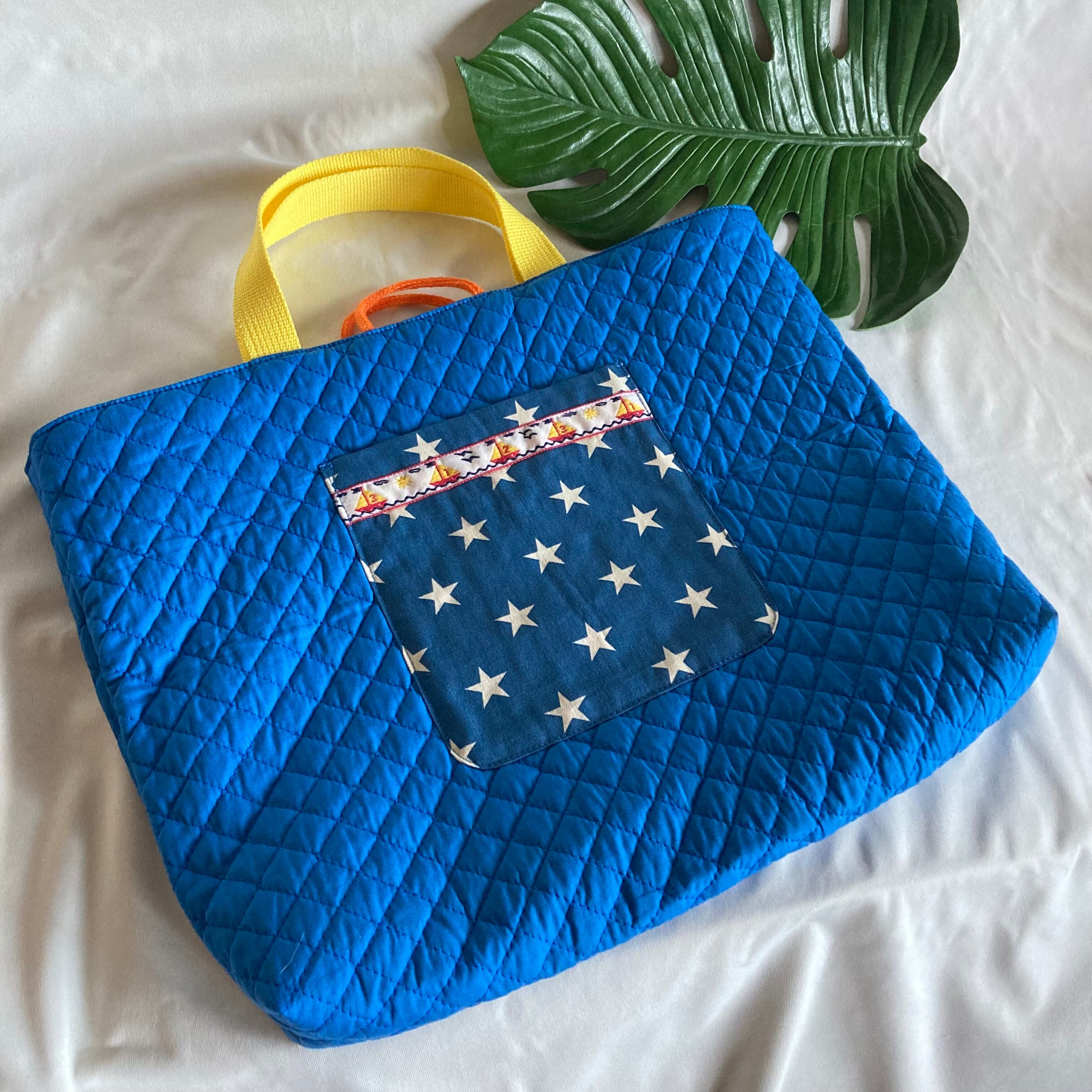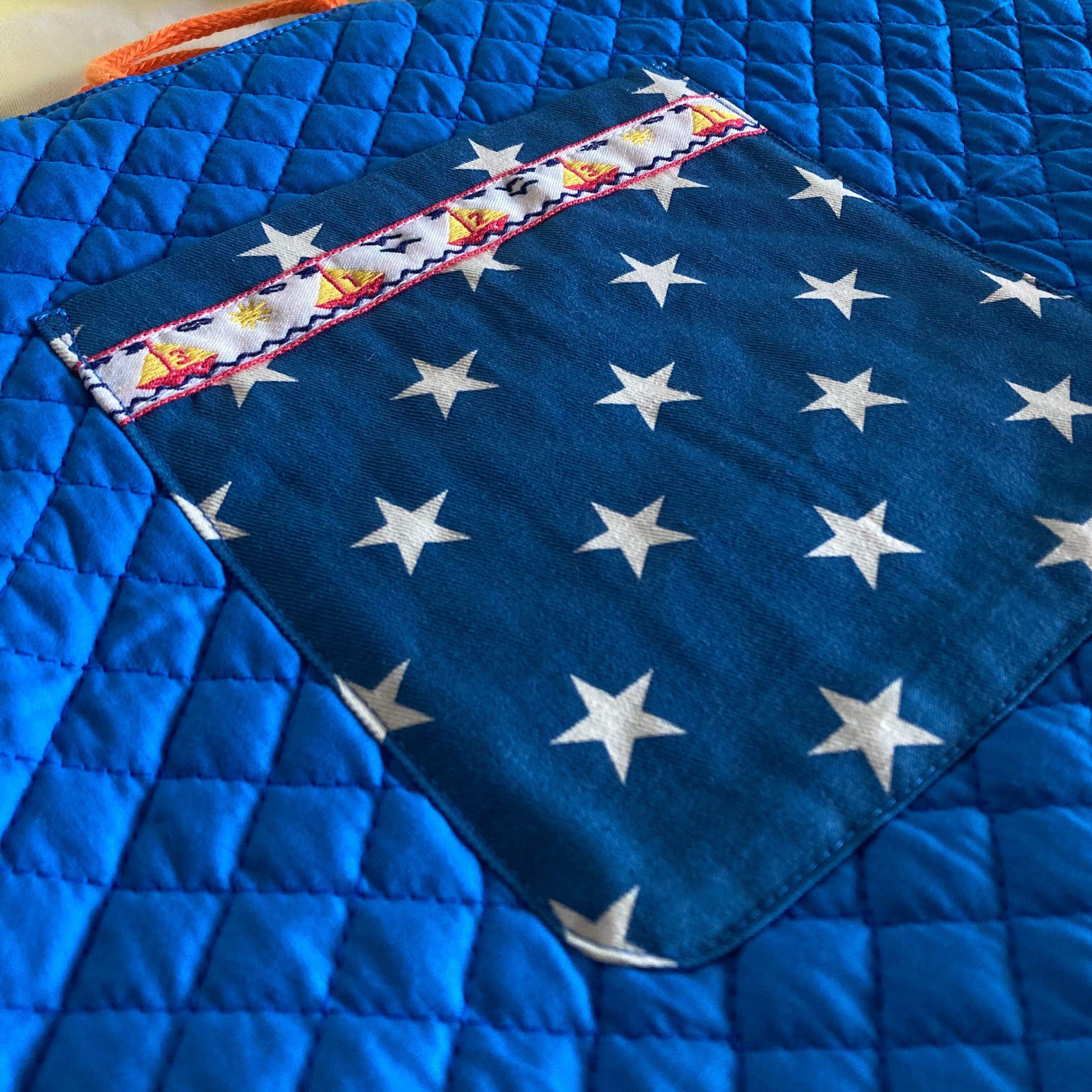 電車PT、キルティングブルー、星柄ブルー★