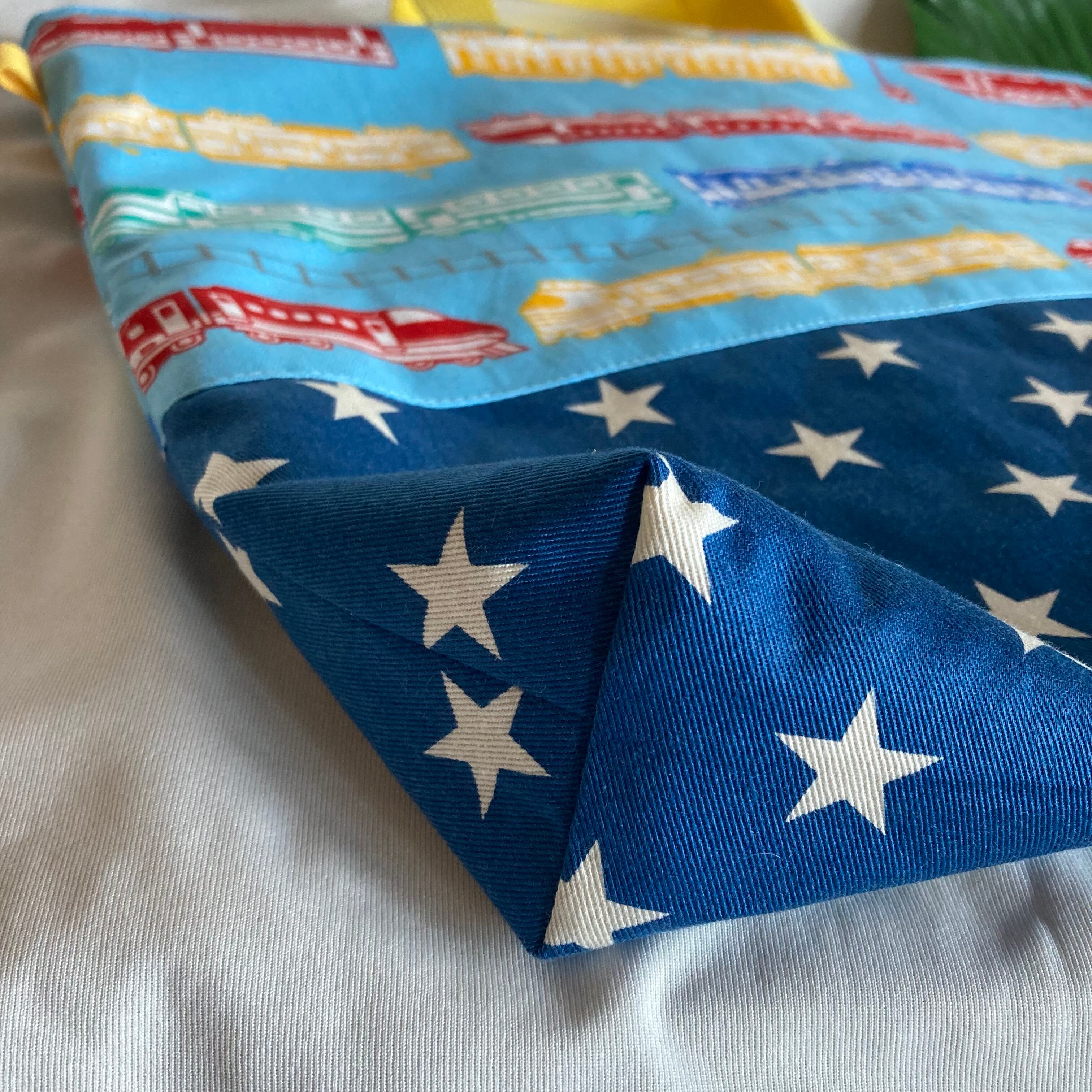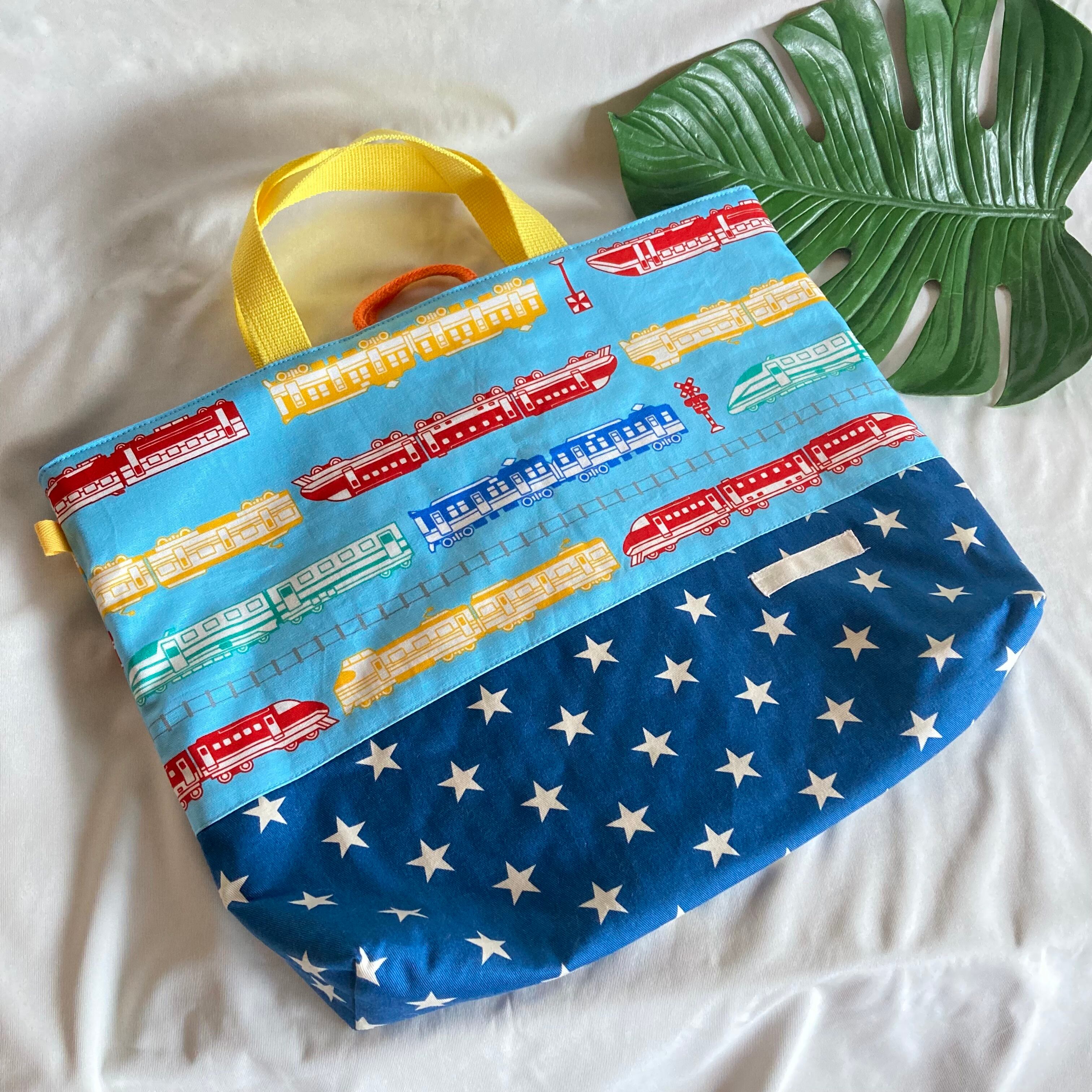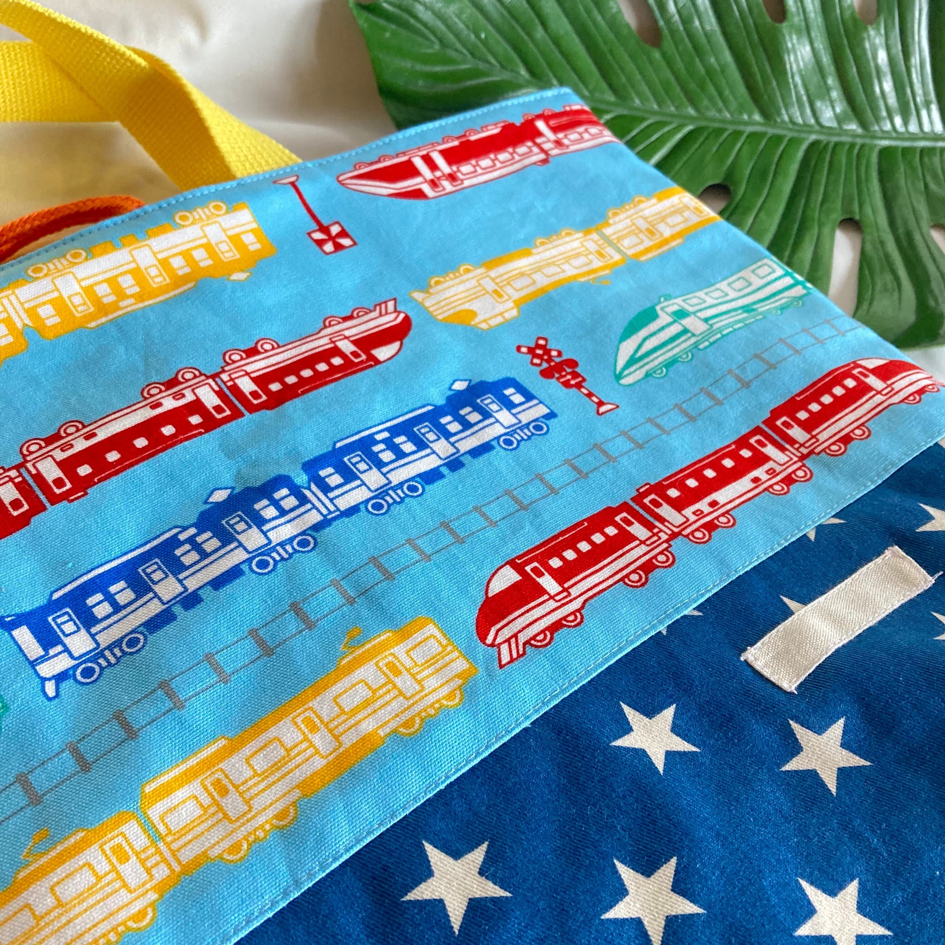 【床につかない!!】入園入学レッスンバッグ手提げ絵本袋リバーシブル★35電車踏切線路特急新幹線★縫い付けお名前小学校マチキルティングポケット習い事幼児★ラッピングプレゼント誕生日クリスマス