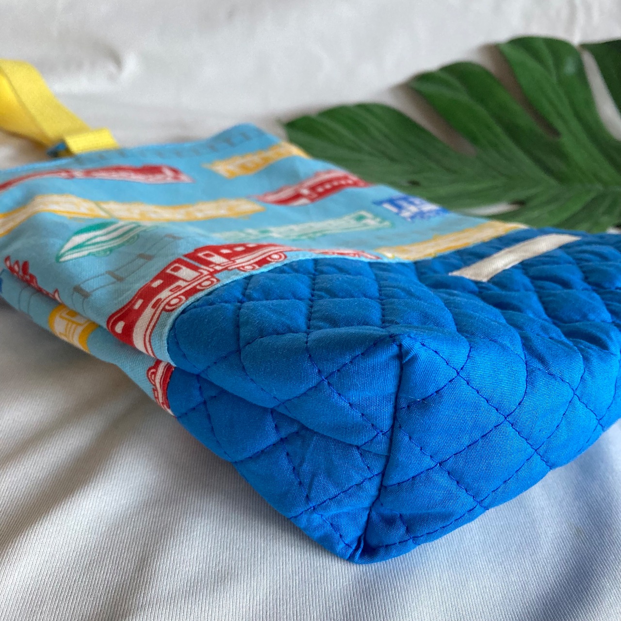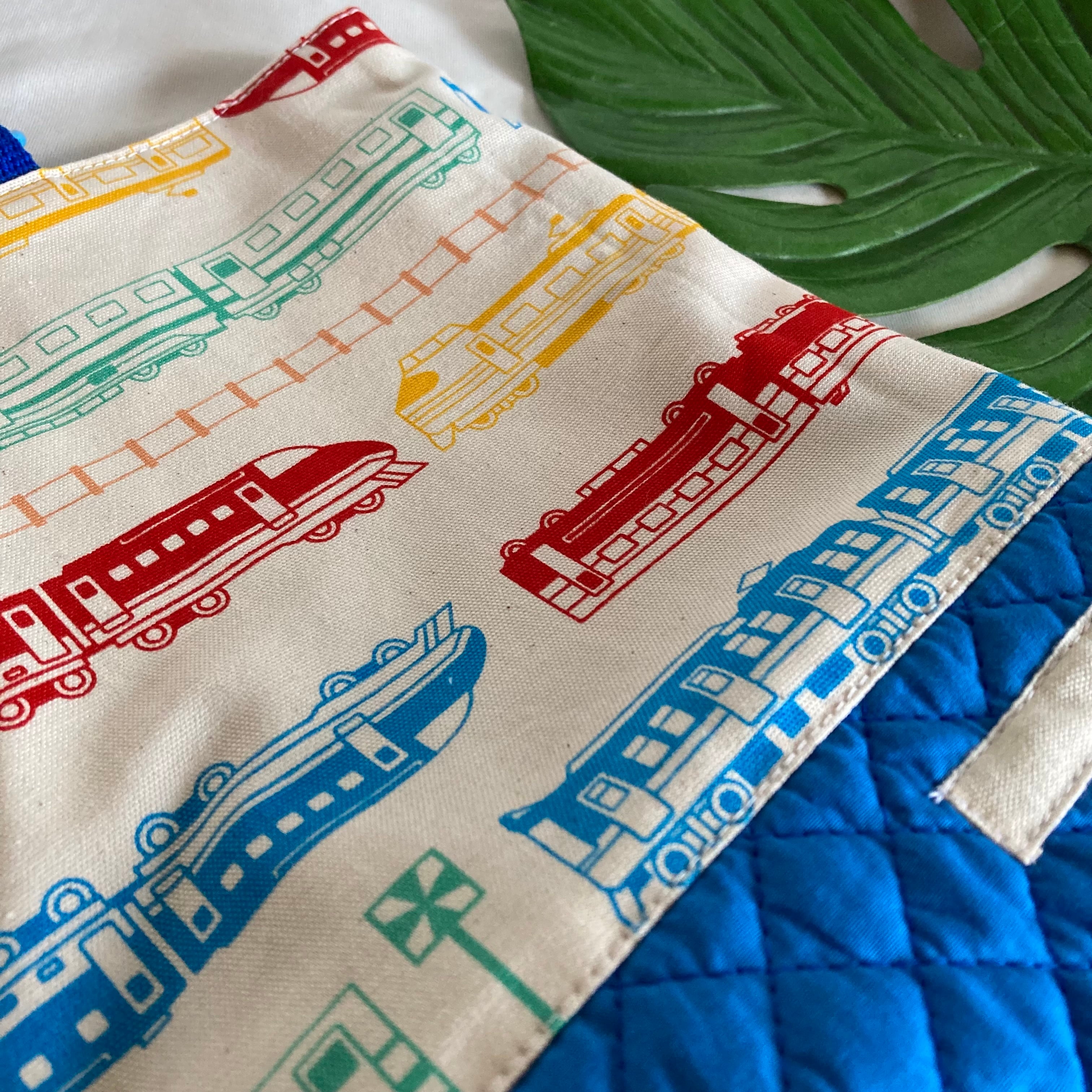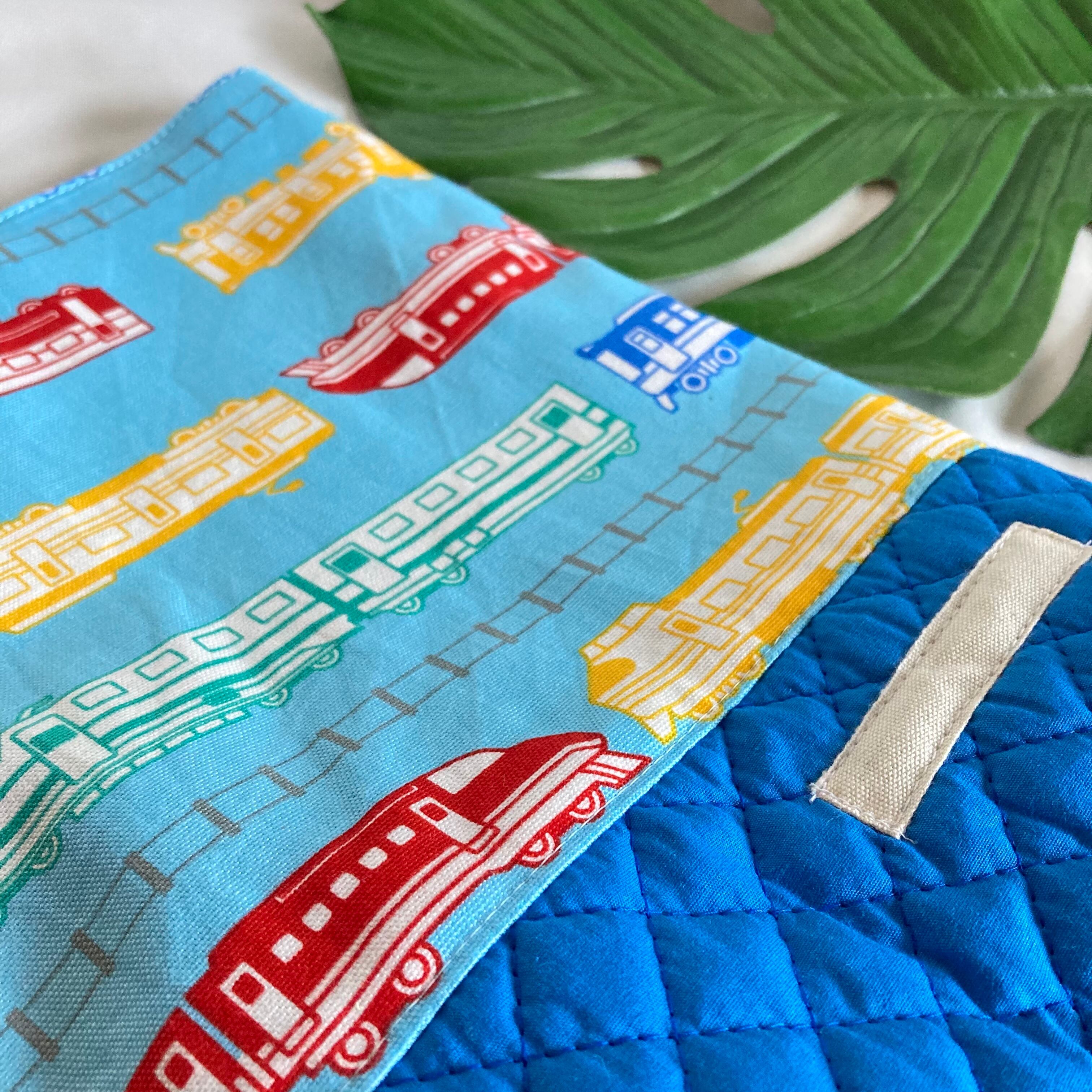 【オーダーOK】入園入学シューズケース上履き袋リバーシブル上靴35電車踏切線路特急新幹線カラフルポップ★縫い付けお名前小学校マチキルティング★ラッピングプレゼント誕生日クリスマスDカン持ち手