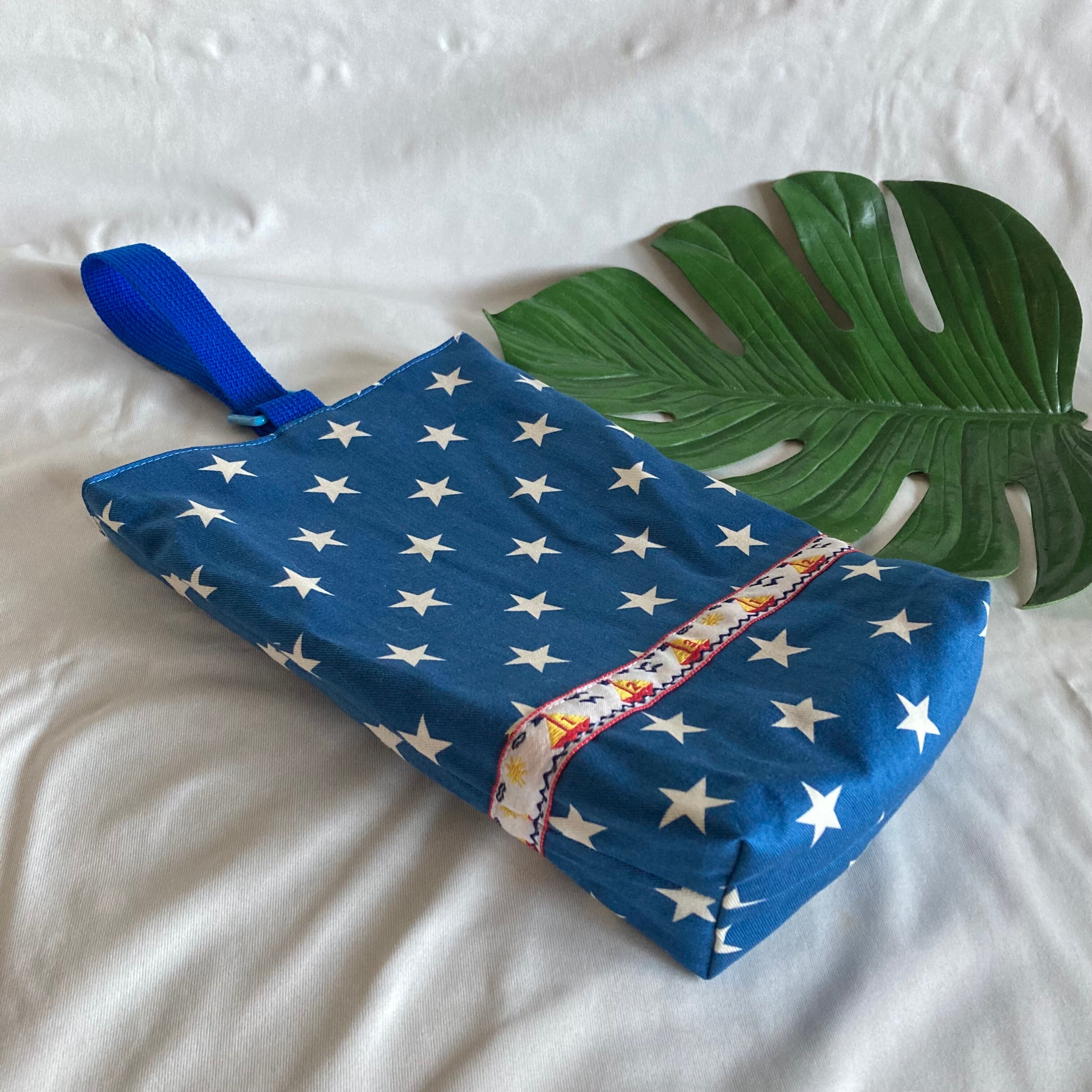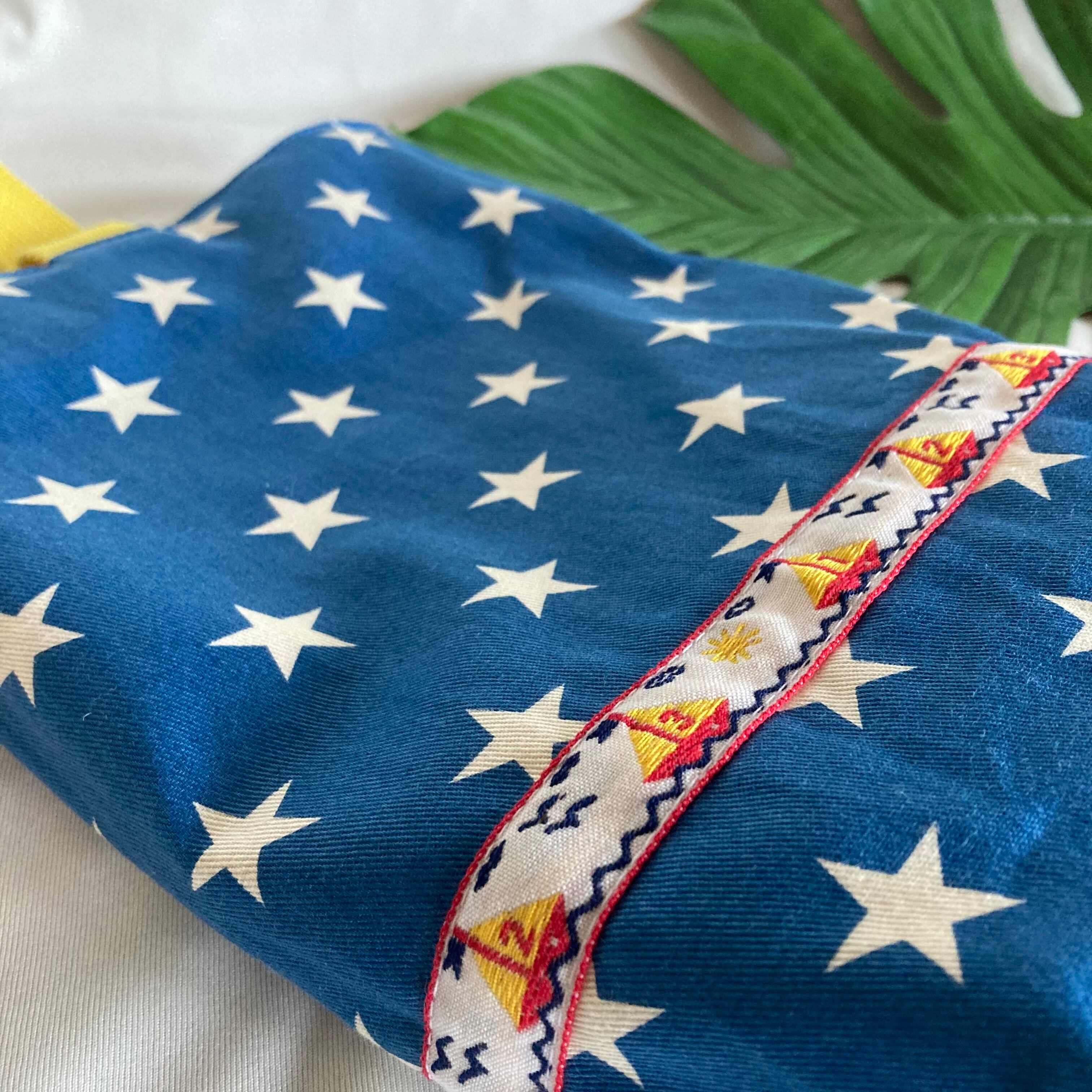 【素材】電車PT、キルティングブルー、星柄ブルー★