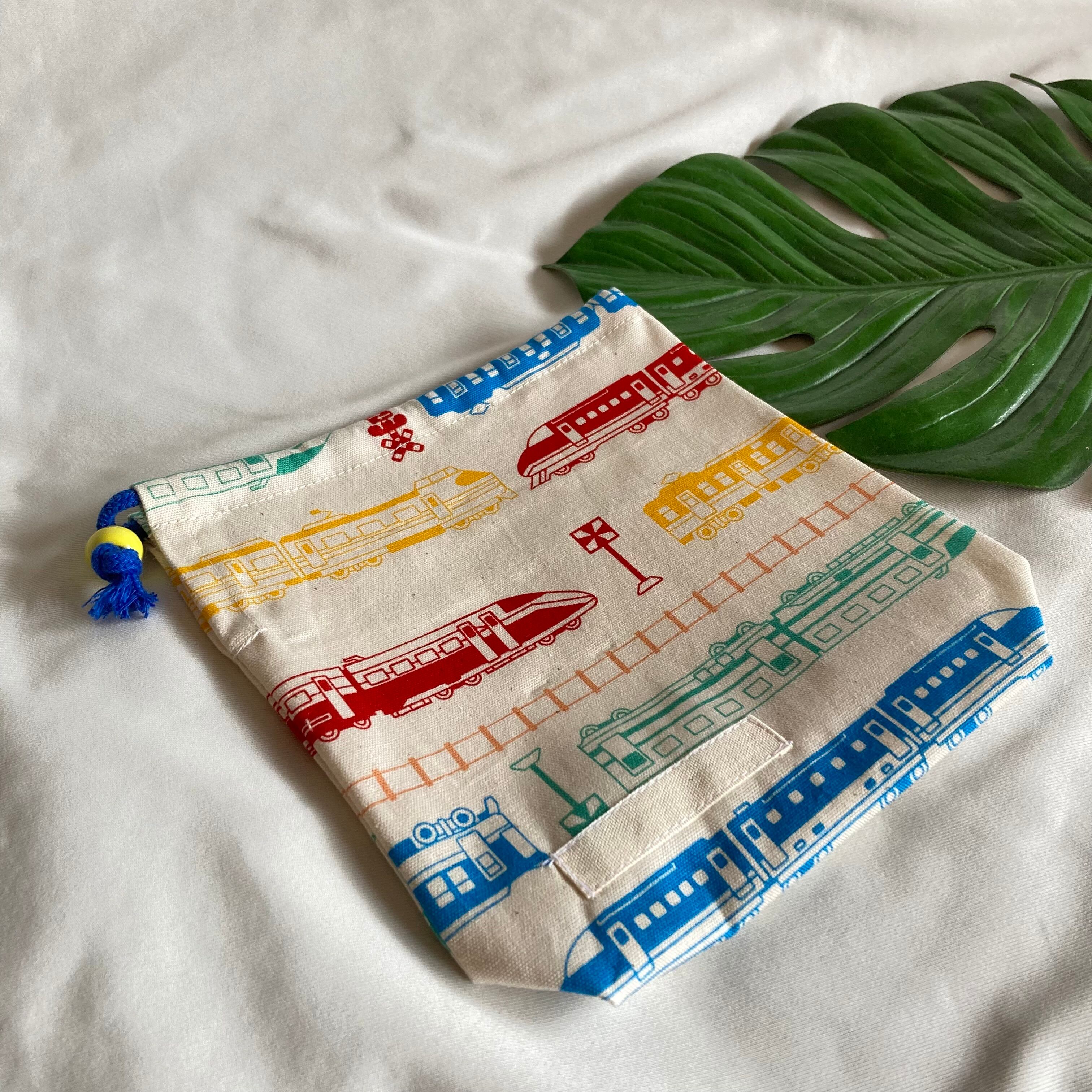 【オーダーOK】入園入学給食袋コップ入れ巾着★35電車踏切線路