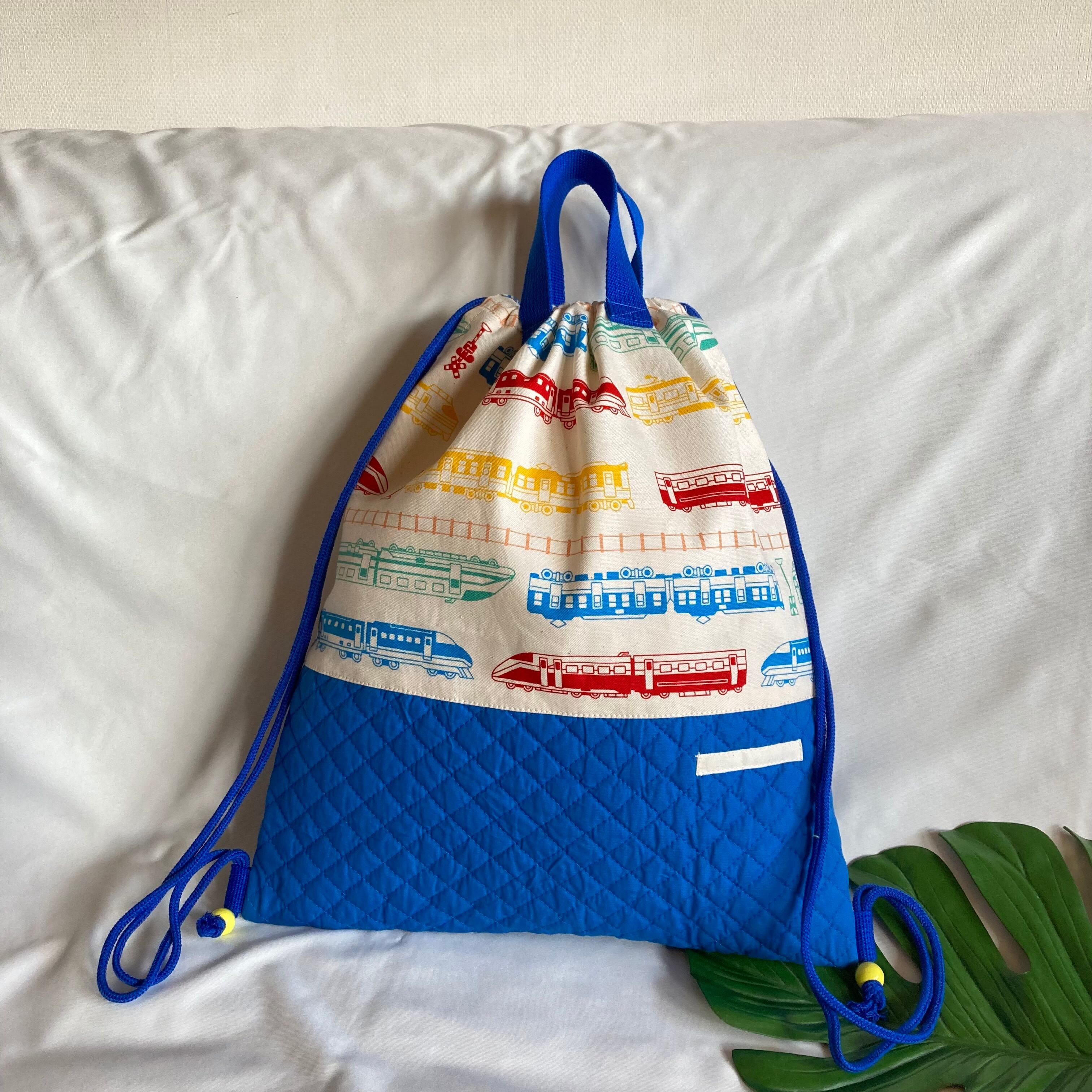 ランドセルの上から背負える!ナップサックナップザック持ち手つき巾着★35電車踏切線路★入園入学
