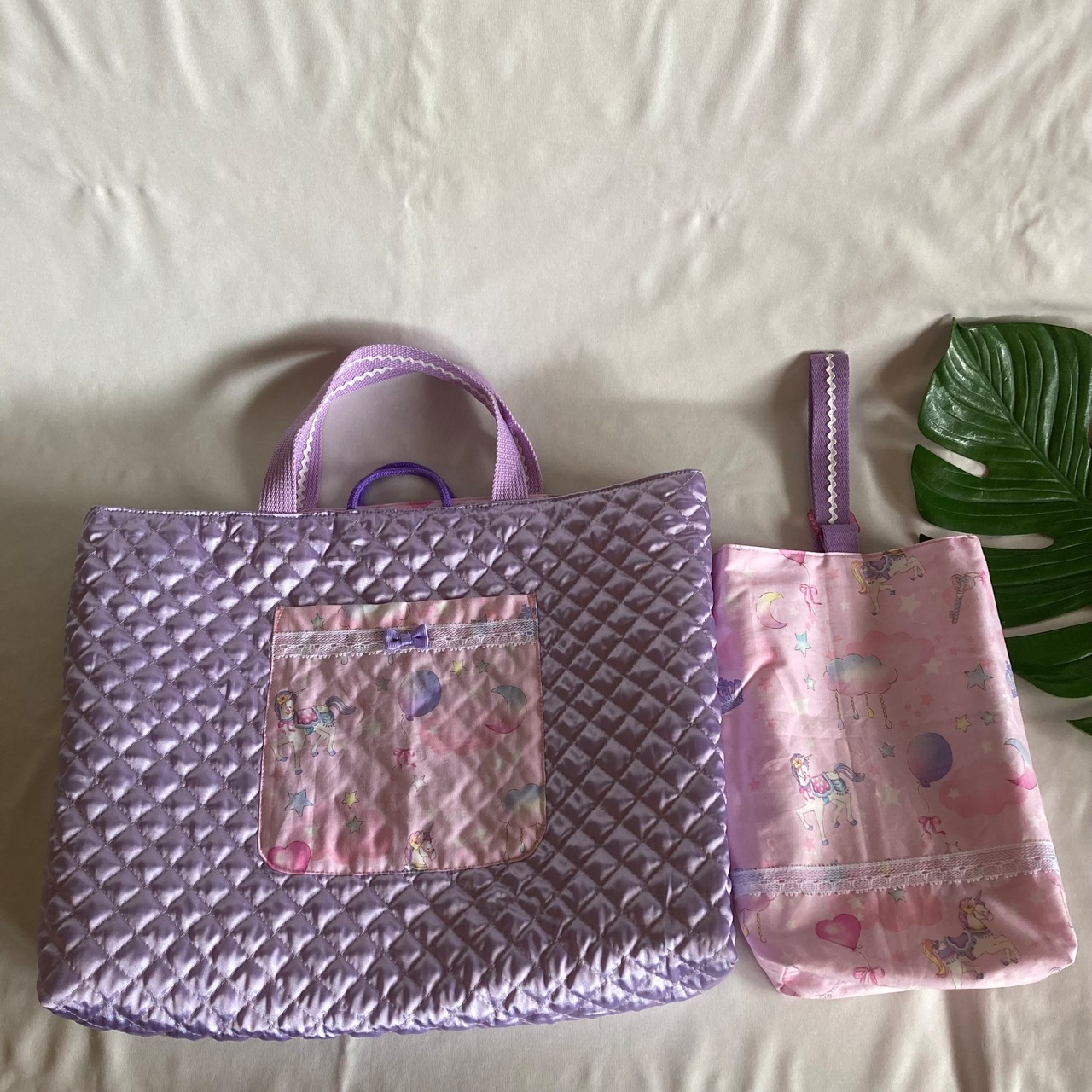 【オーダーOK】入園入学セット16原宿ドールズファンタジーユニコーンP★手提げ上履き給食お着替え巾着ランチョンマット移動ポケットくすみニュアンスパステル女の子リボンレ