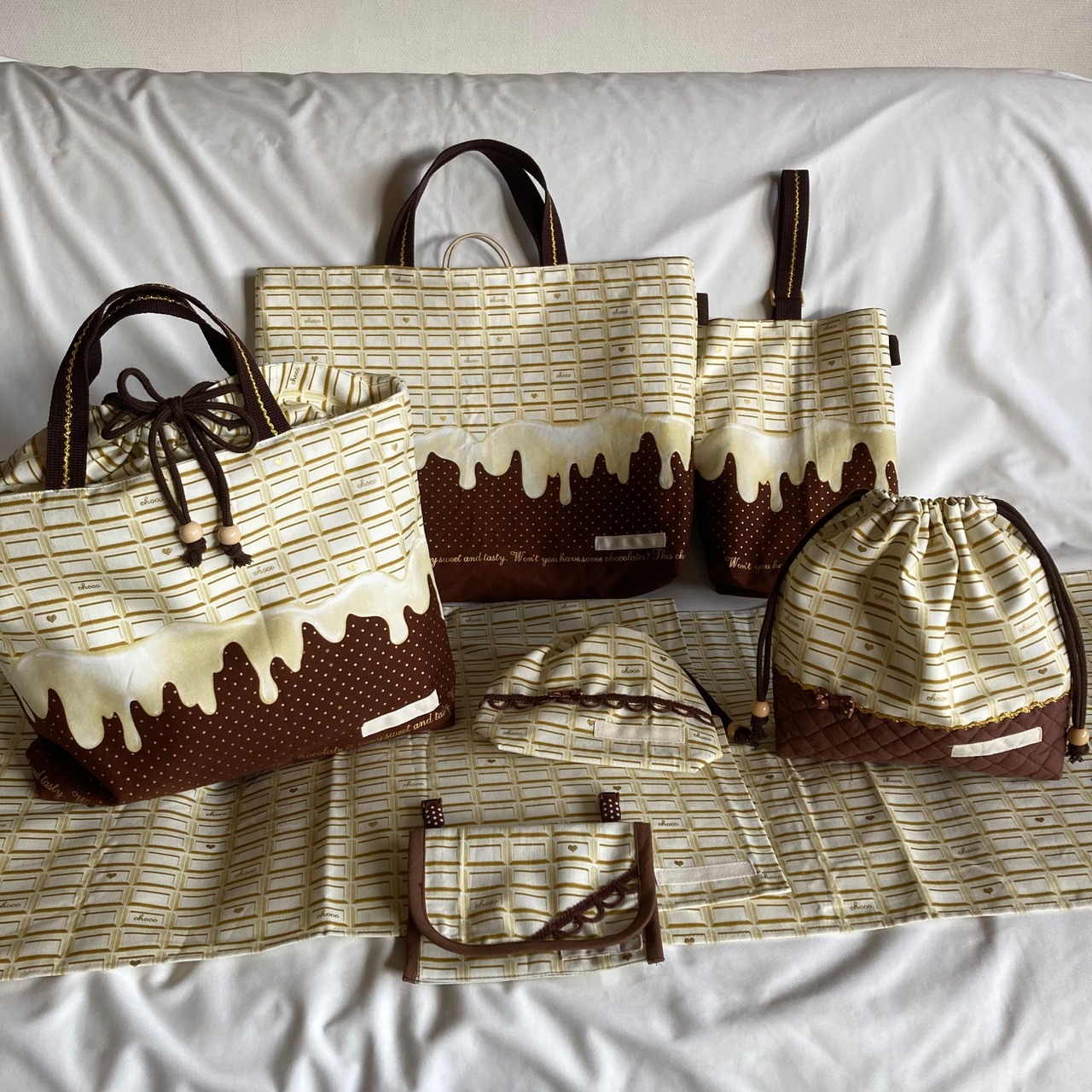 【オーダーOK】入園入学レッスンバッグ手提げ絵本袋リバーシブル★77ホワイトチョコレートバレンタイン