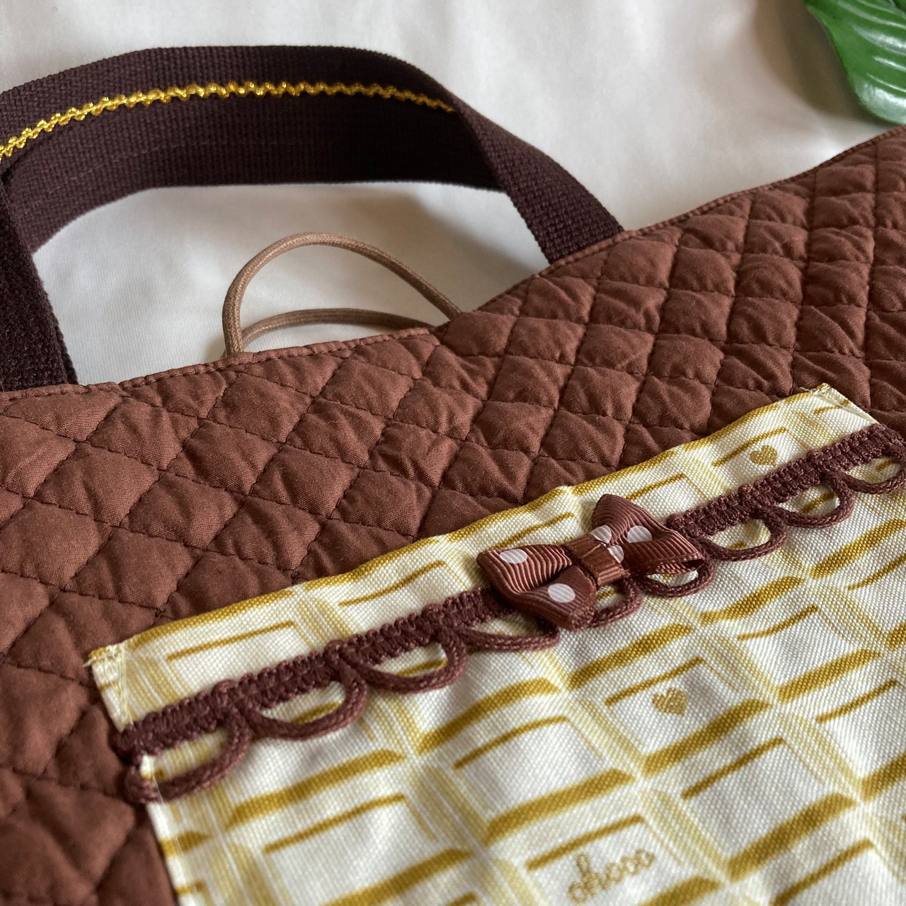 チョコレートPT、キルティングブラウン、レース・リボンで飾りました★