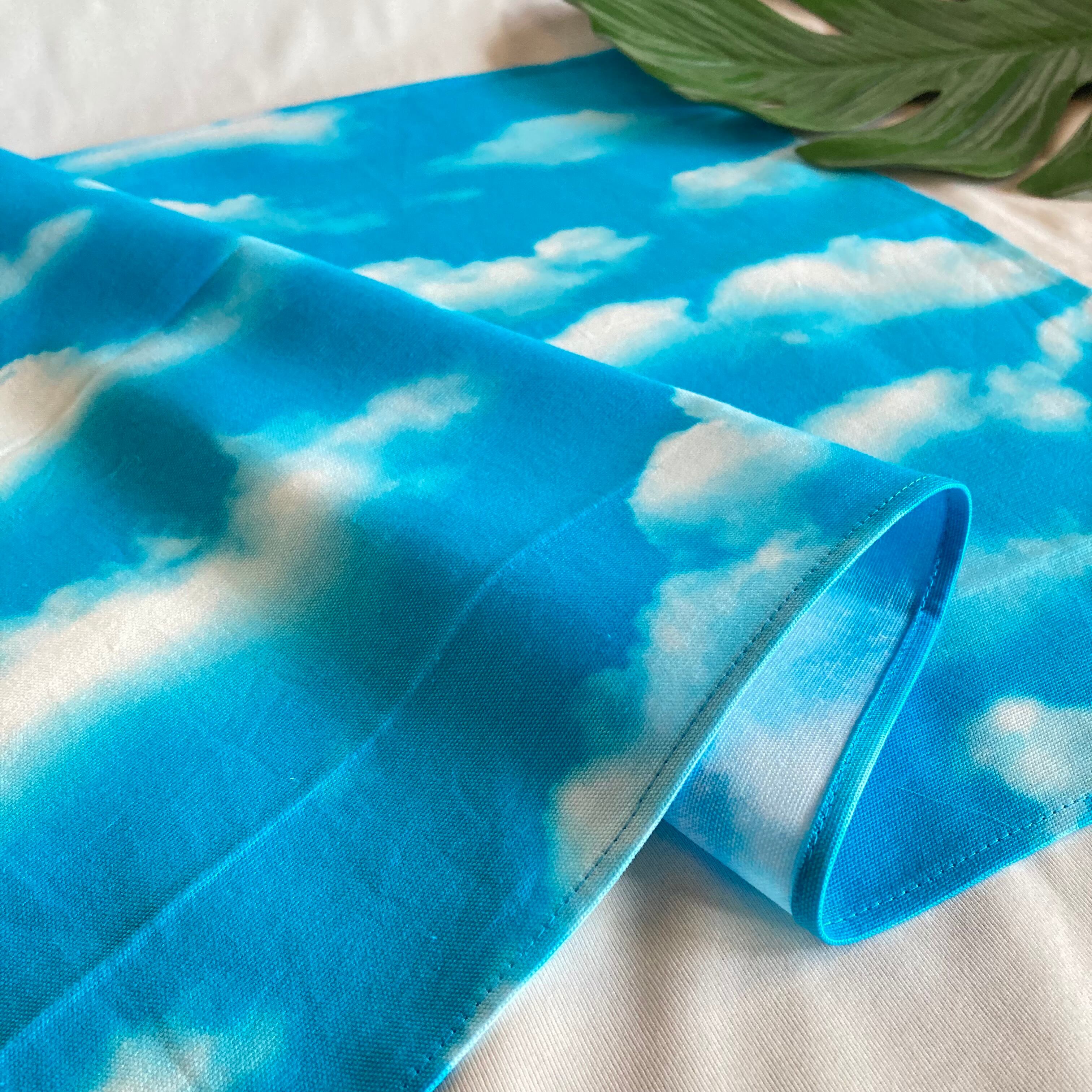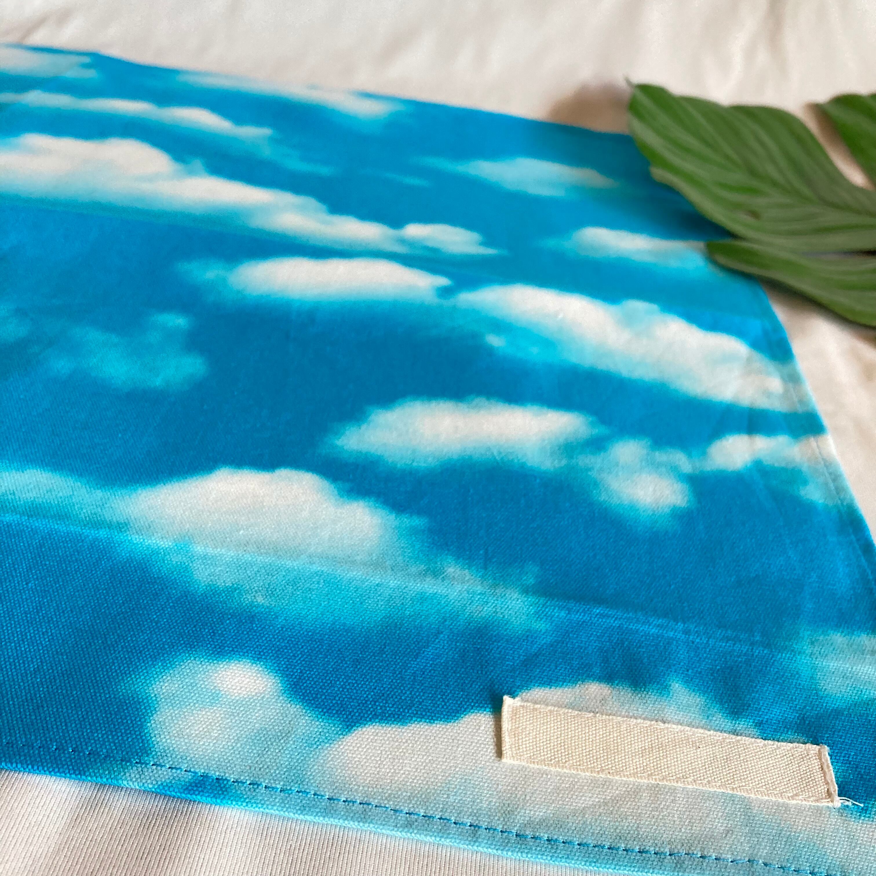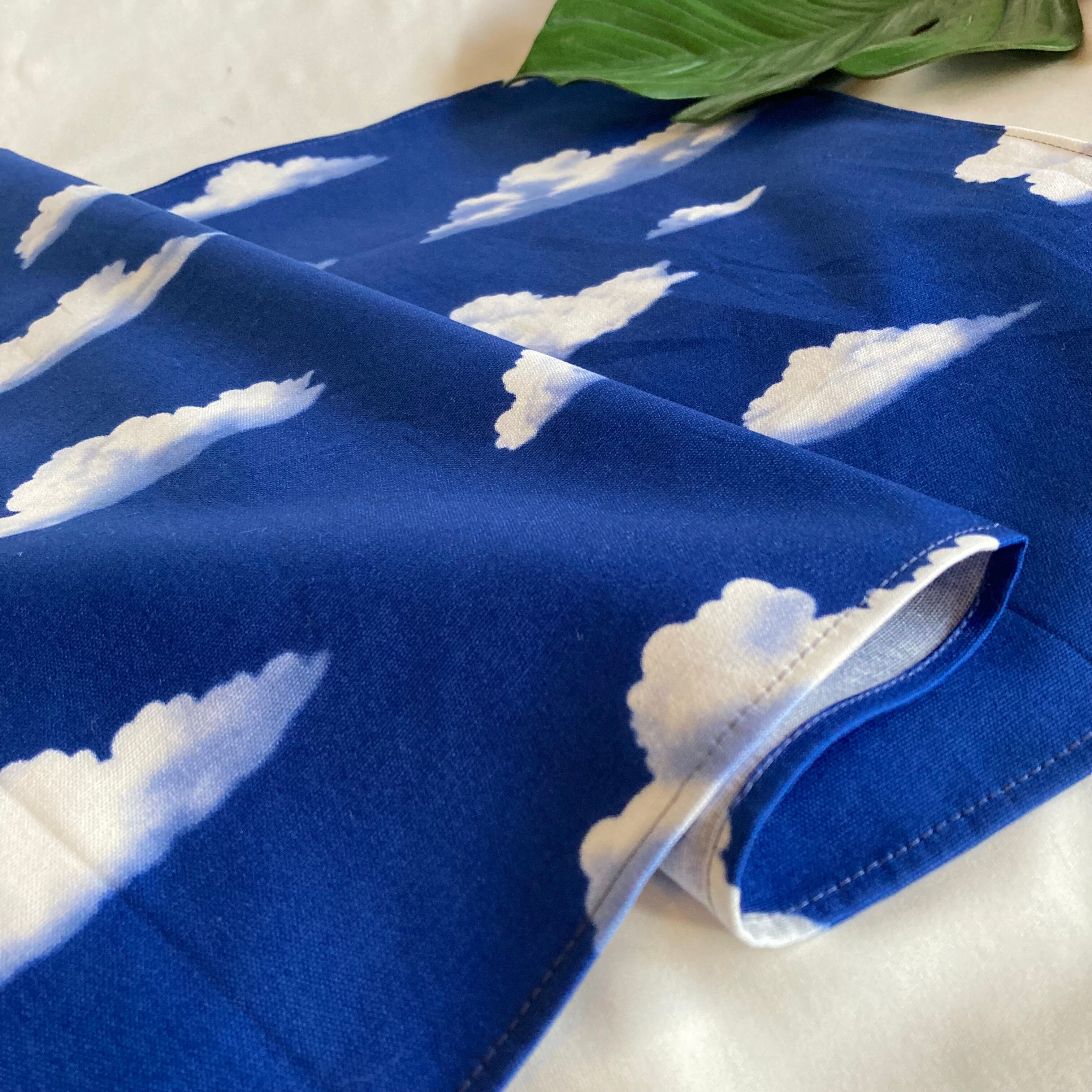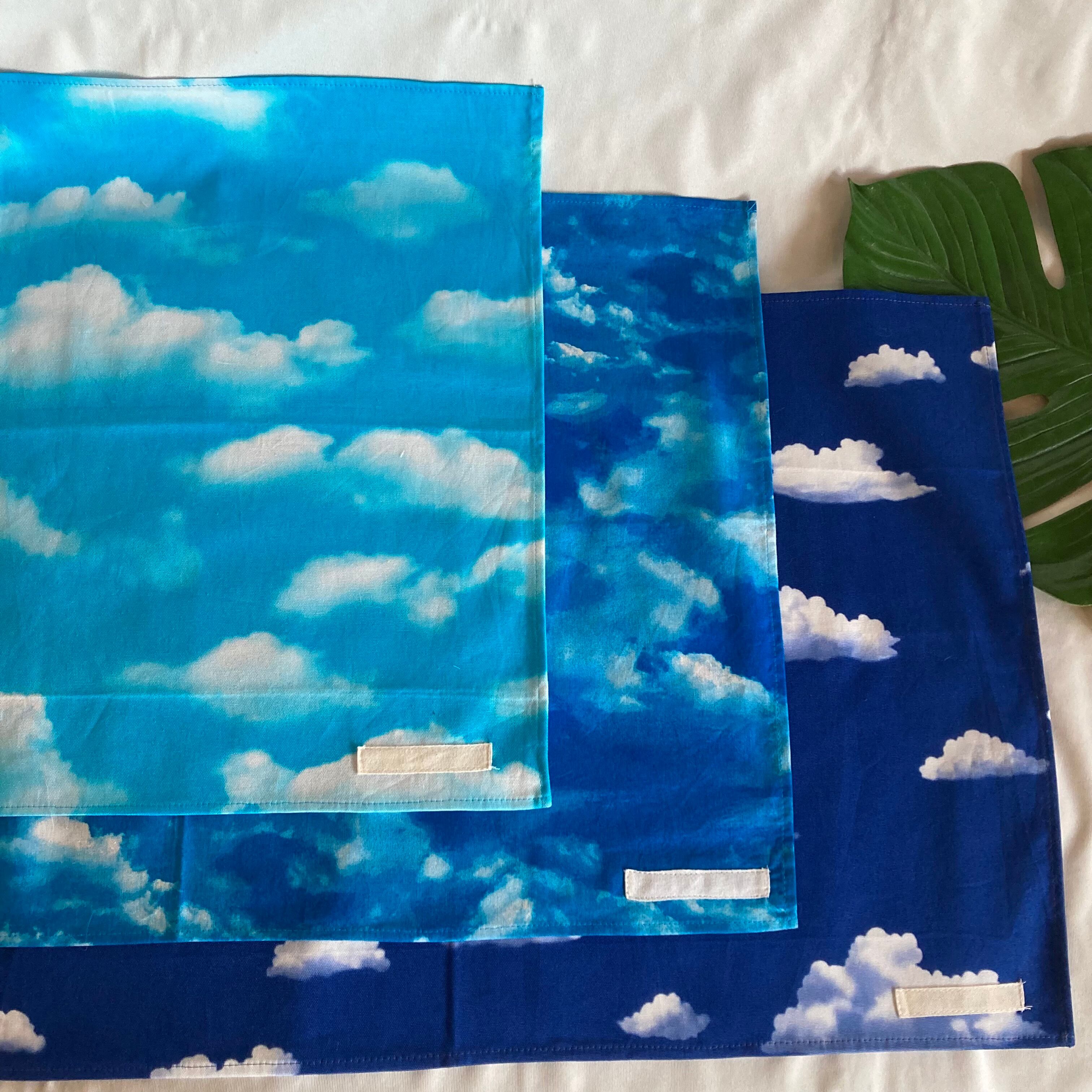 【オーダーOK】入園入学大きいランチョンマット(60×40㎝)★ロイヤルブルーの青空雲スカイ★給食ナフキンお弁当ランチクロス