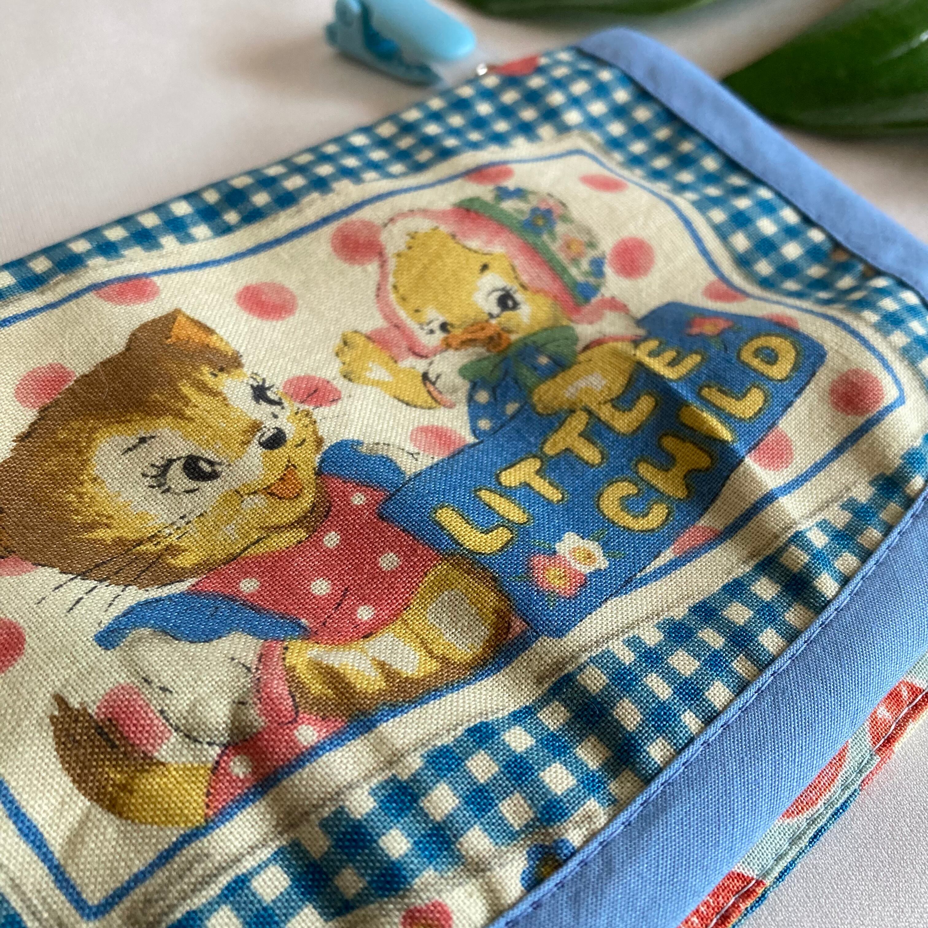 移動ポケット★メリーボンボンレトロアニマル水色★マスクケース入園入学ハンカチティッシュマルチポケット