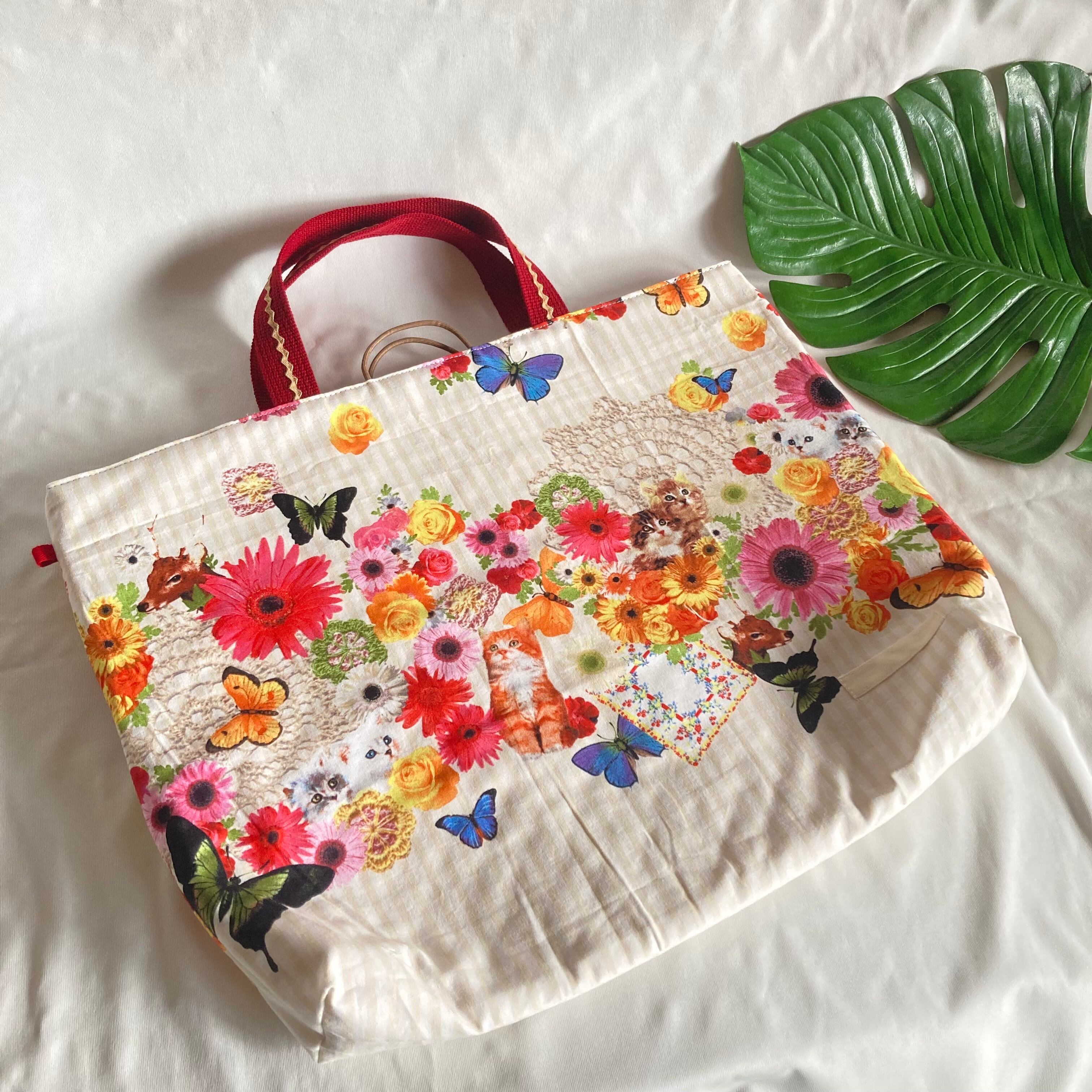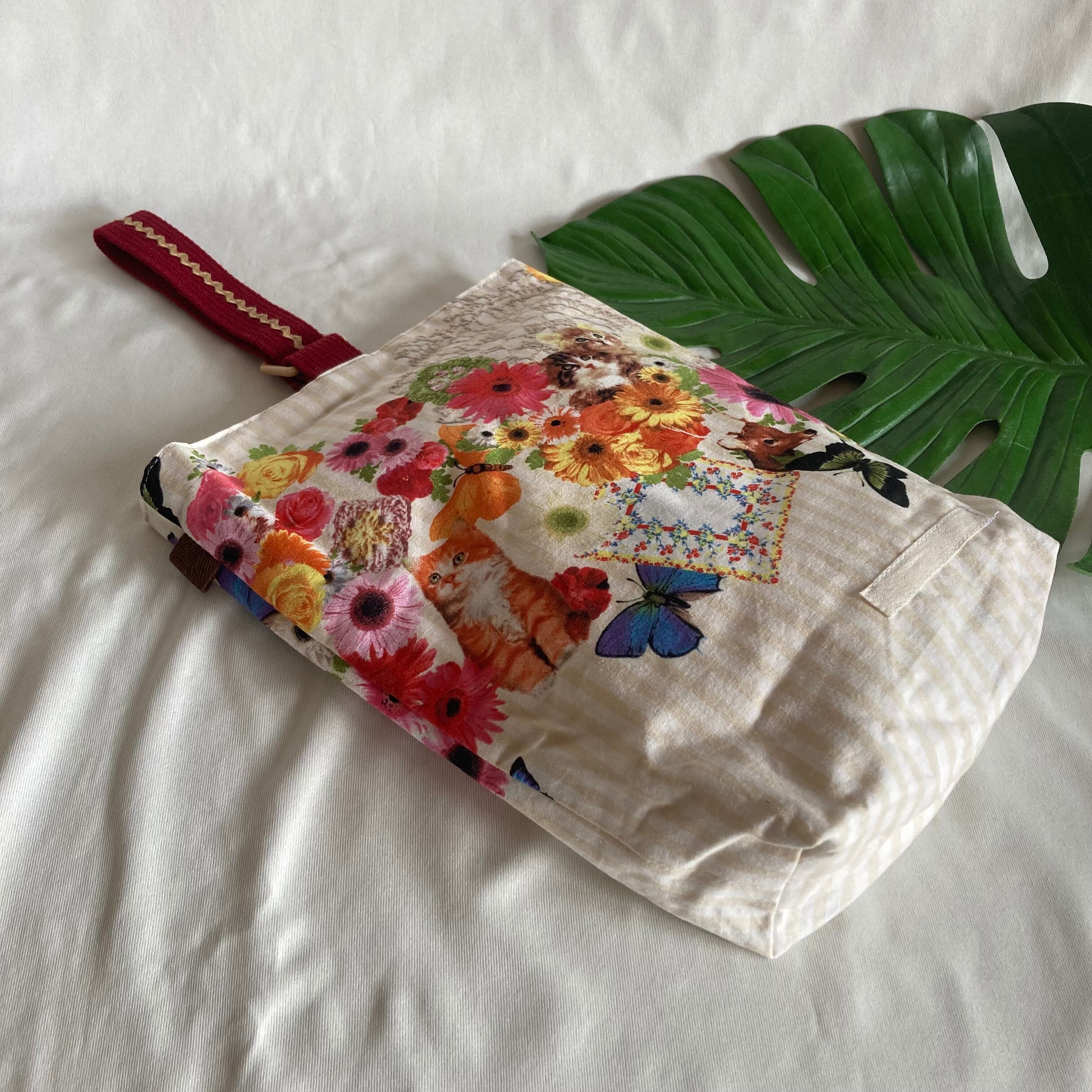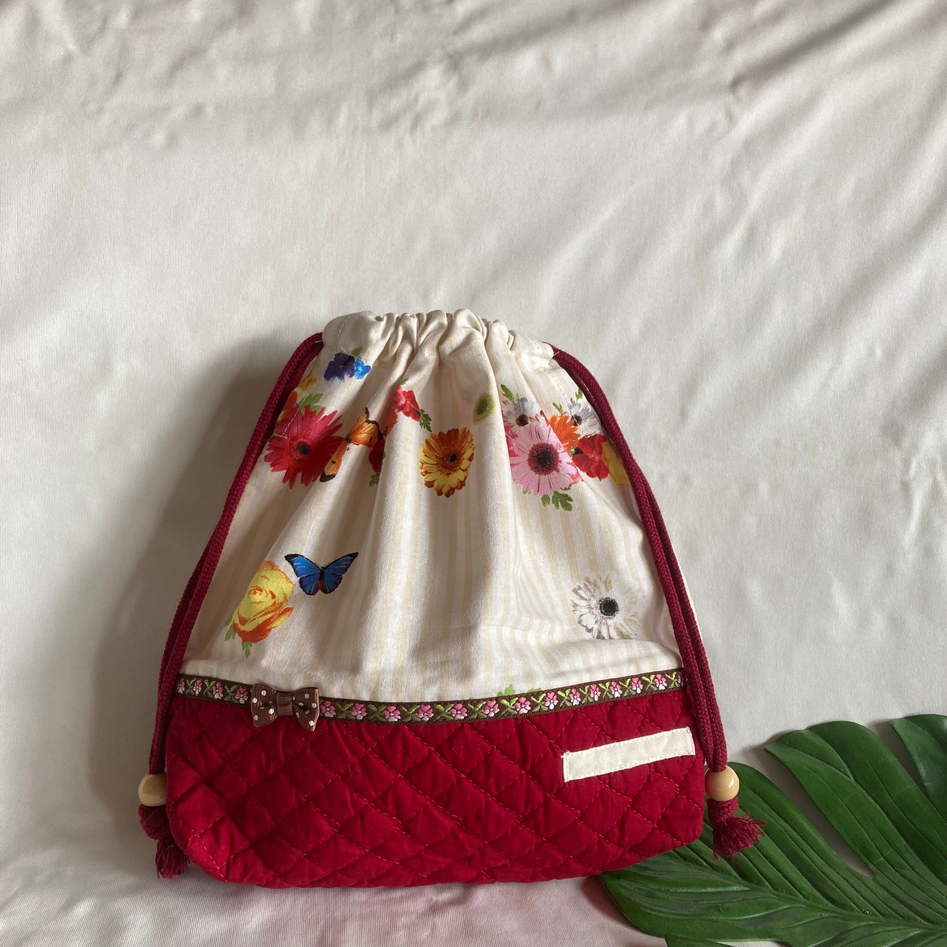 【オーダーOK】入園入学セット20花蝶猫鹿★手提げ上履き給食お着替え巾着ランチョンマット移動ポケットナップサックボルドー大人動物