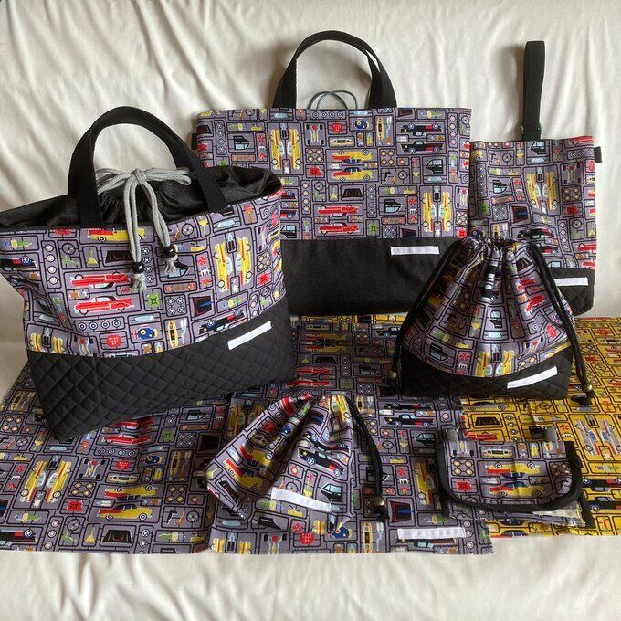 【オーダーOK】裏キルティング移動ポケット13プラモデルカー車G★マスクケース入園入学ハンカチティッシュマルチポケット★縫い付けお名前小学校