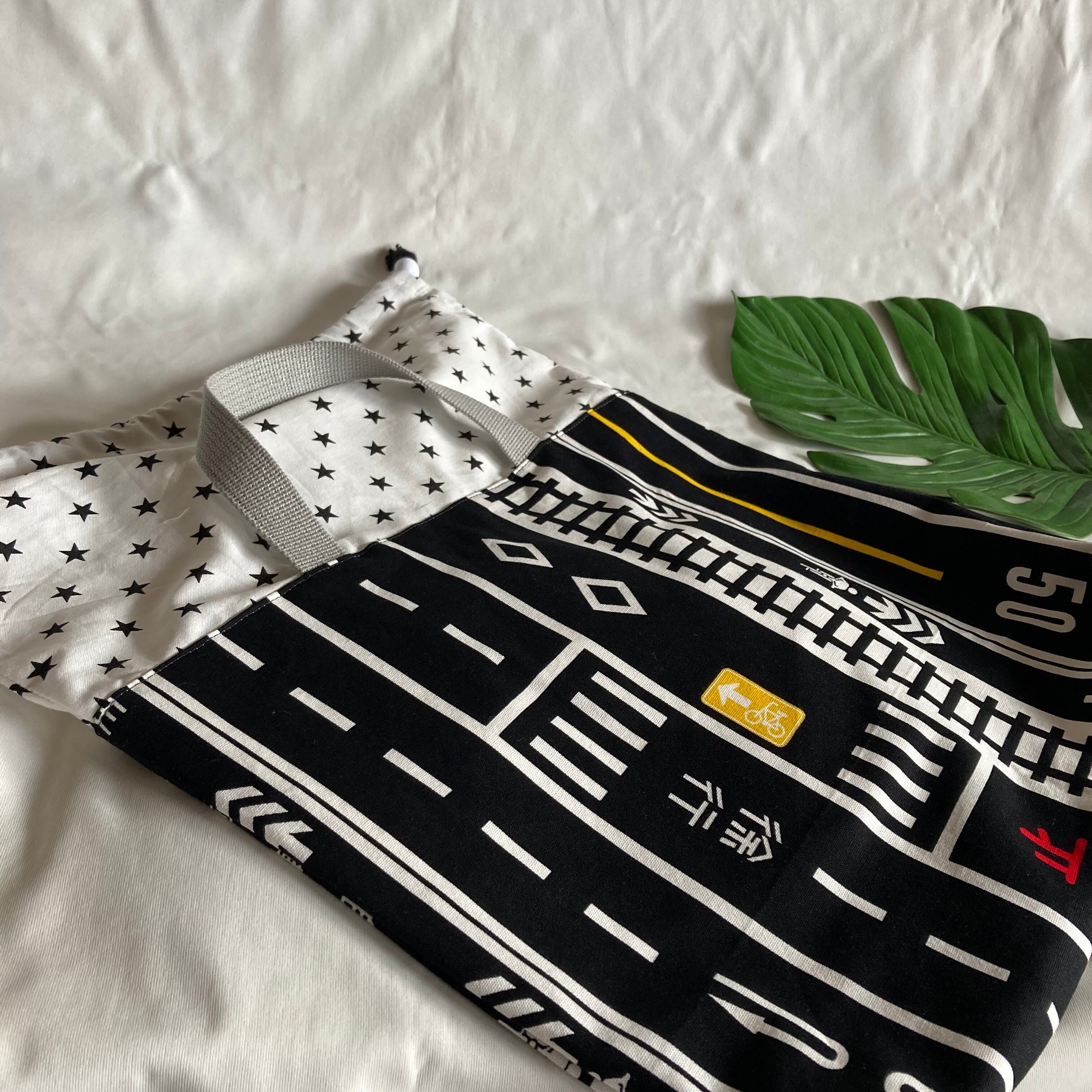 【オーダーOK】入園入学体操着お着替え袋内袋持ち手巾着★76道路標識交通ルール車Bマチ星柄裏地