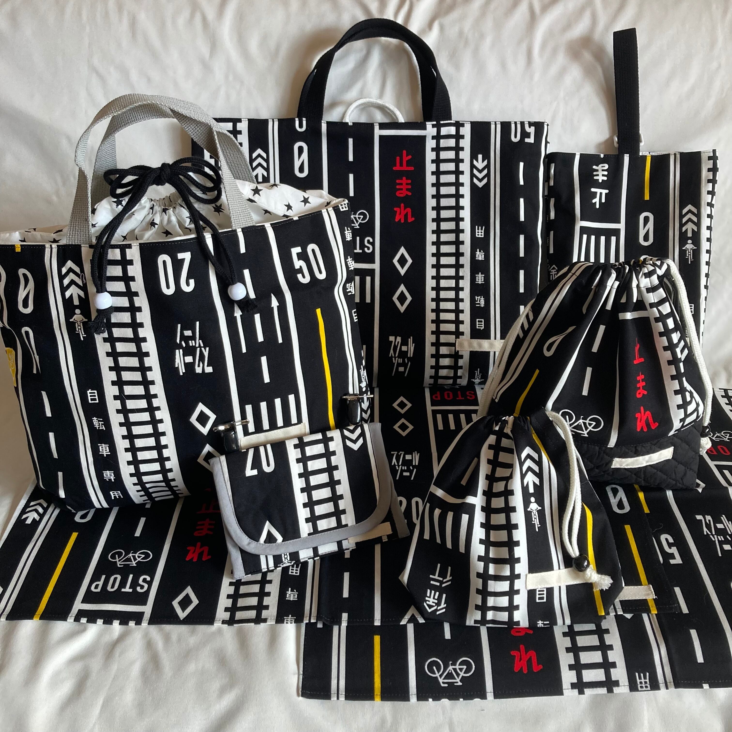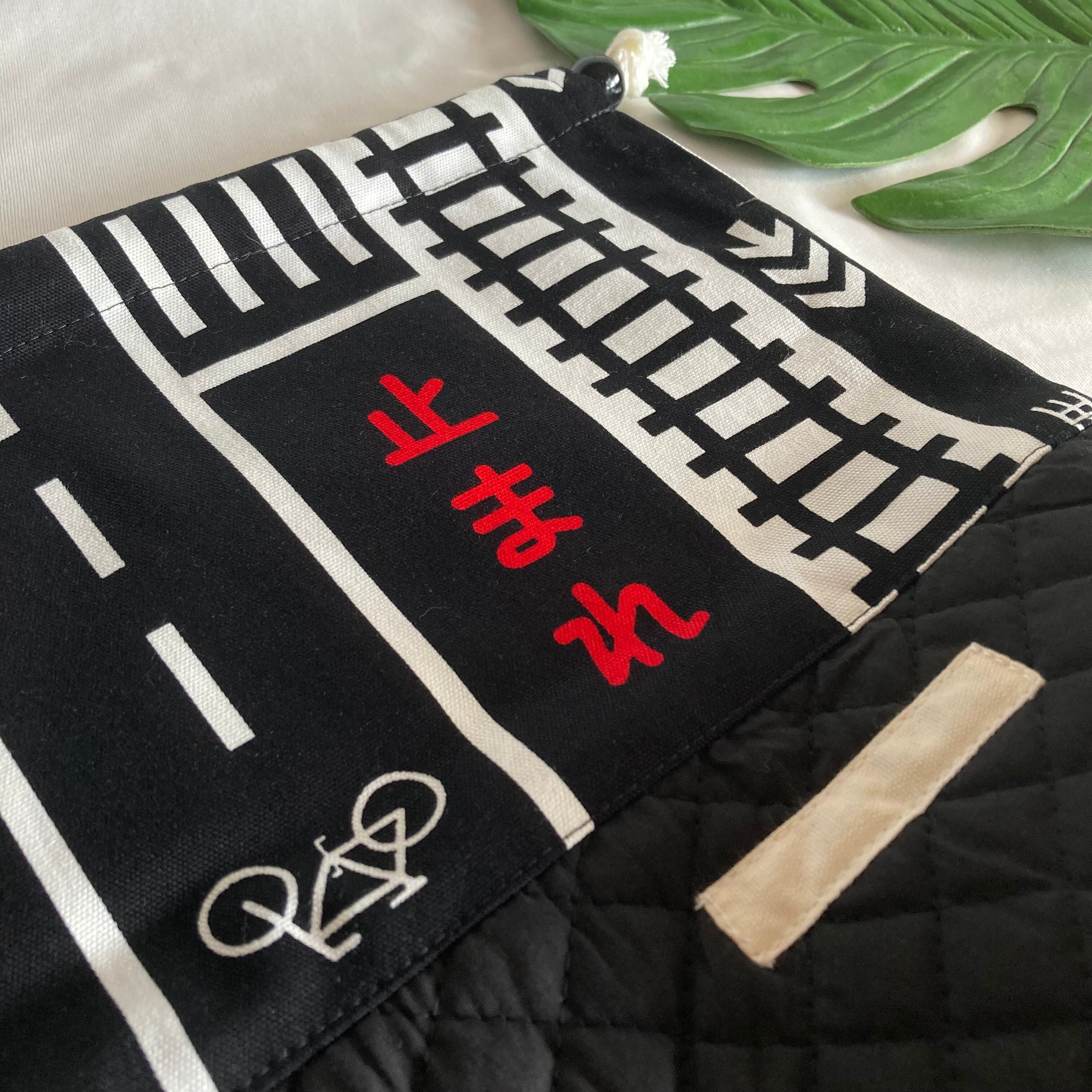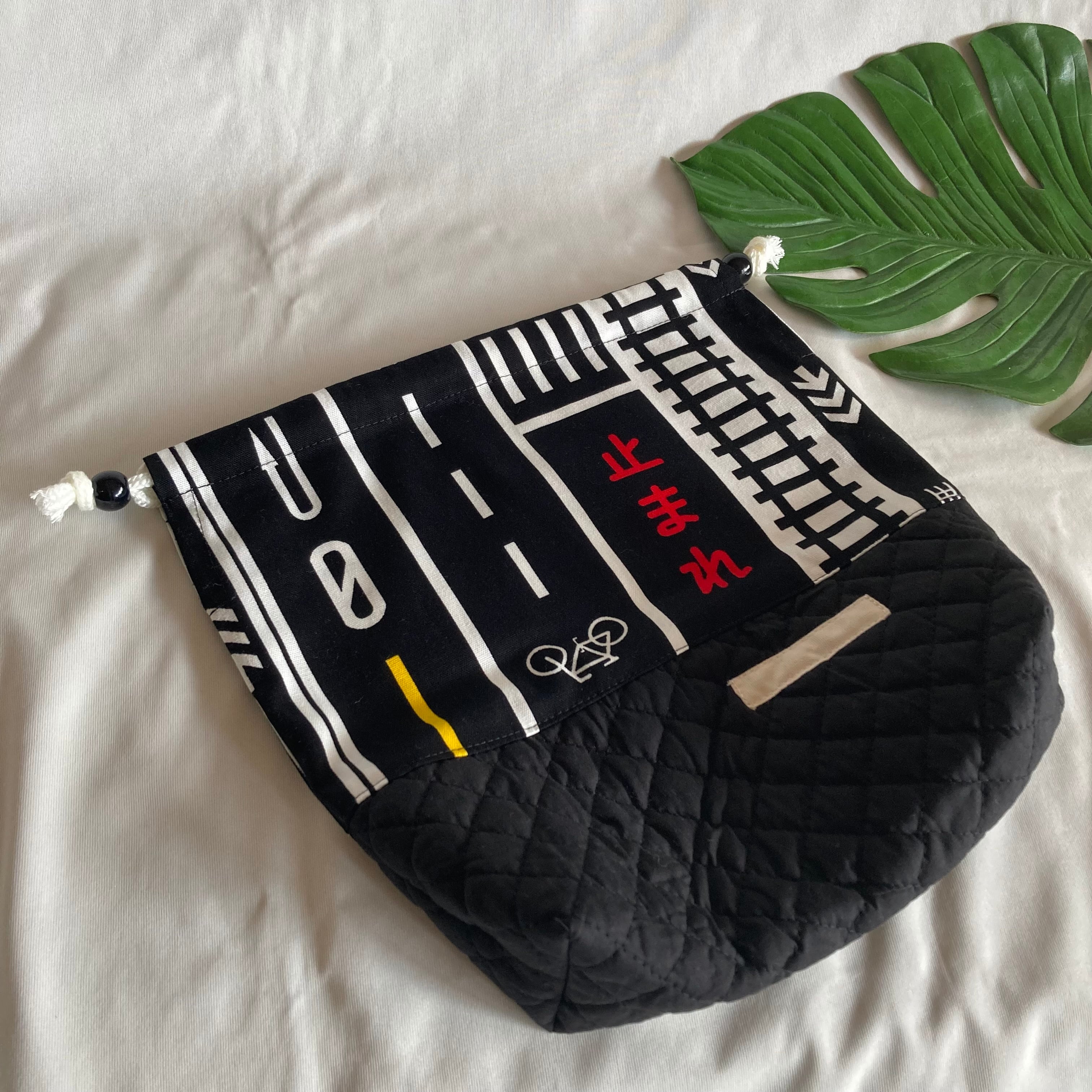 【オーダーOK】入園入学ランチバッグお弁当入れマチつき巾着76道路標識交通ルール車Bキルティングマチ