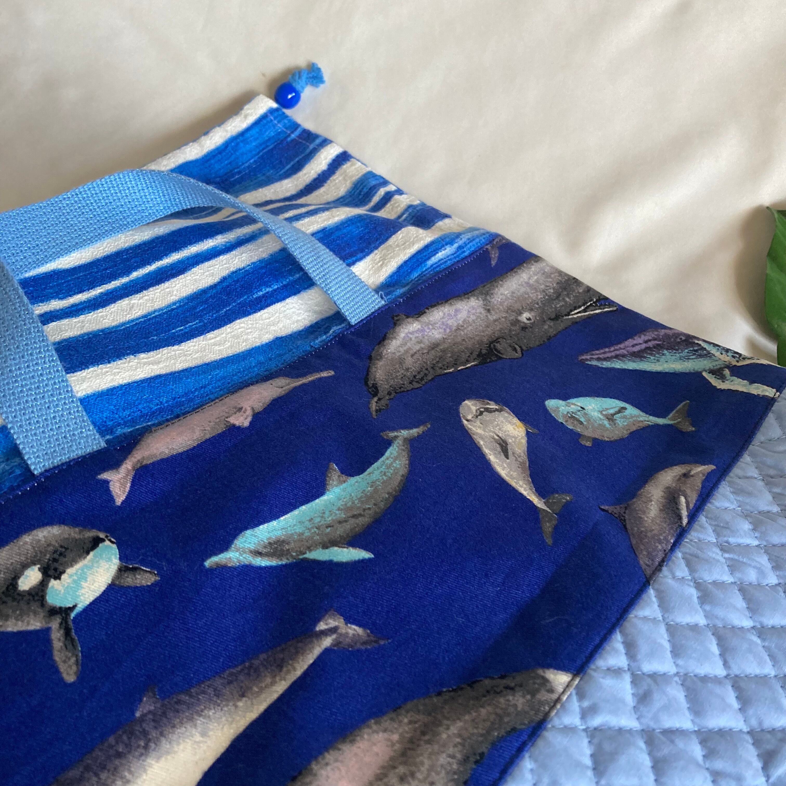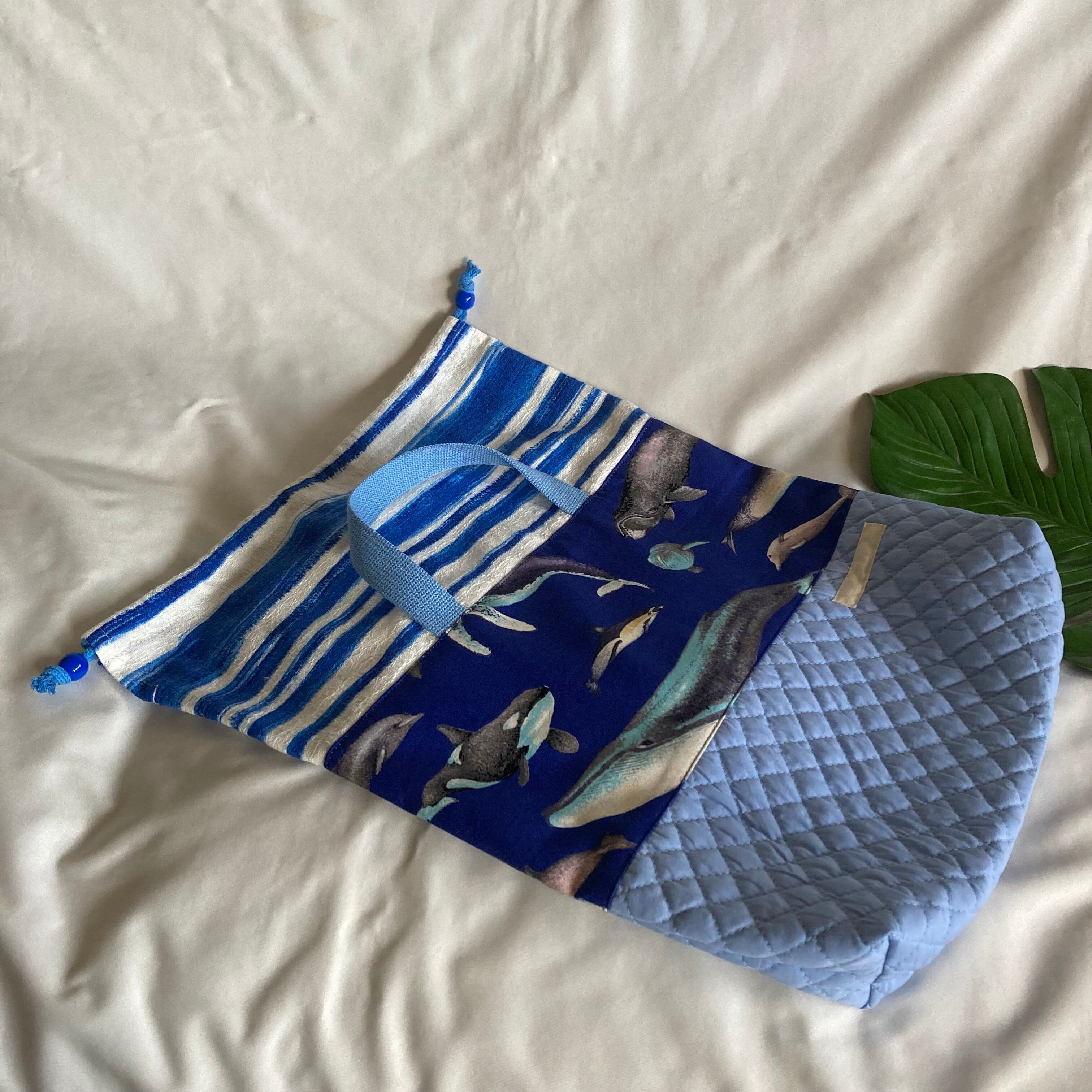 入園入学体操着お着替え袋内袋持ち手巾着★クジラいるかシャチくじら海の生き物水族館マチ裏地キルティングブルー男の子