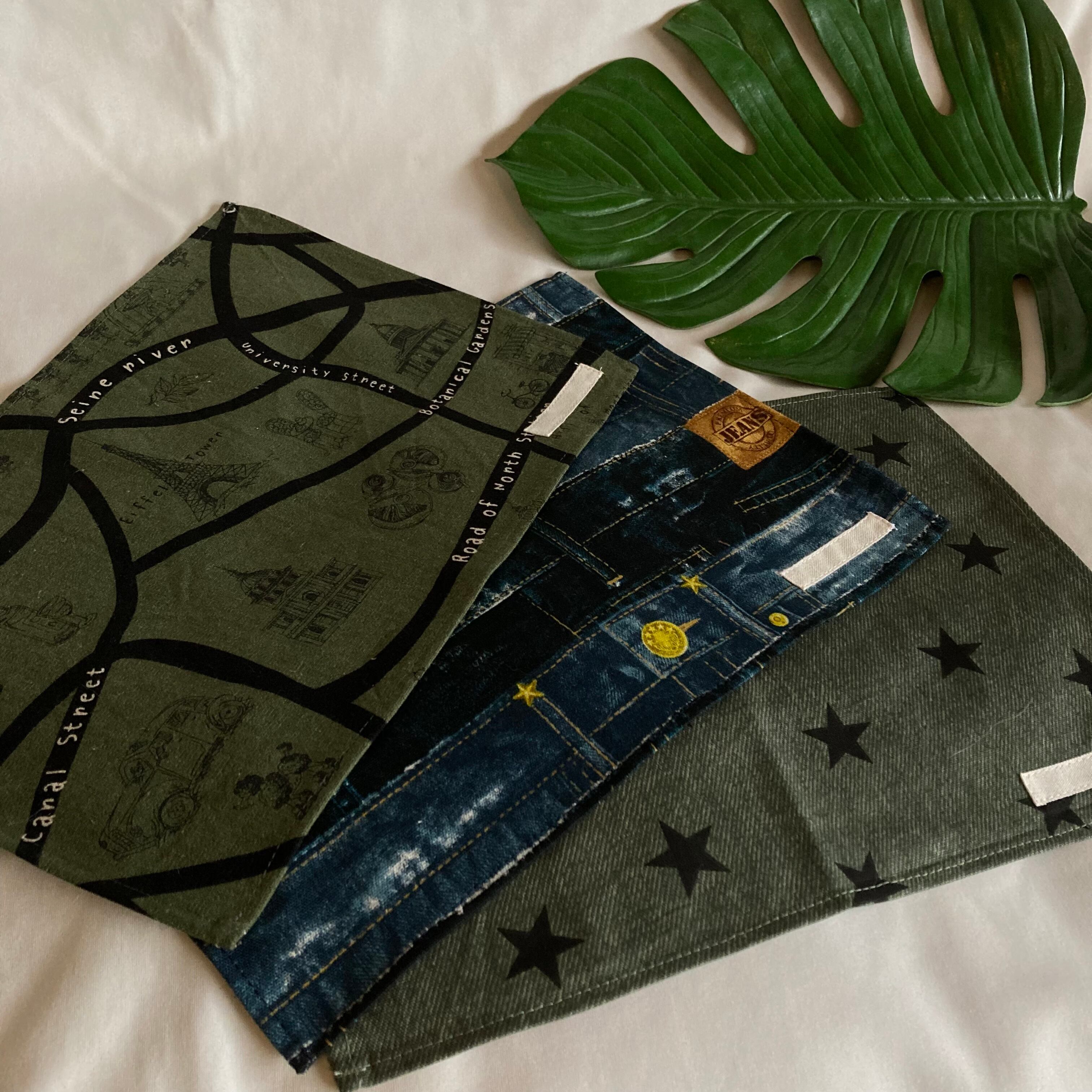 A4ランチョンマット3枚セット入園入学ランチクロスナフキン★パリの街並みデニムジーンズ星スター