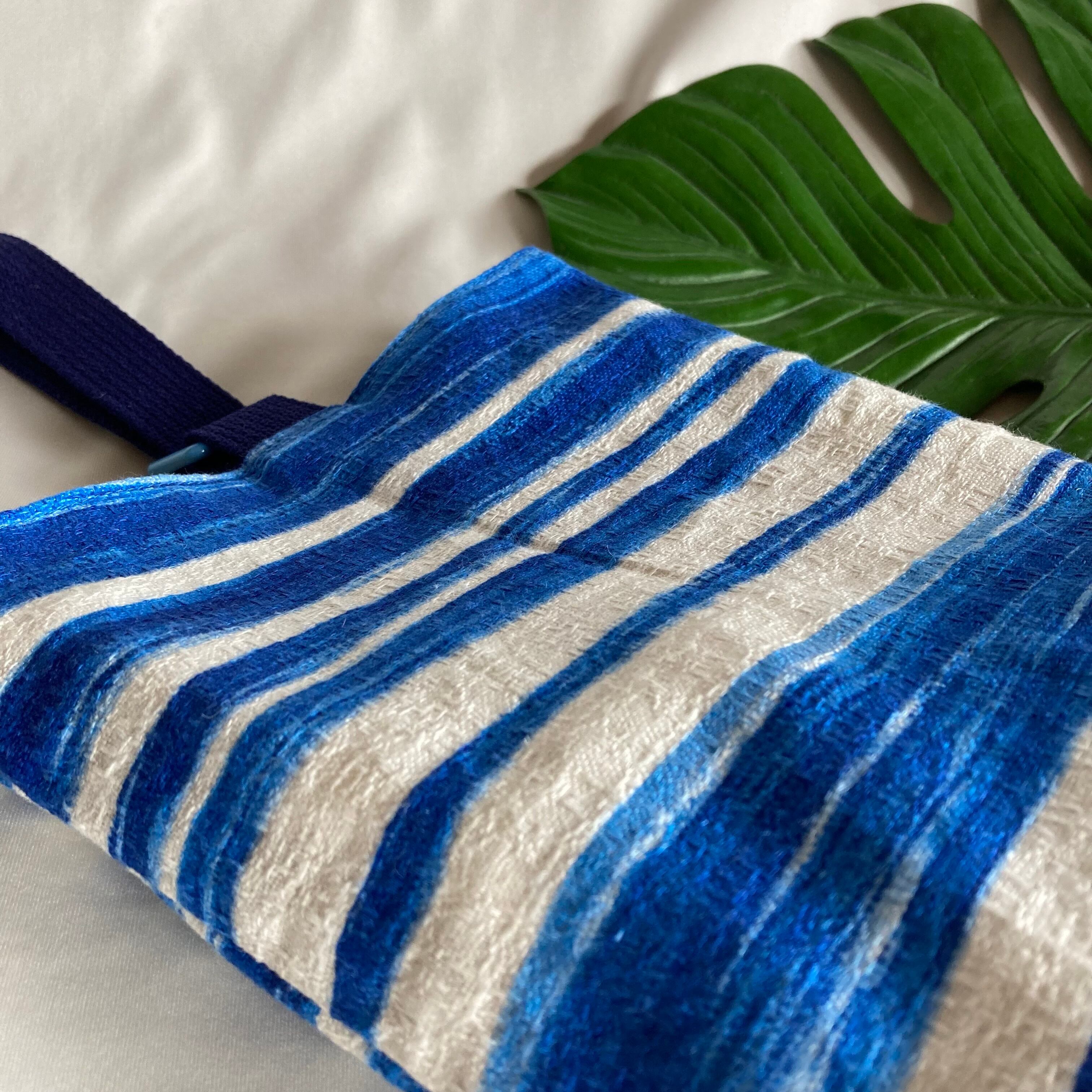 【素材】クジラPT、ストライプブルー系、キルティング無地