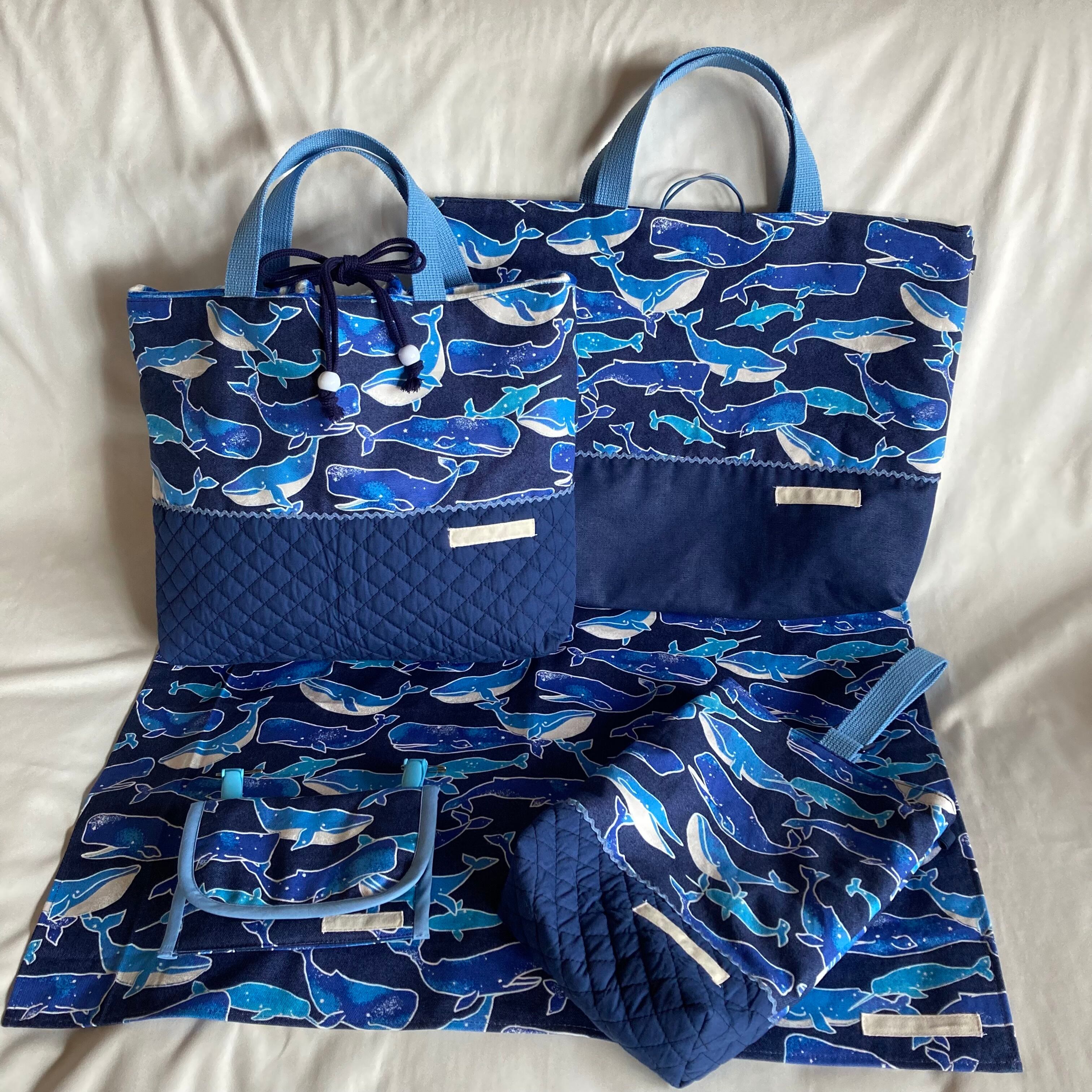 【オーダーOK】裏キルティング移動ポケット★星の砂とクジラくじら★マスクケース入園入学ハンカチティッシュマルチポケット