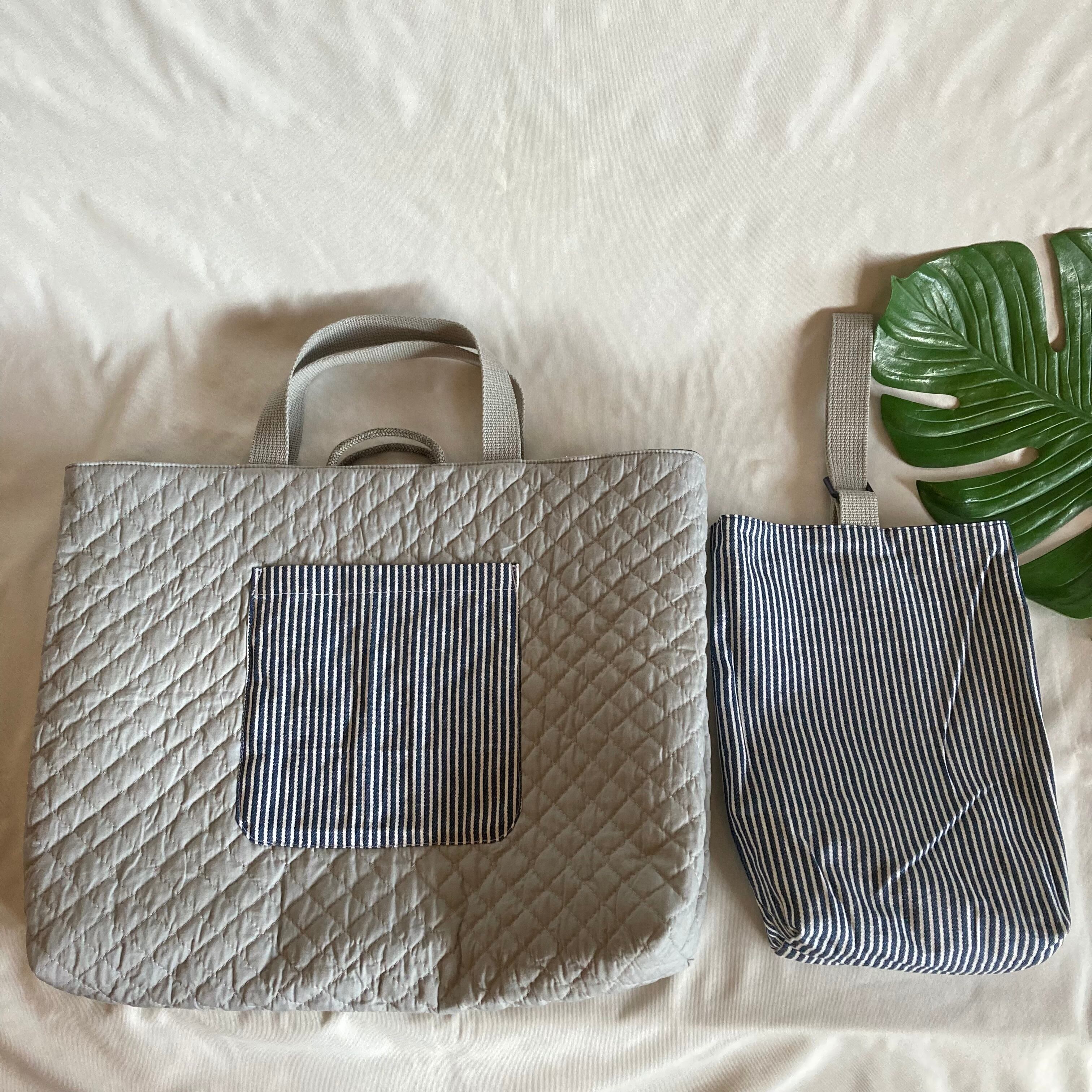 シンプルなキルティング側には、大きめのポケット(16cm×16cm)がついているので、便利★